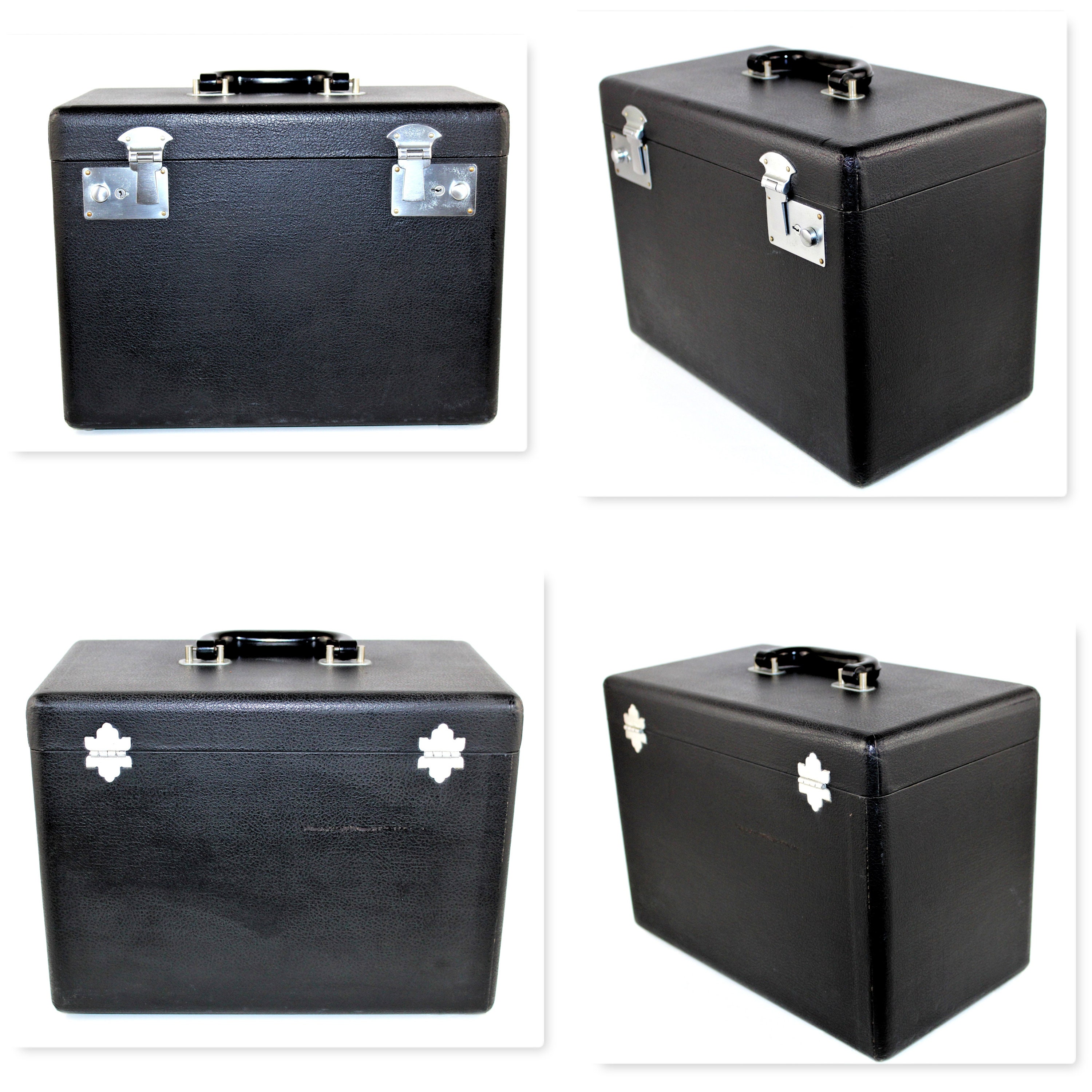 Serial # AL933400. The machine badge was issued on January 17, 1955, and the machine was manufactured in Elizabethtown, NJ. It has an original 110-volt motor and beautiful chrome trim. The machine and attachments are in excellent vintage condition. We’ve had several machines in the last few years and this one is in the top ten for overall condition. The lockable case is in excellent vintage condition showing very minimal wear, which is not usually the case for this age of machine. Both original keys are included.