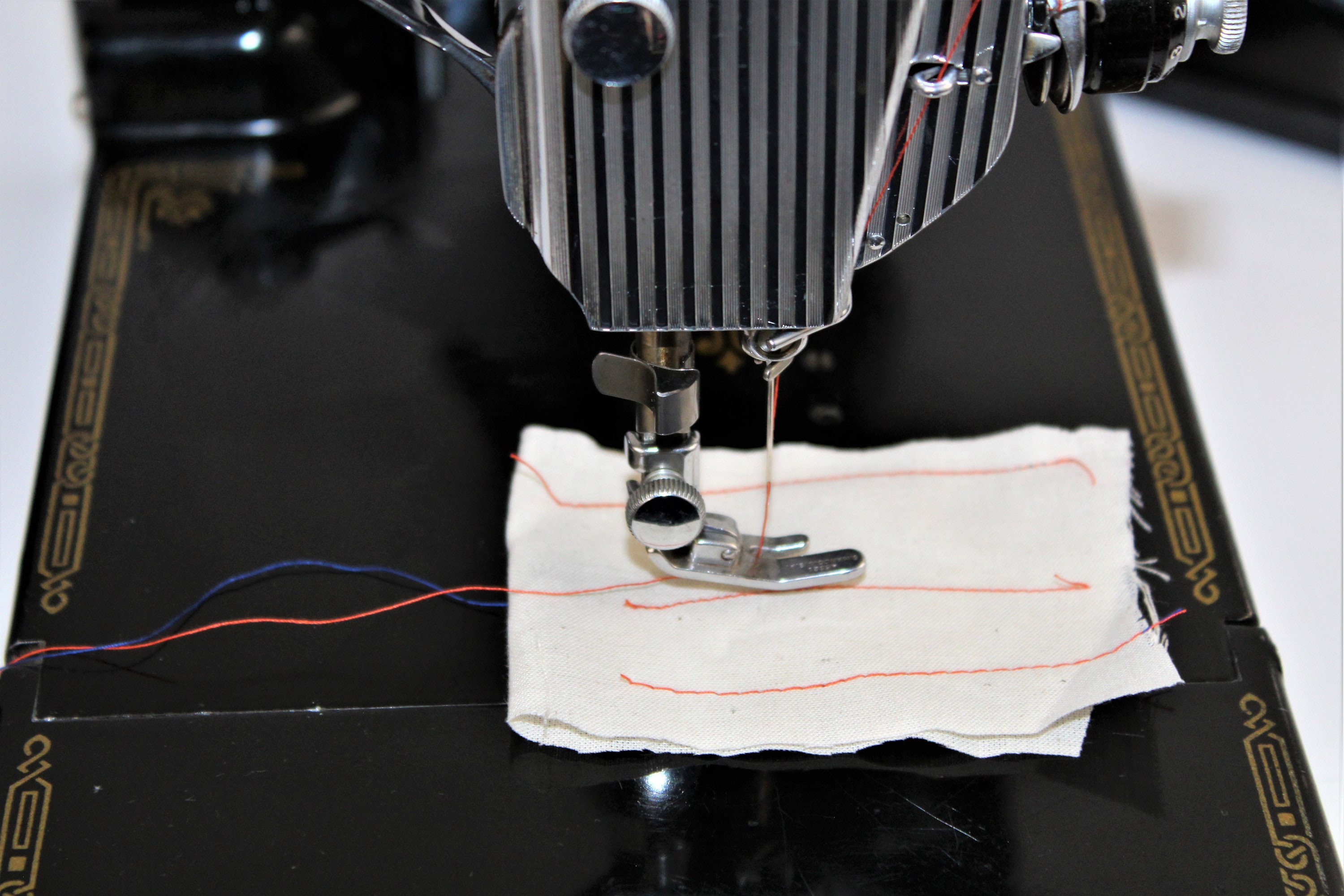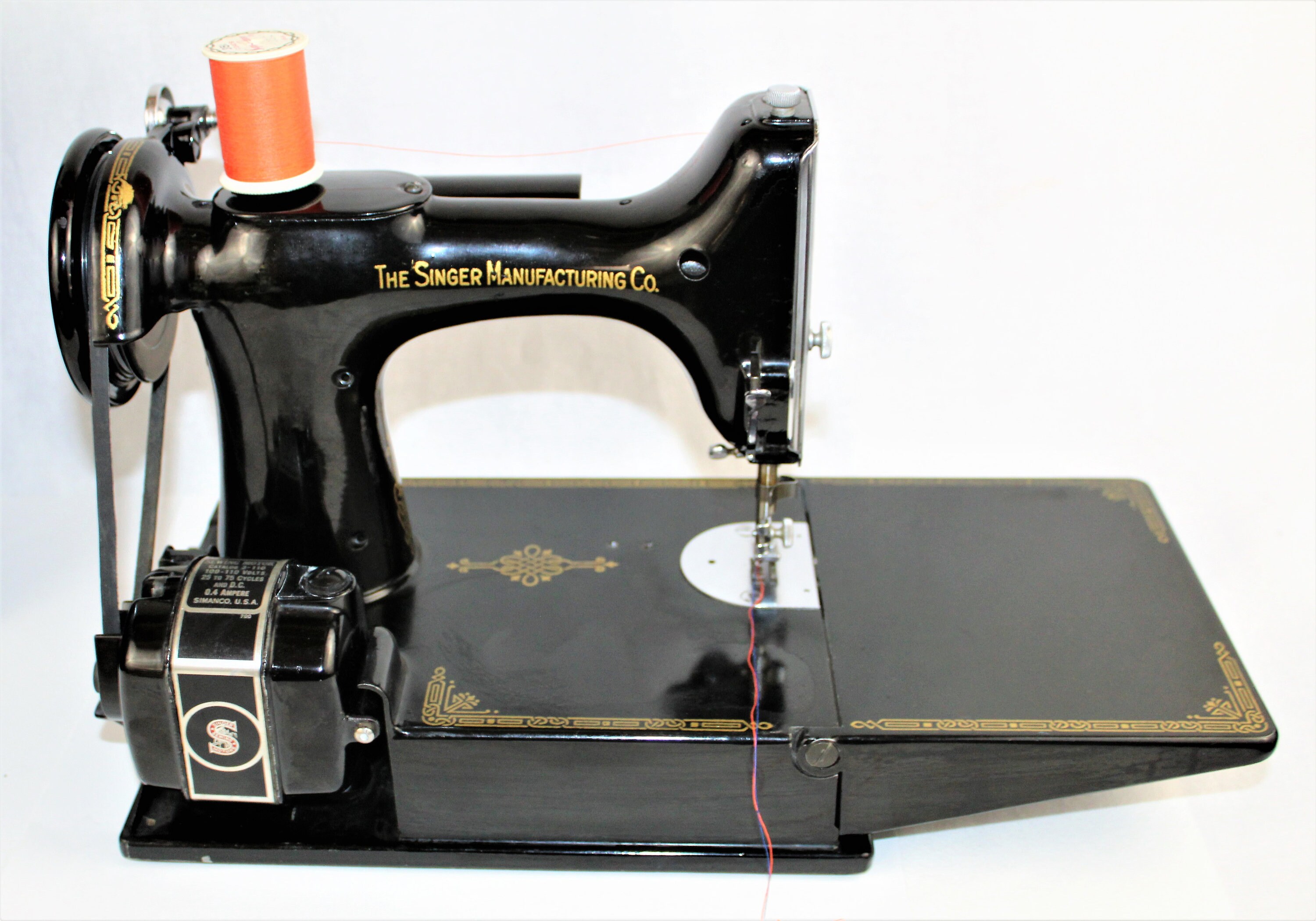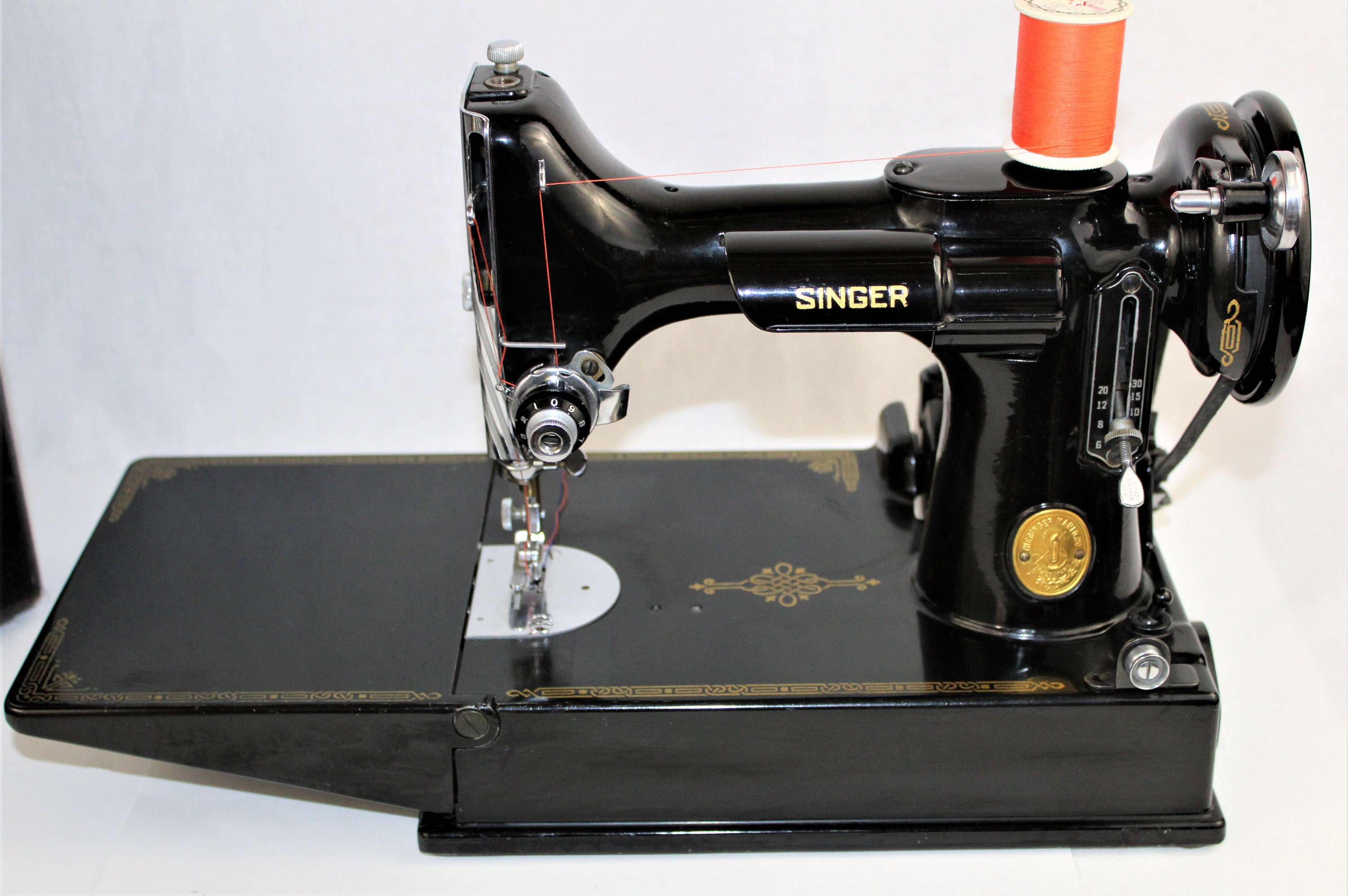 The I. M. Singer and Company began making sewing machines in 1851. In 1933, the company debuted the ‘featherweight’ machine at the Chicago World’s Fair. During WWII, the company’s factories were retooled to support war related machinery needs. In 1945, when they changed back to manufacturing sewing machines, the featherweight was their most popular and reliable brand. The Singer featherweight has long been a cherished machine for quilting and sewing due to its precise sewing capability and easy portability.