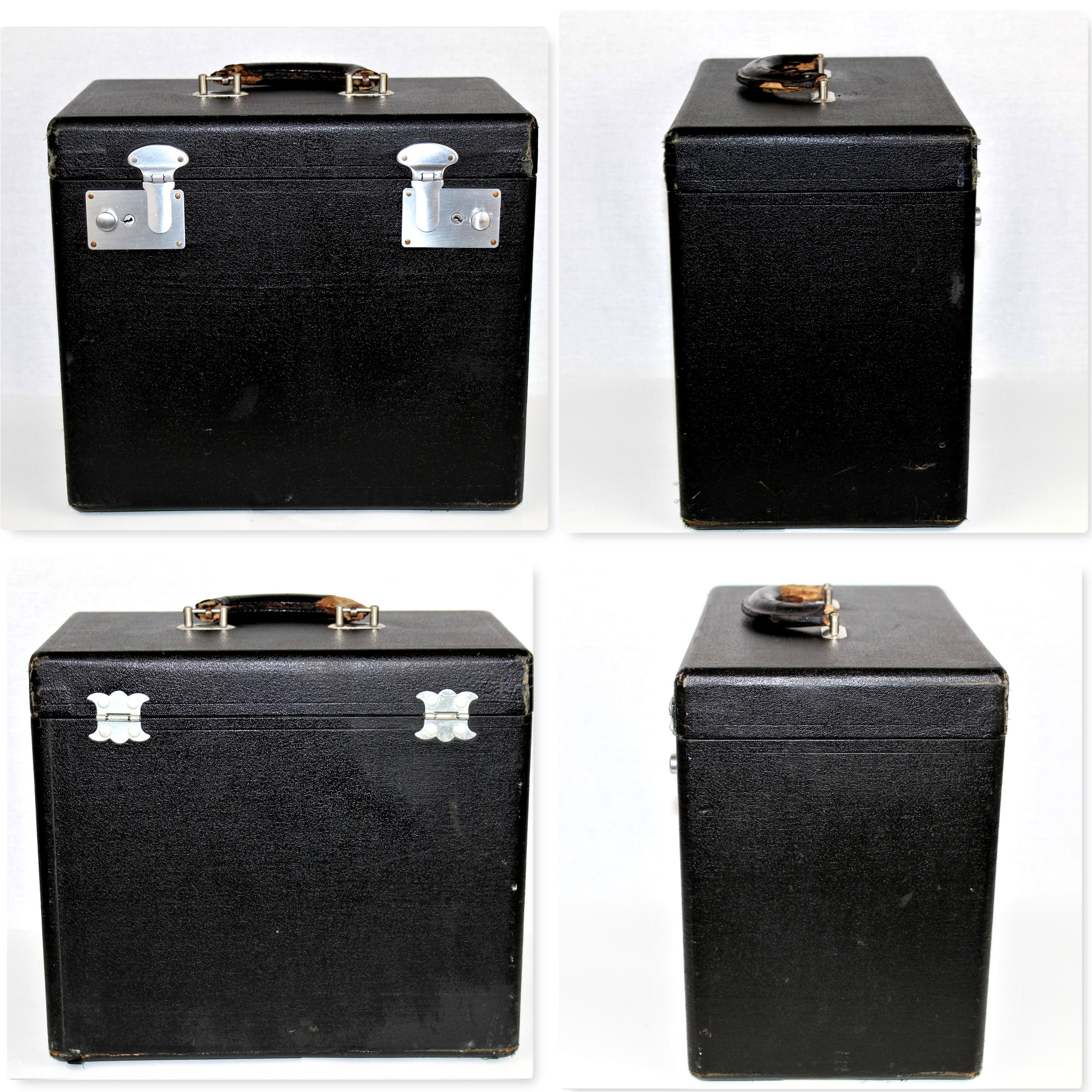 Case, shows wear from use and age but very structurally solid, the leather handle shows extensive wear but still strong and sturdy.