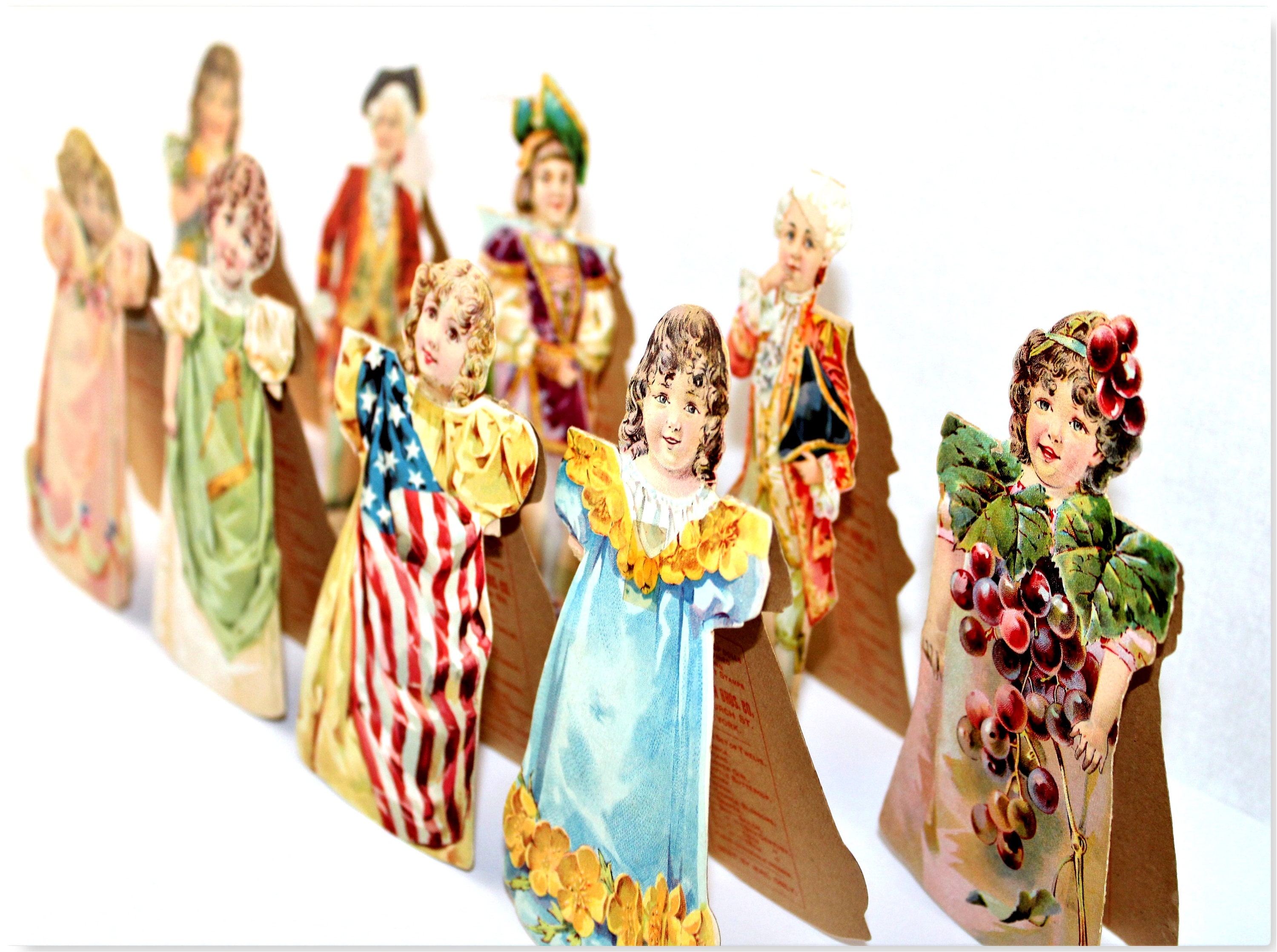 Wonderful collection of antique paper dolls from the 1890s. These were advertisements for Barbour's Irish Flax Threads and Copyrighted in 1895.