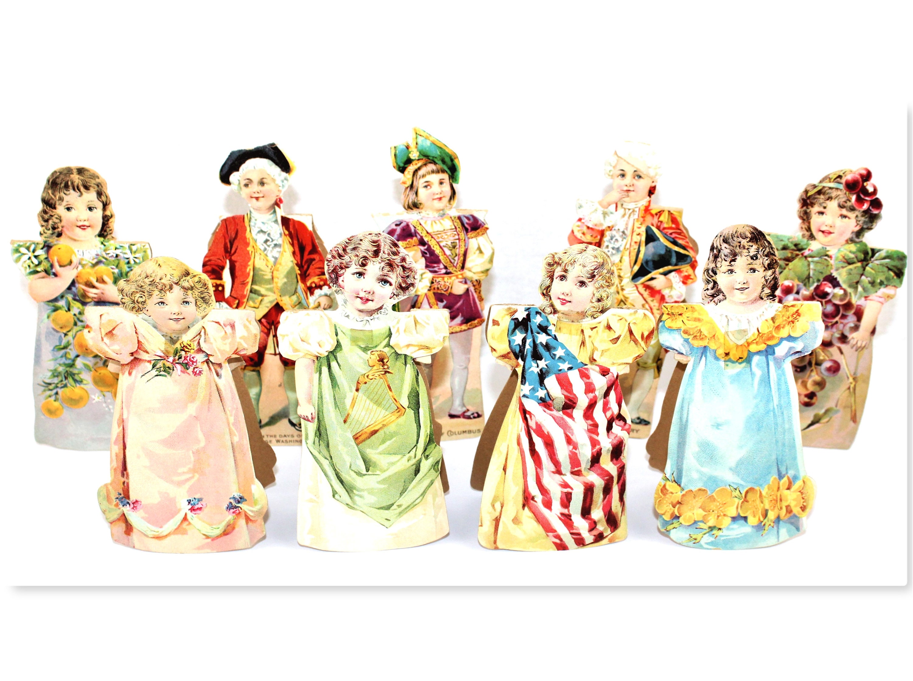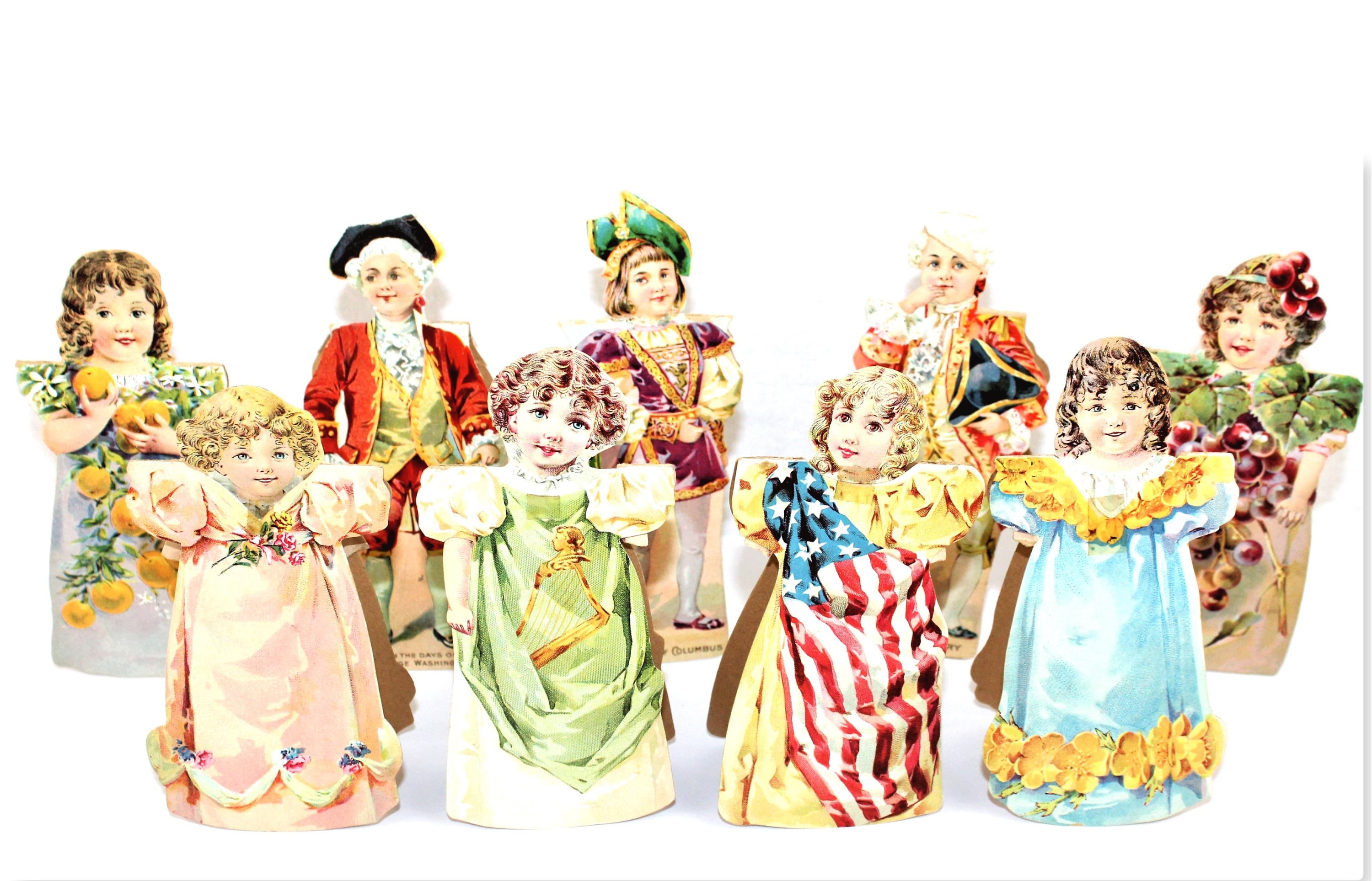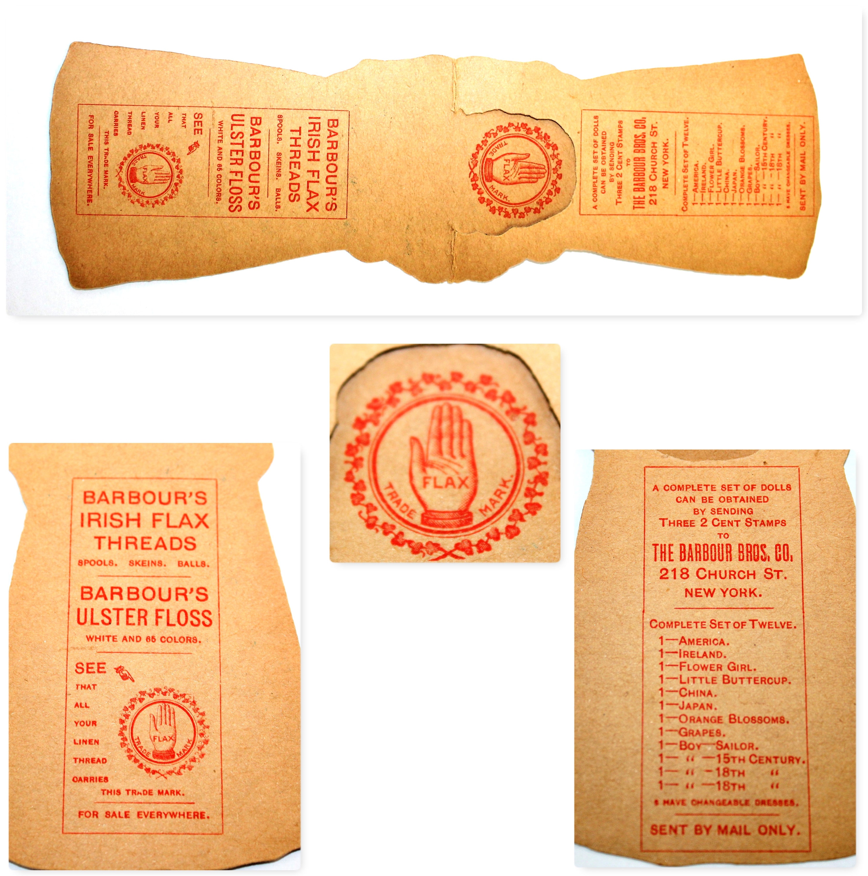Antique 1895, Barbour's Irish Flax Threads Paper Dolls set of 9 Dolls.