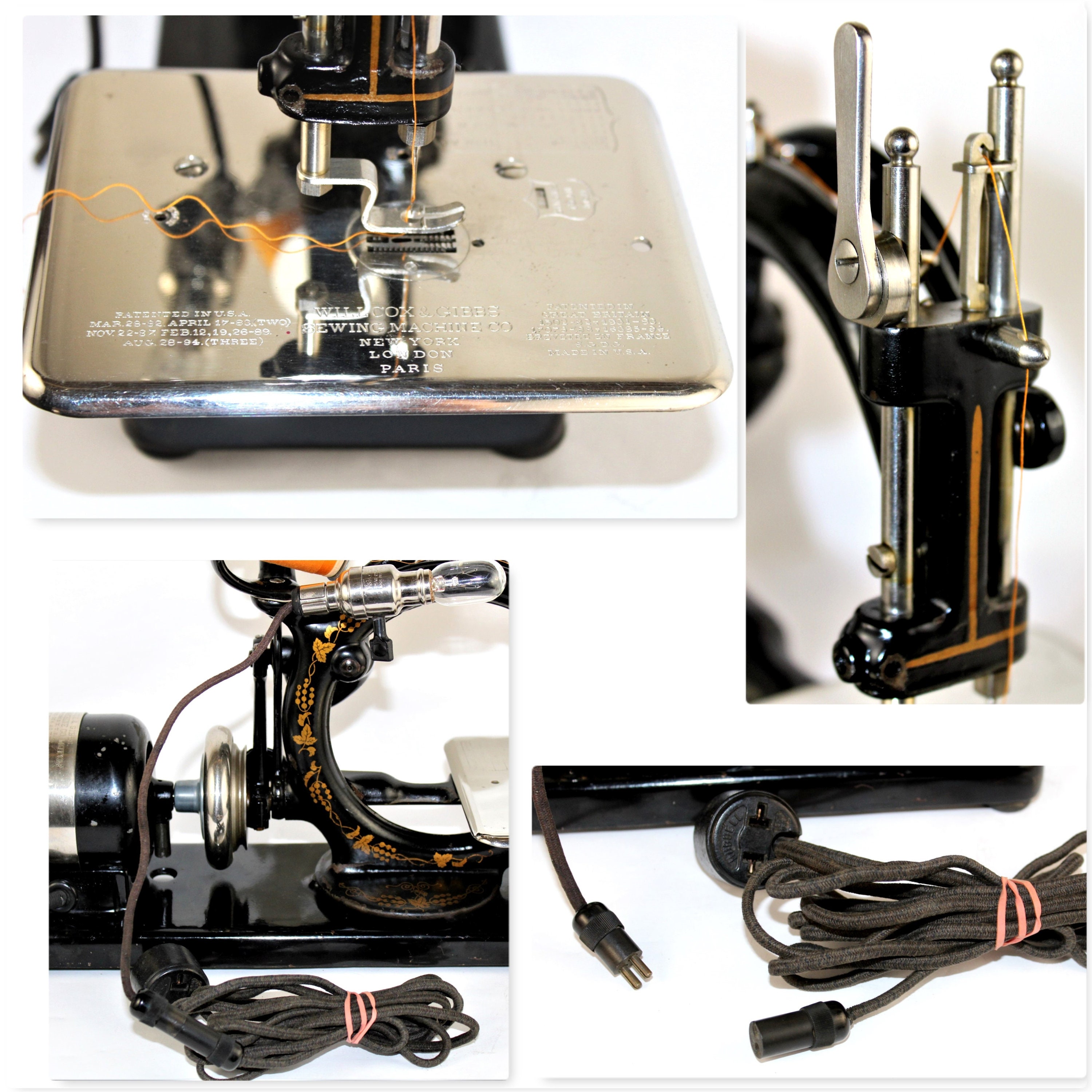 MACHINE Condition is very good runs and operates smoothly and produces a nice clean chain stitch. It does have some paint chips through-out the machine and motor which are very common with this old of a machine (please zoom into pictures). The electrical cords are original and show wear (these should be replaced at some point).