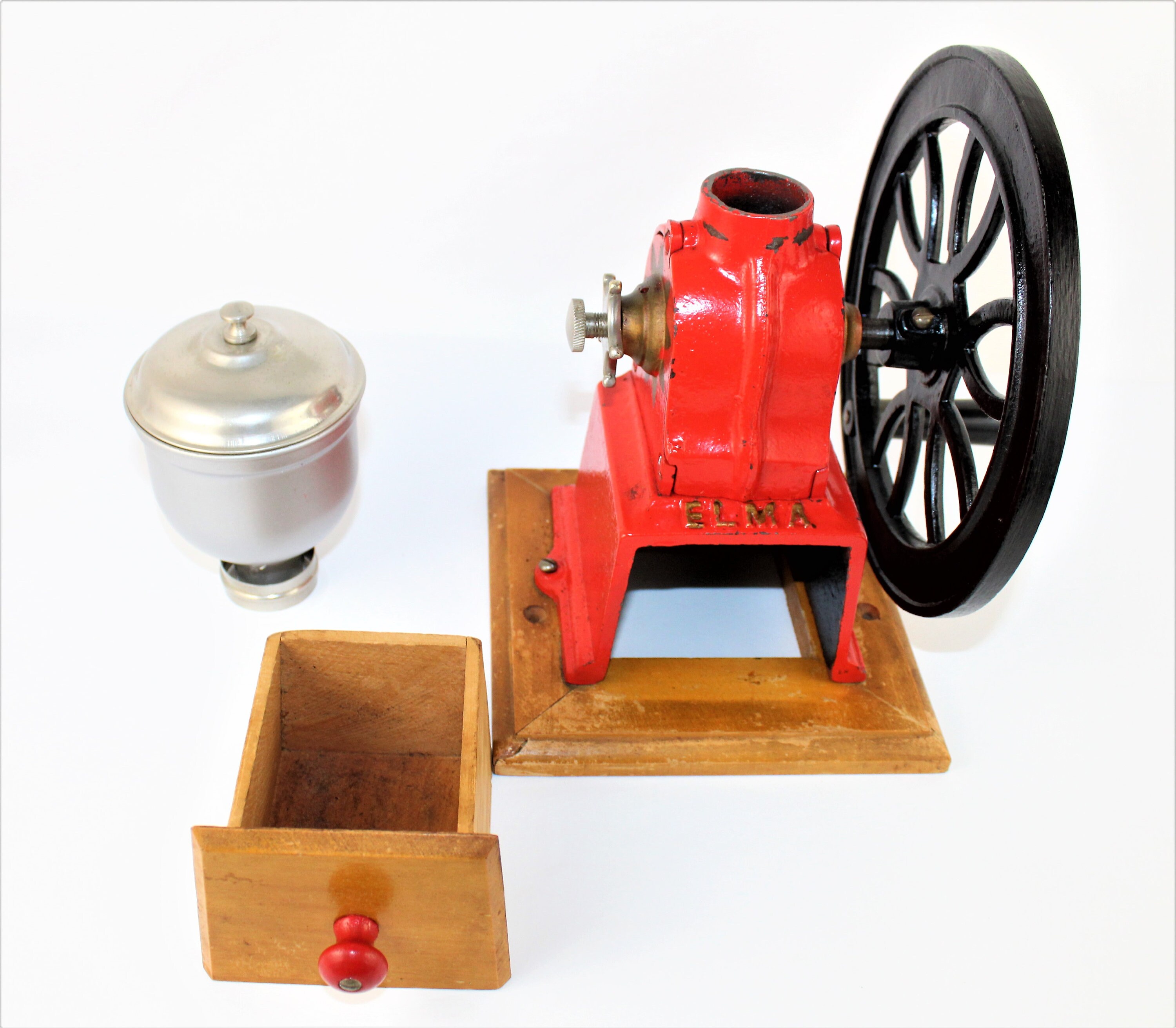 We have for sale a Vintage 1930s Cast Iron Elma Coffee Grinder / Mill.