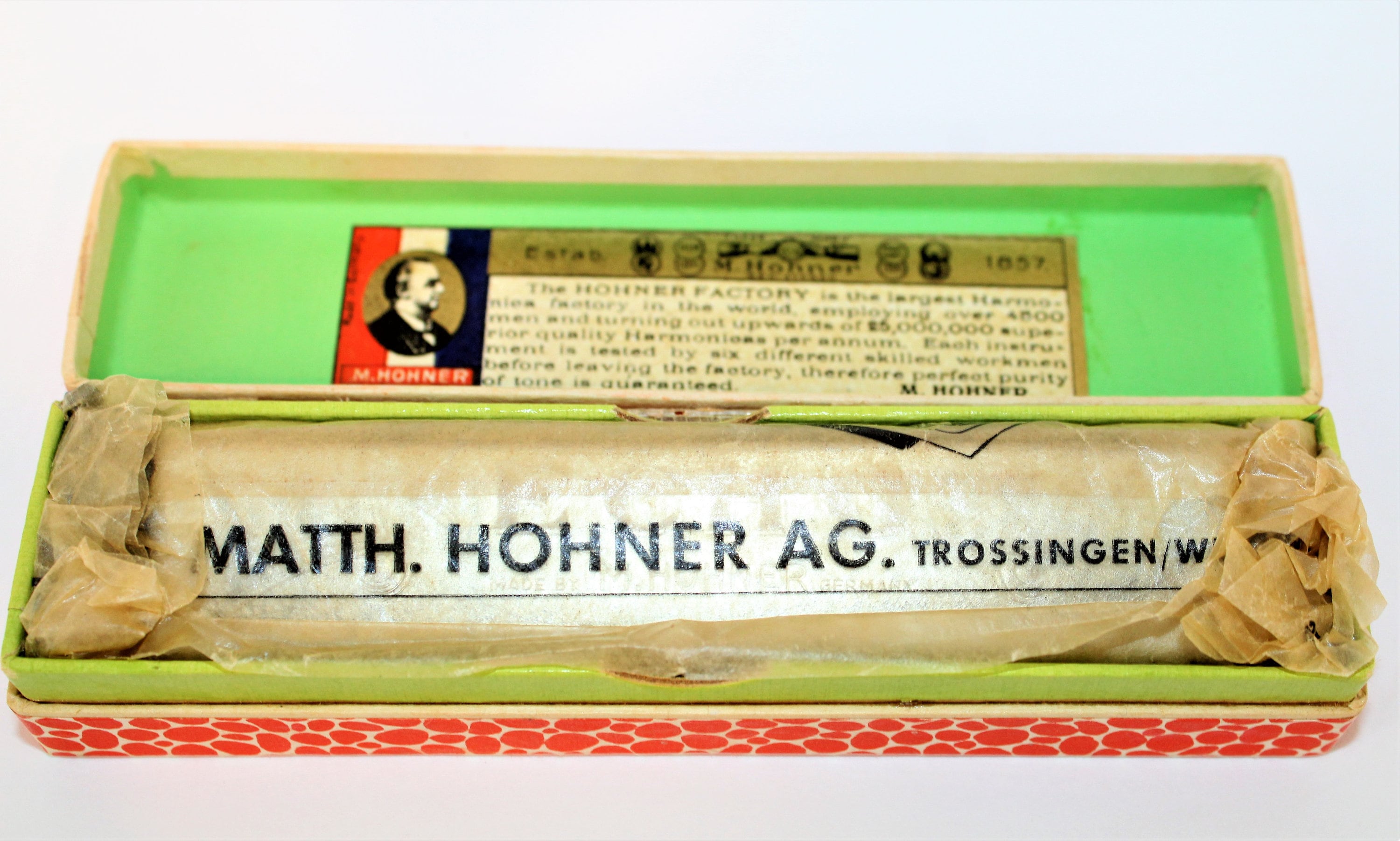 Wonderful find this beautiful Harmonica made by Hohner of Germany. This is in its original box and appears to have never been used or just slightly used. It is in the Key of C.