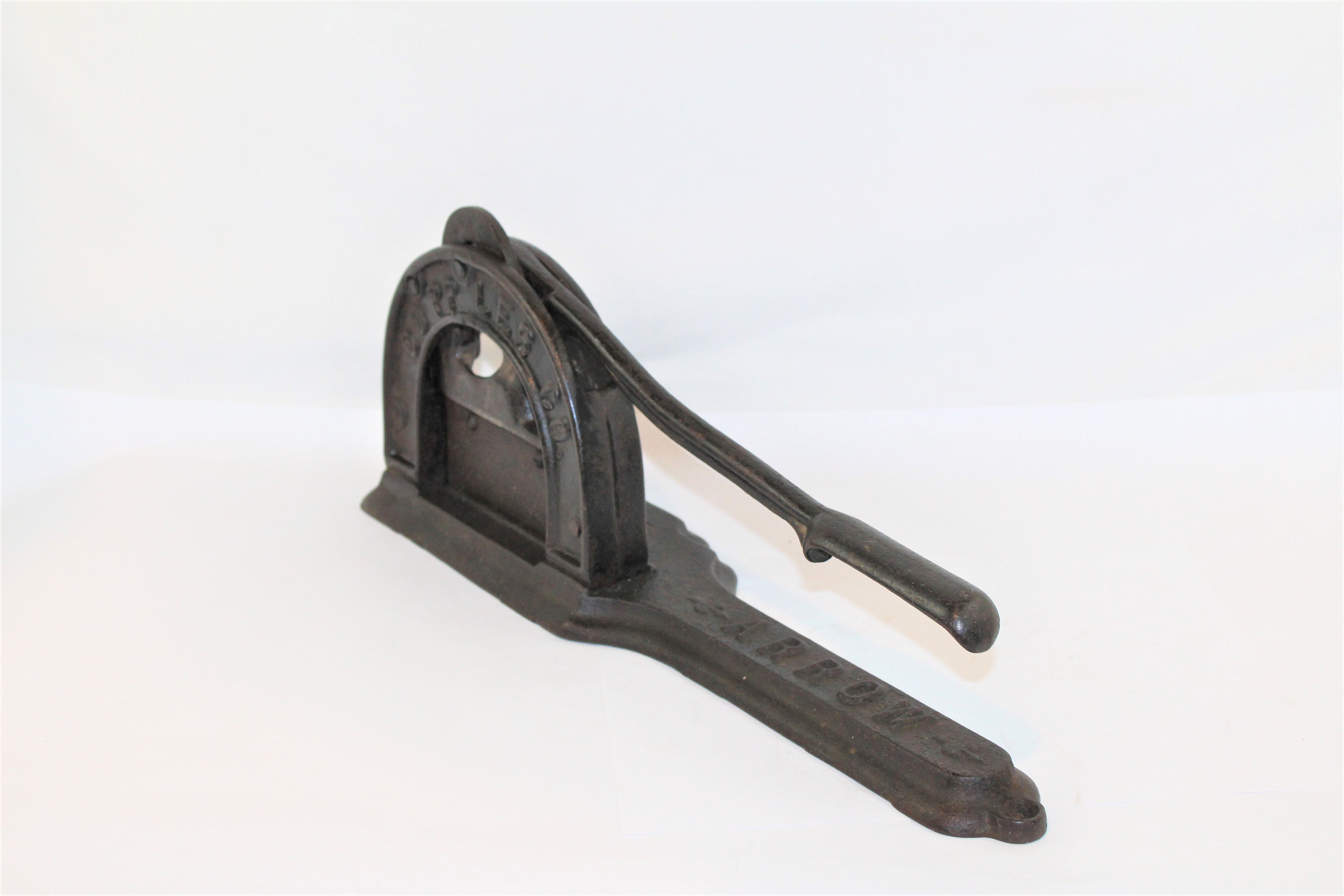 Wonderful find this late 1800s Tobacco cutter made by the Enterprise Manufacturing Co. of Philadelphia PA. Made of cast iron with steel cutting blade and marked in raised lettering (Cupples Co.) on the cutting blade housing and (Arrow) on the base.