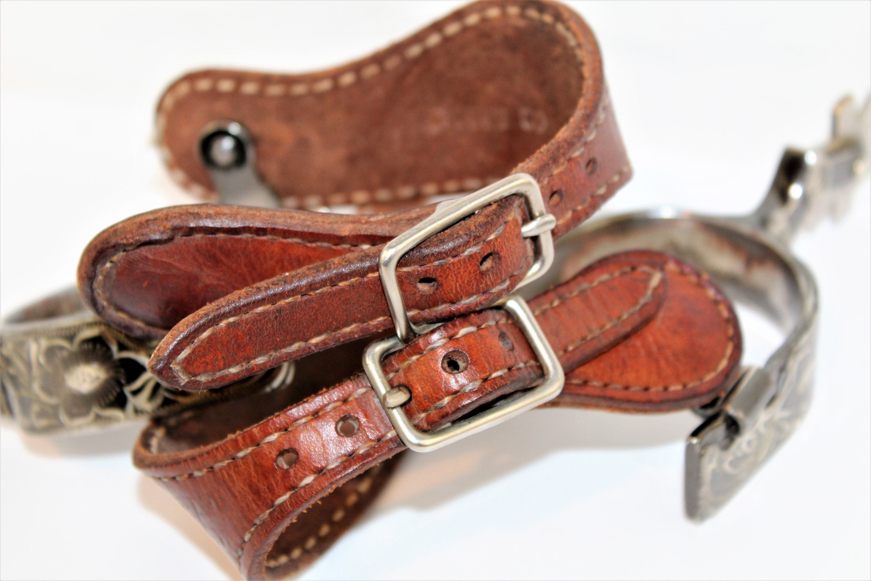 Condition, Spurs are in wonderful condition for age with light wear on inside from boot wear, some plating lose. Straps are worn but very solid.