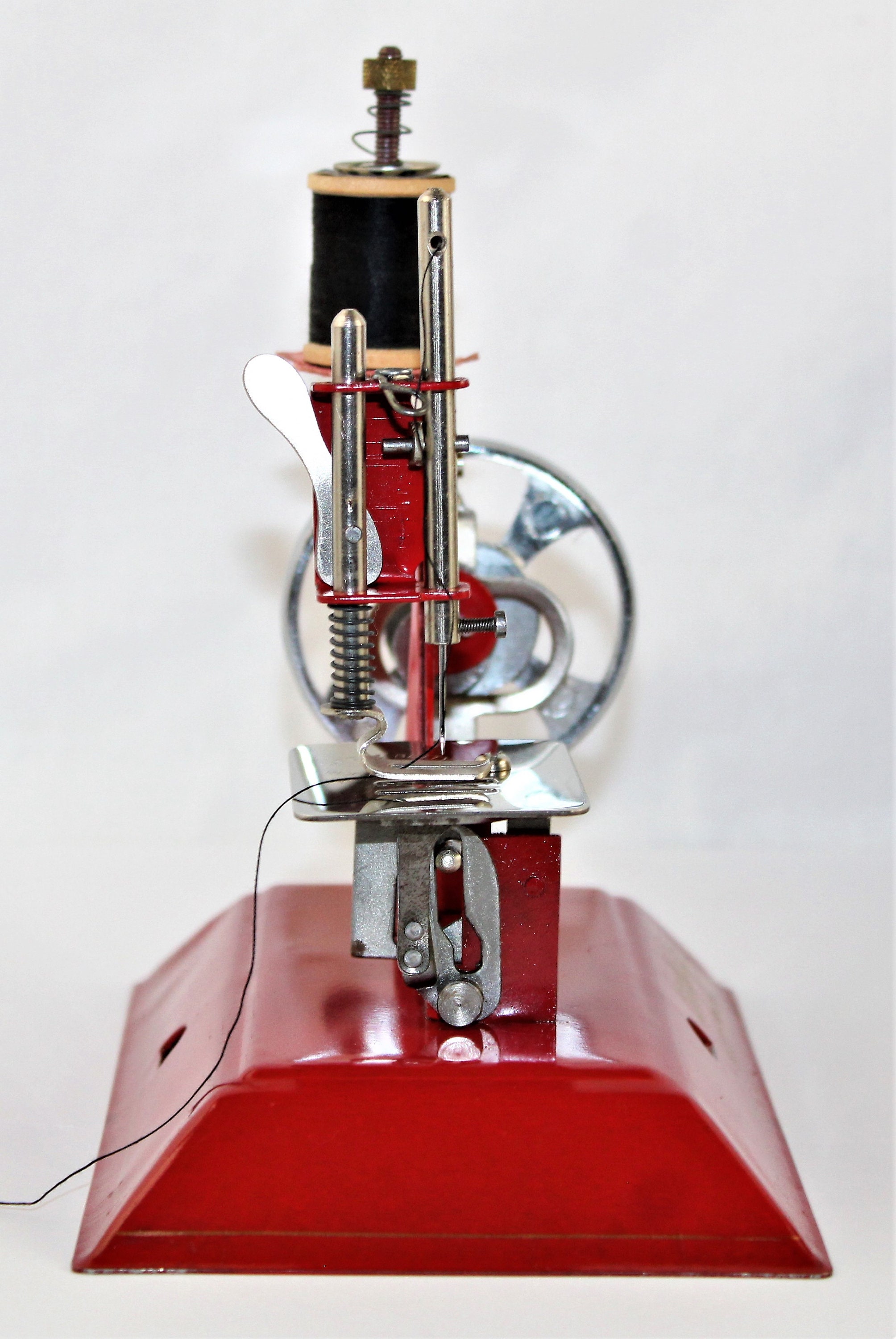 This size of machine was not a toy as they were designed for children to learn how to sew - perfect size for making doll clothes. It uses a single thread that produces a chain stitch.