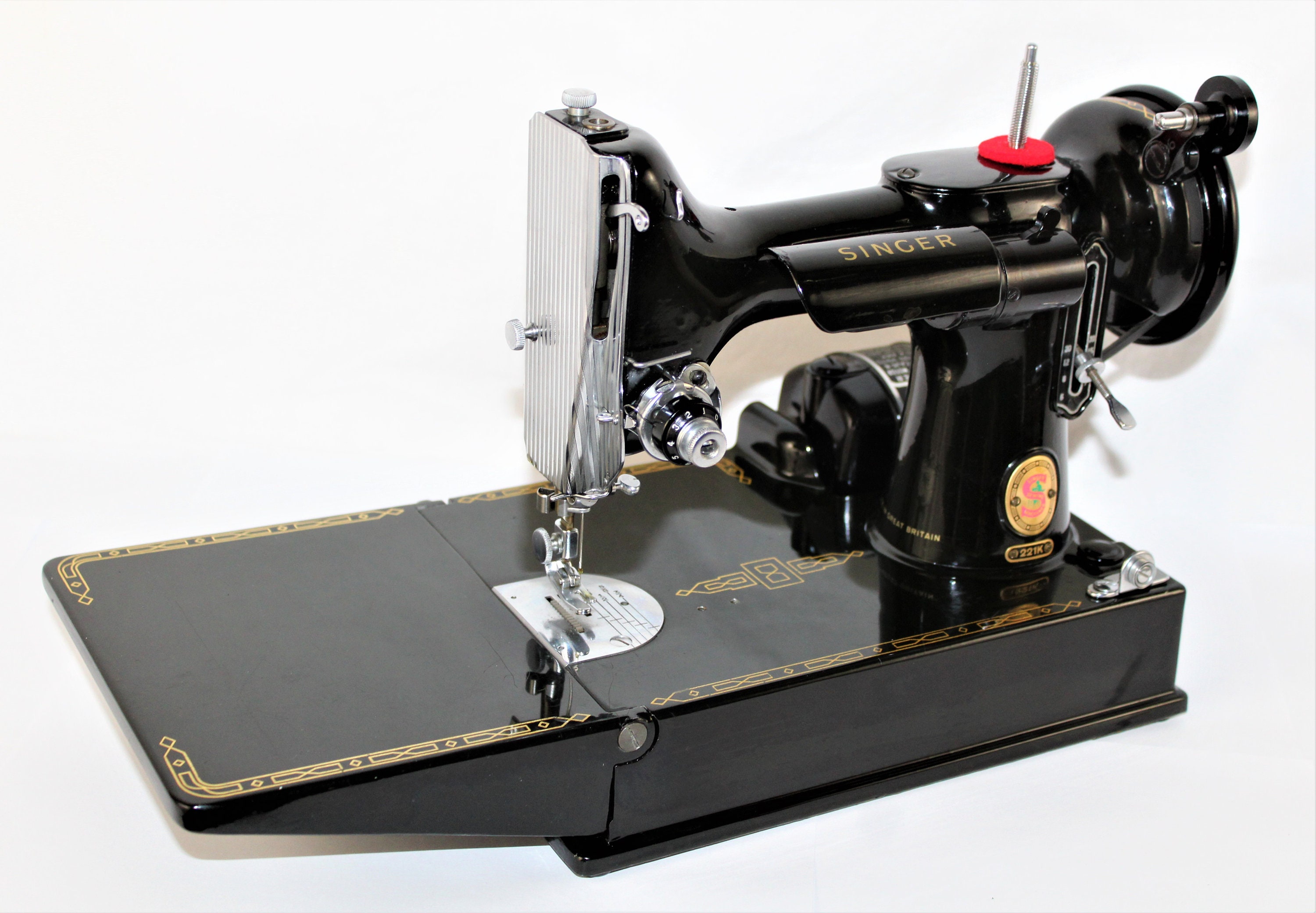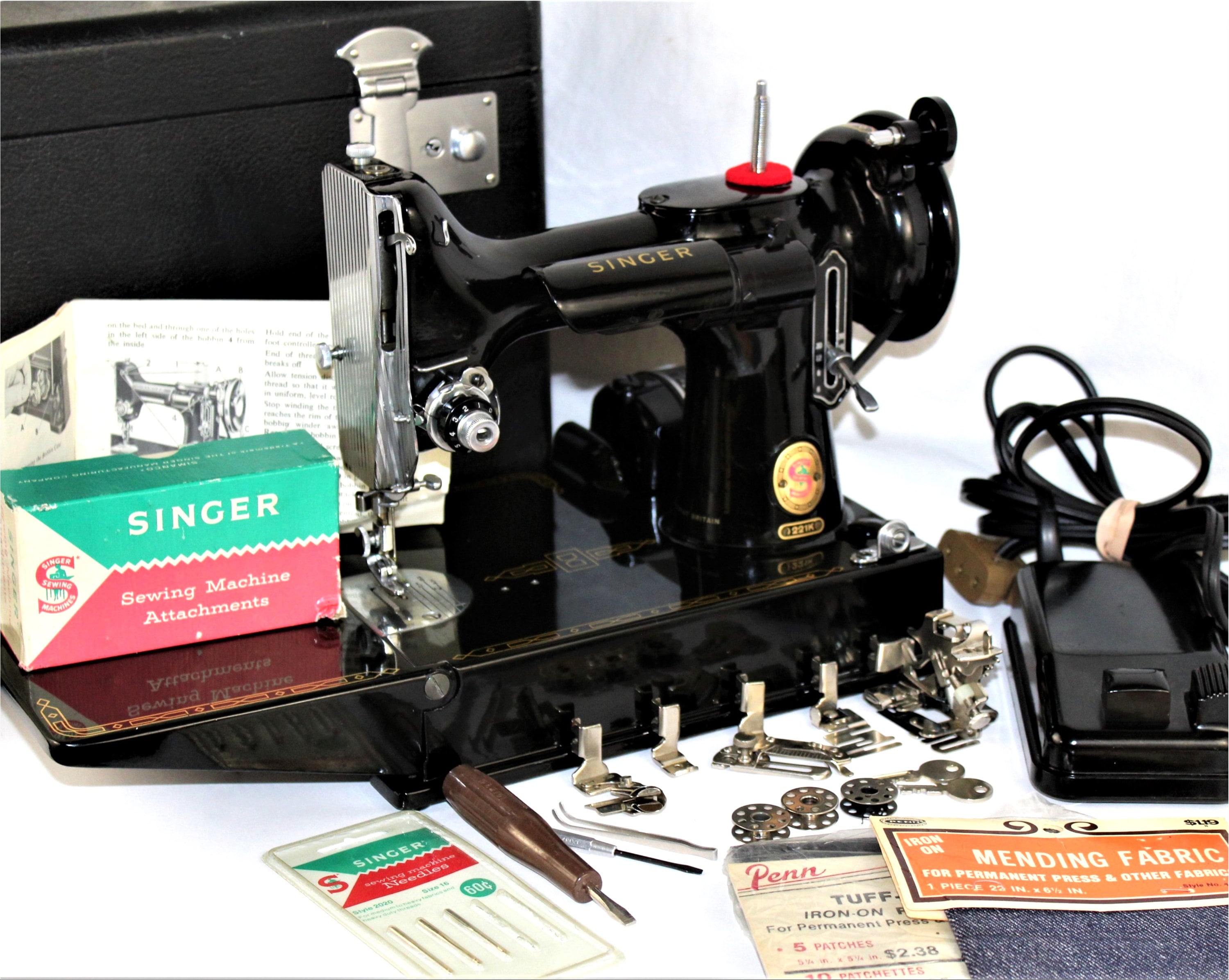 1960 Singer 221 K featherweight sewing machine with carrying case, fully cleaned, and serviced Serial Number ES173046.