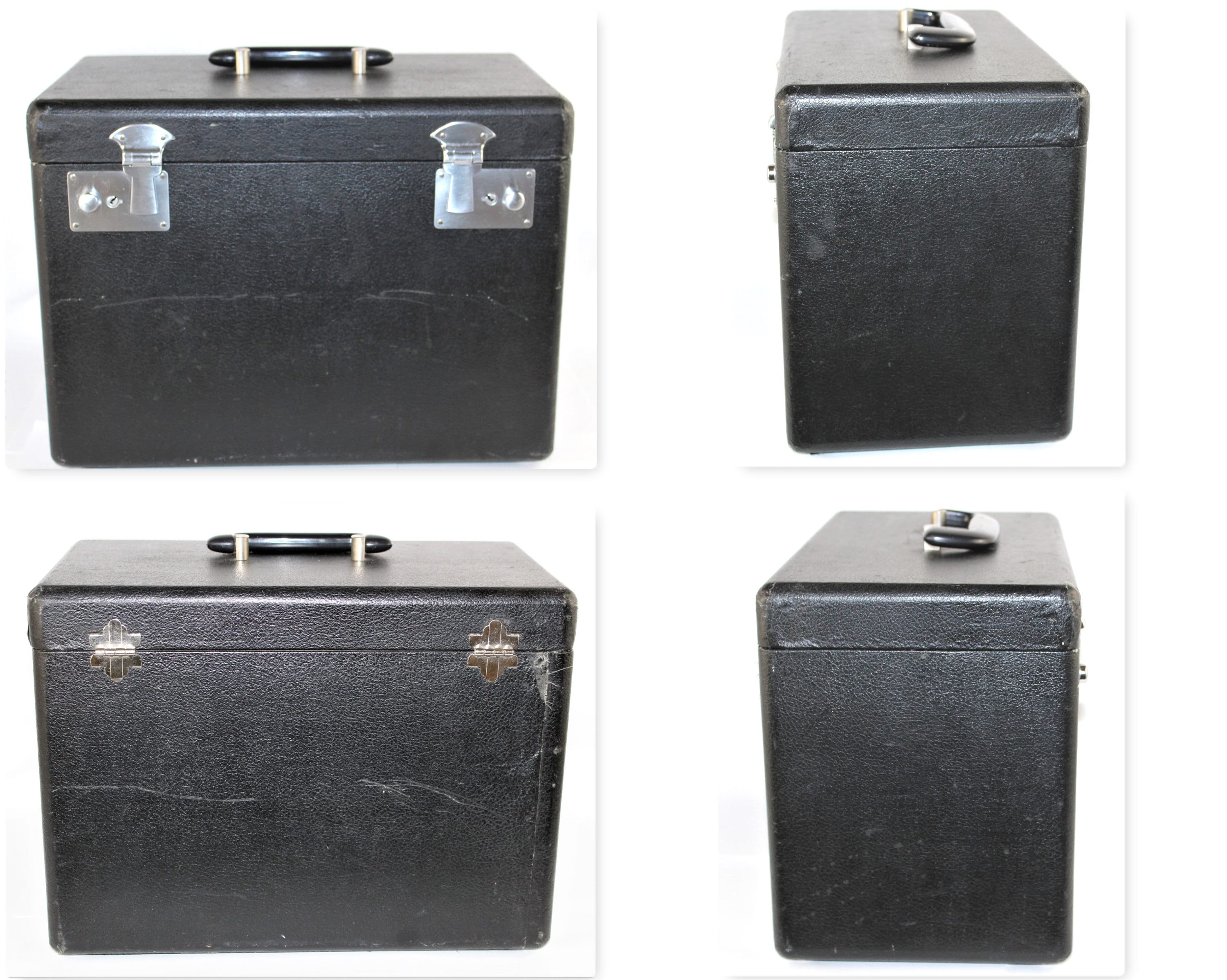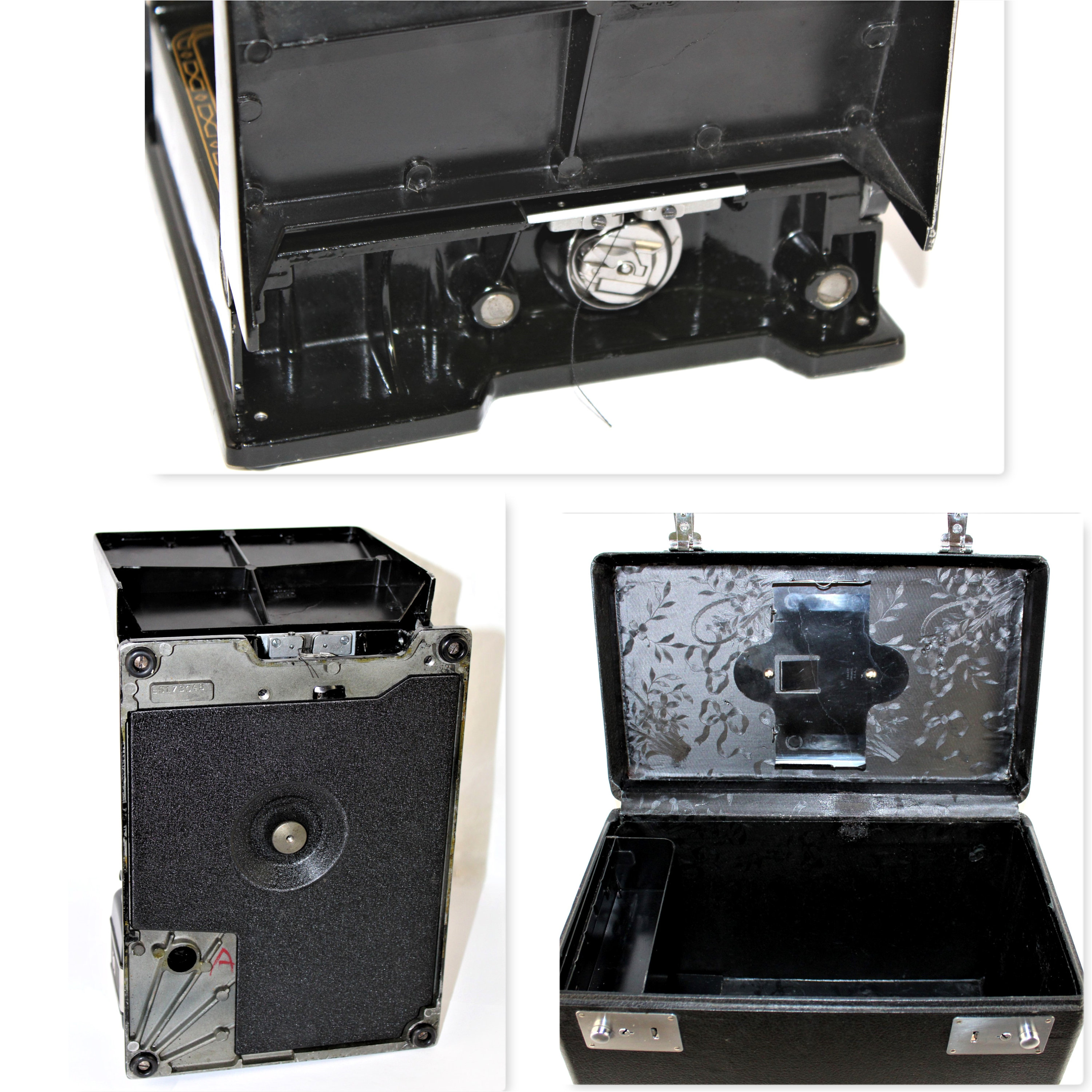 The machine badge was issued on November 3, 1960, and was manufactured in Great Britain. It has an original 110-volt motor and beautiful chrome trim. The machine, case, and attachments are all in good vintage condition.
