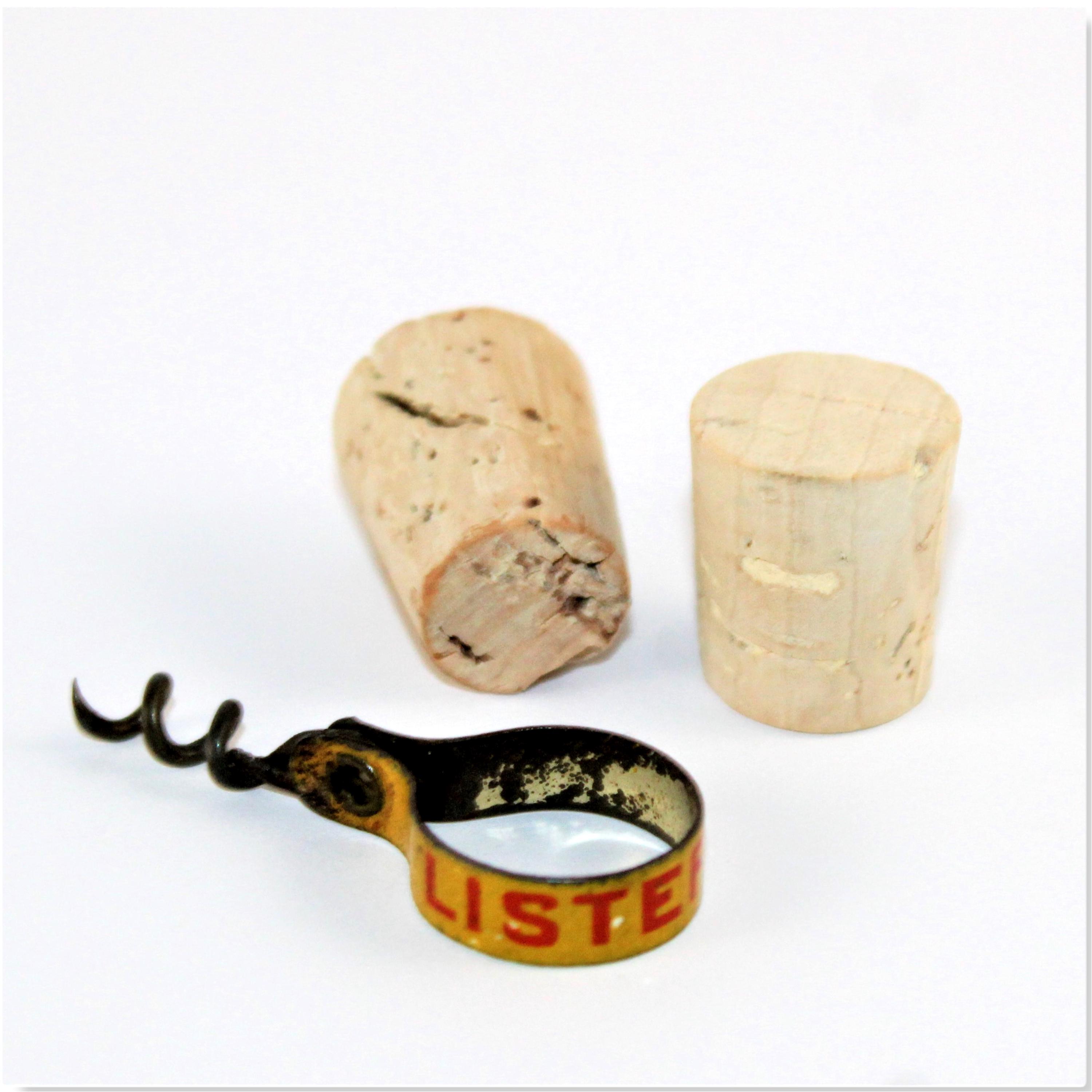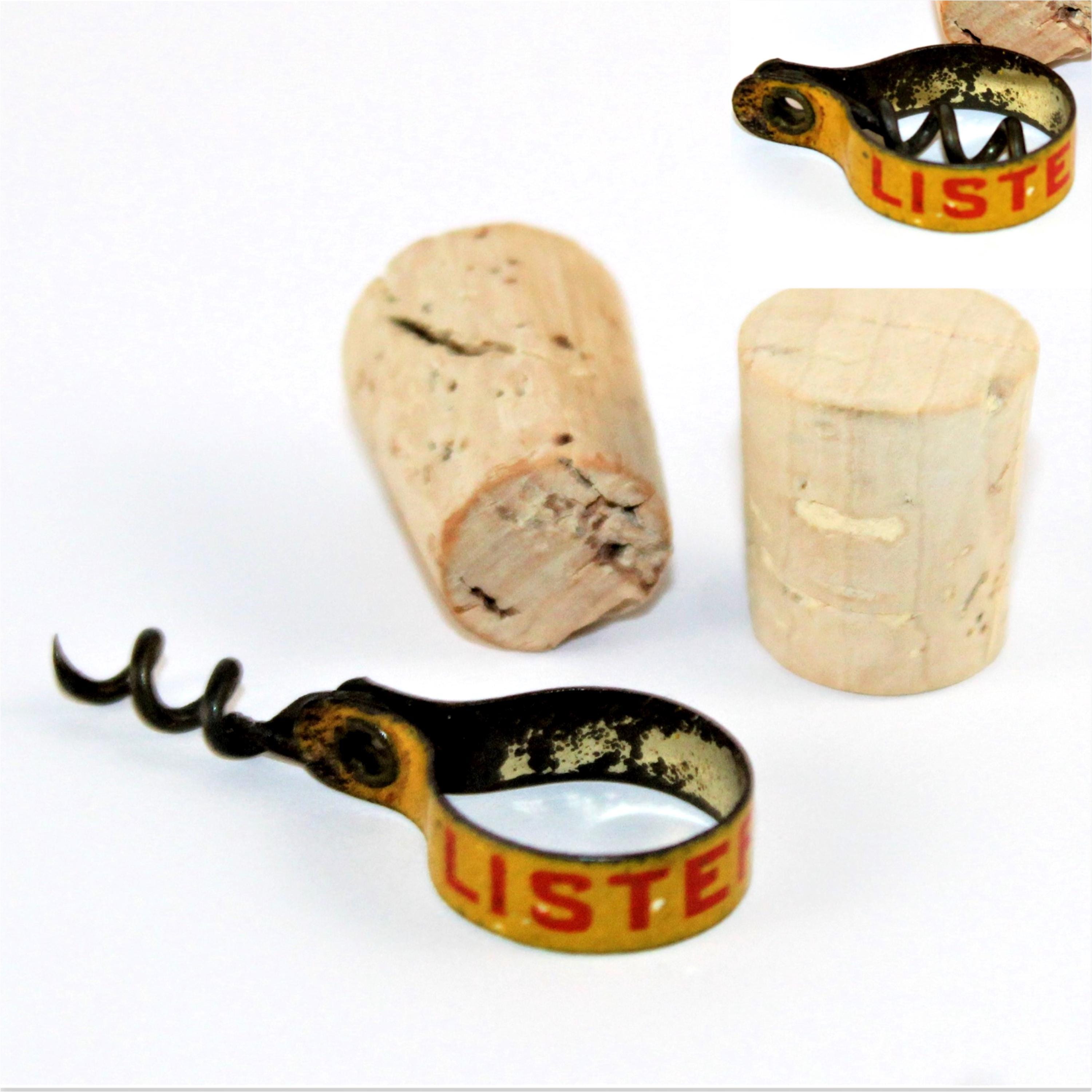 This was an advertising corkscrew for Listerine from approximately 1890 back before the bottle cap was invented even medical bottles needed a corkscrew to open, this little one would have been purchase with a bottle of Listerine. Measures 1” long folded and 1¾” unfolded and 5/8” wide barely large enough to get my pinky finger in the hole.