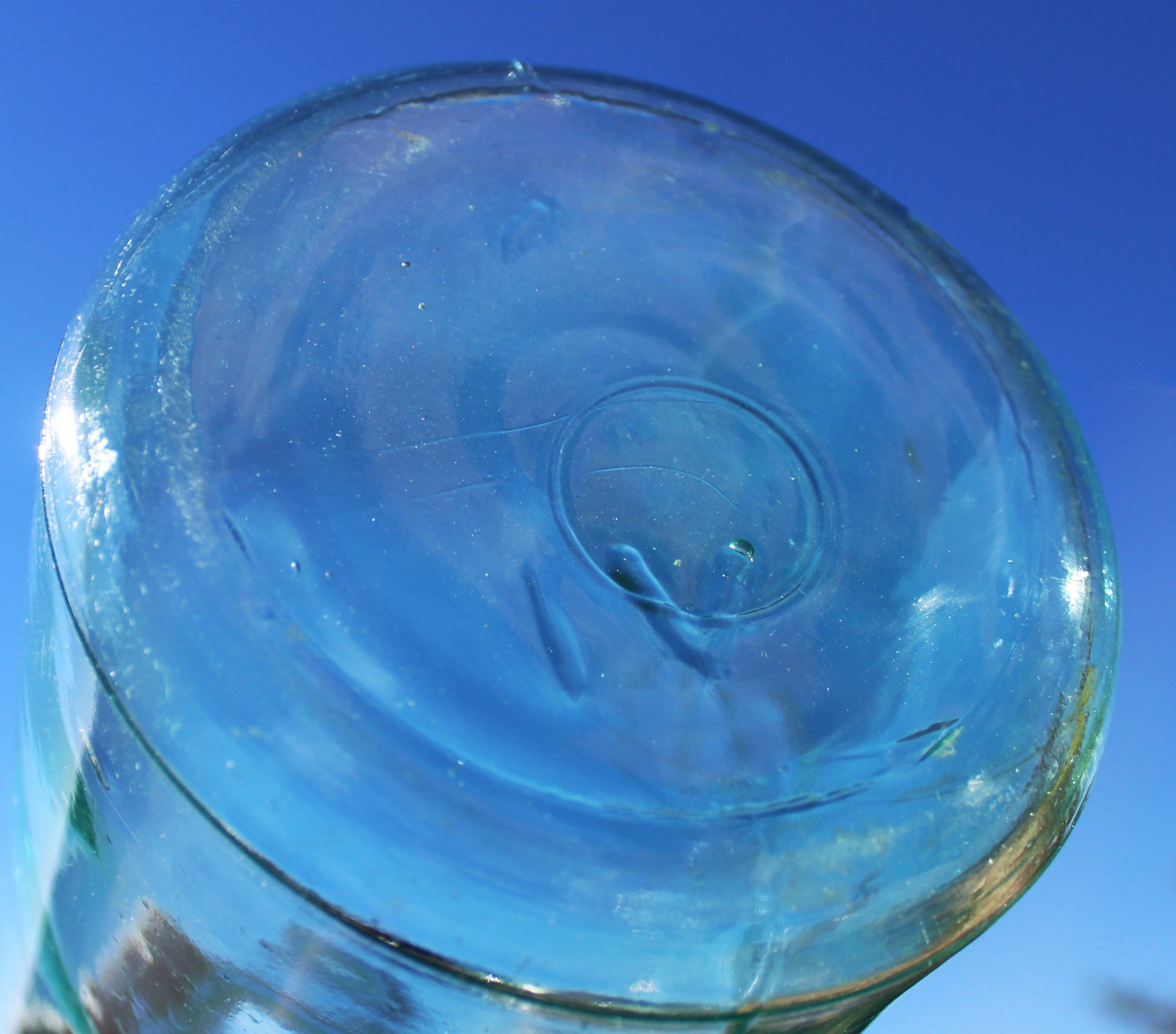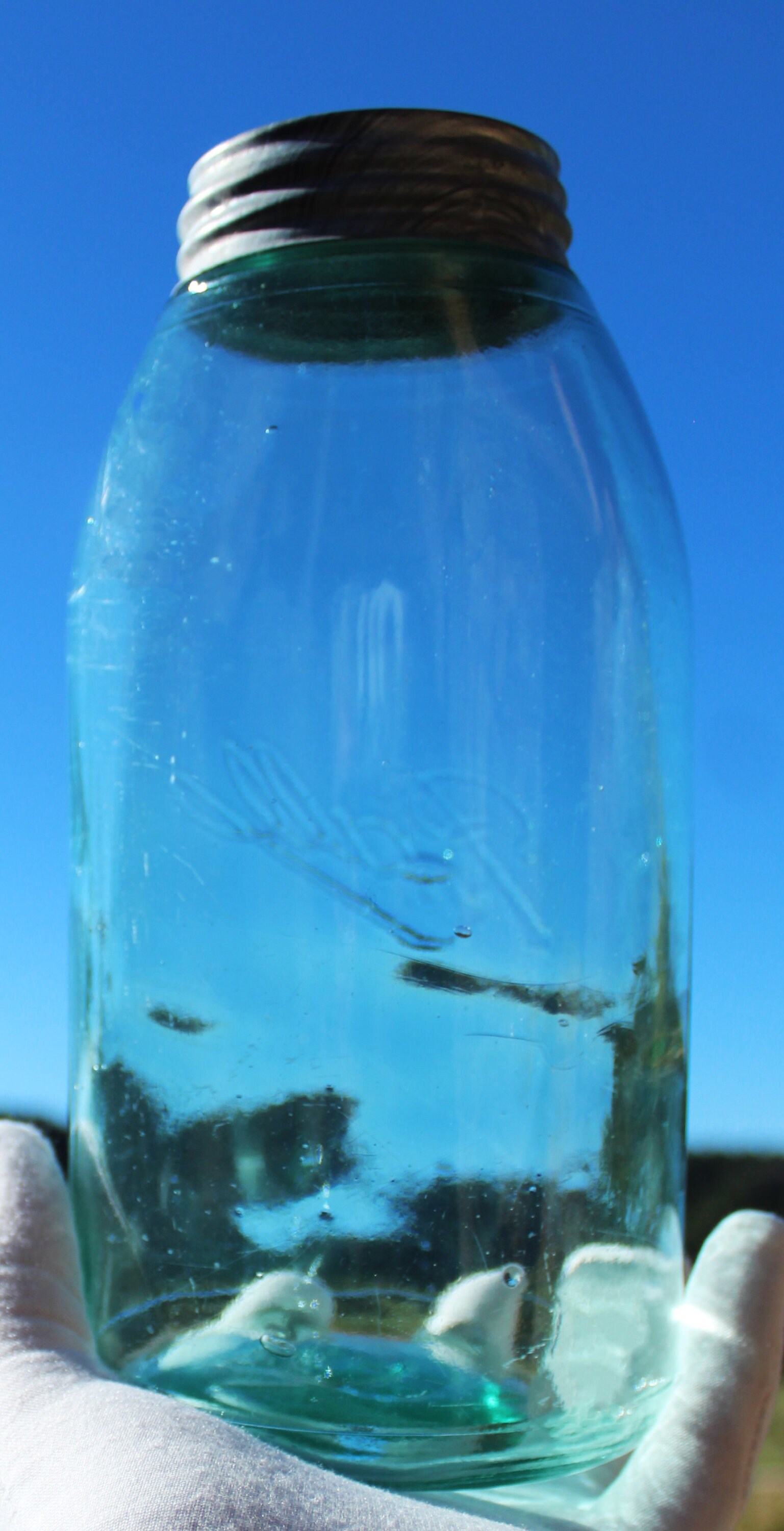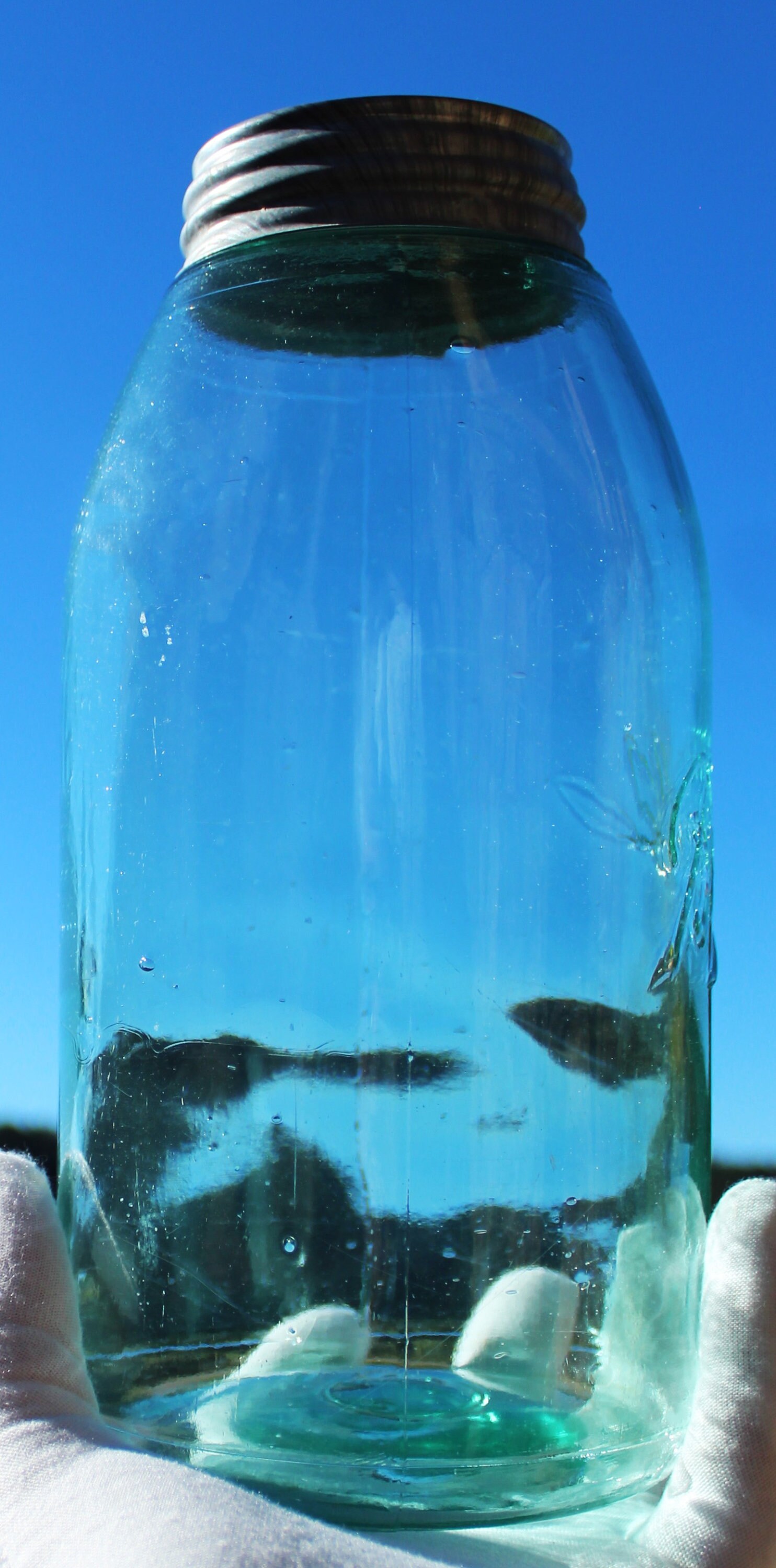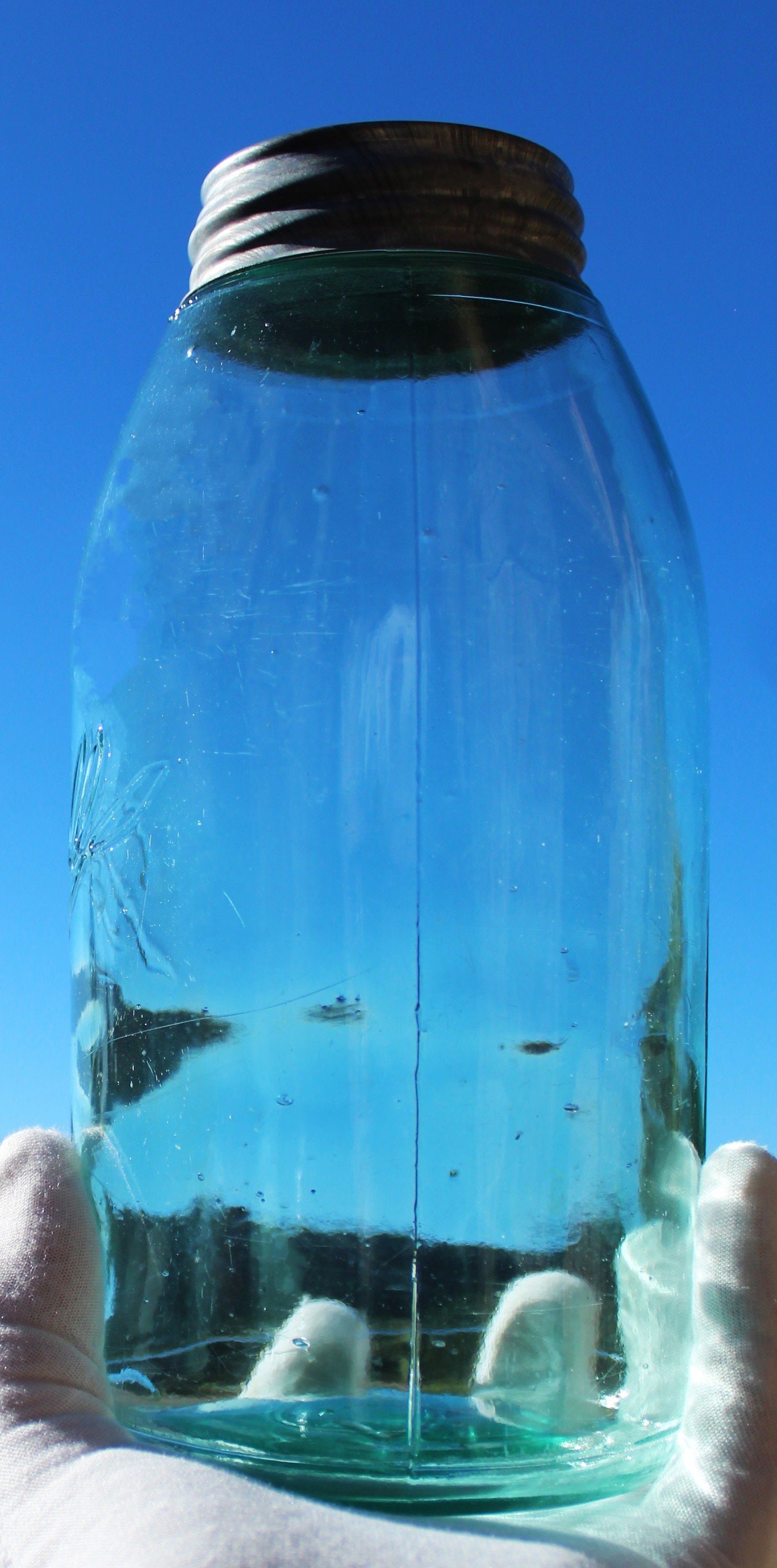 The jar is in wonderful condition with bubbles and lines in the glass.