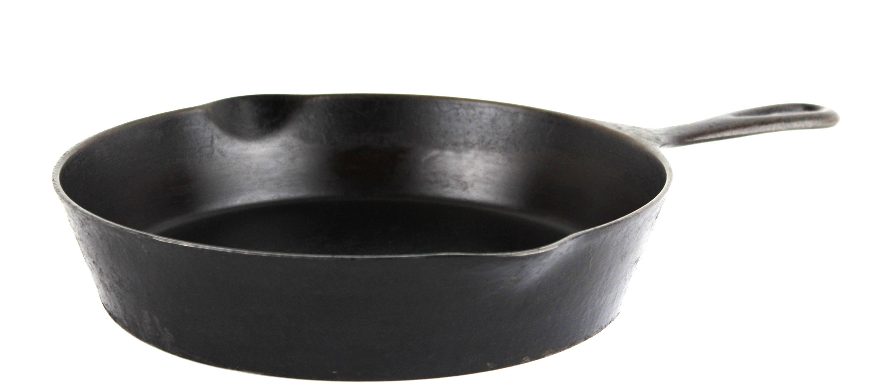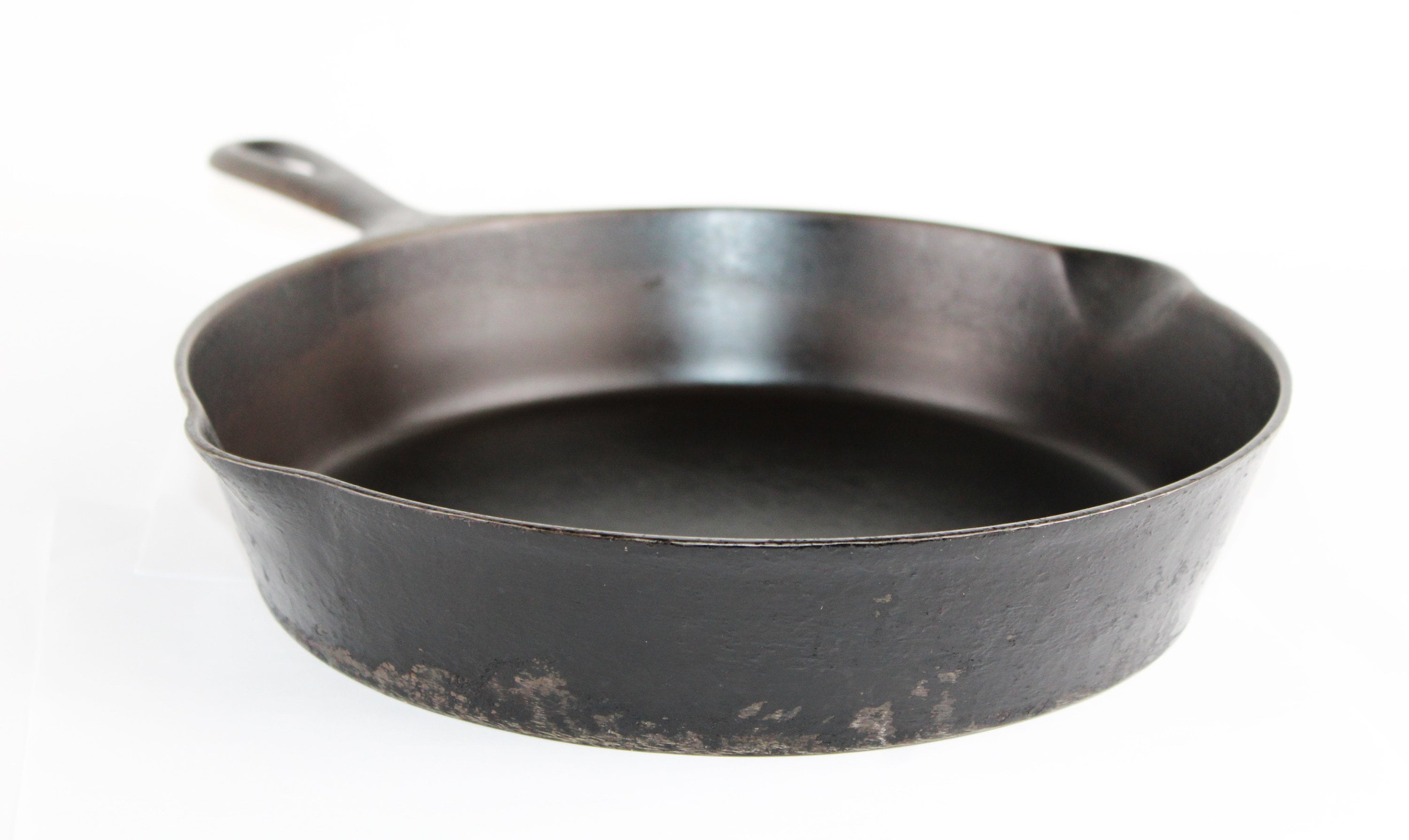 Condition, As Found, solid no brakes or cracks in pan, needs cleaned and seasoned.