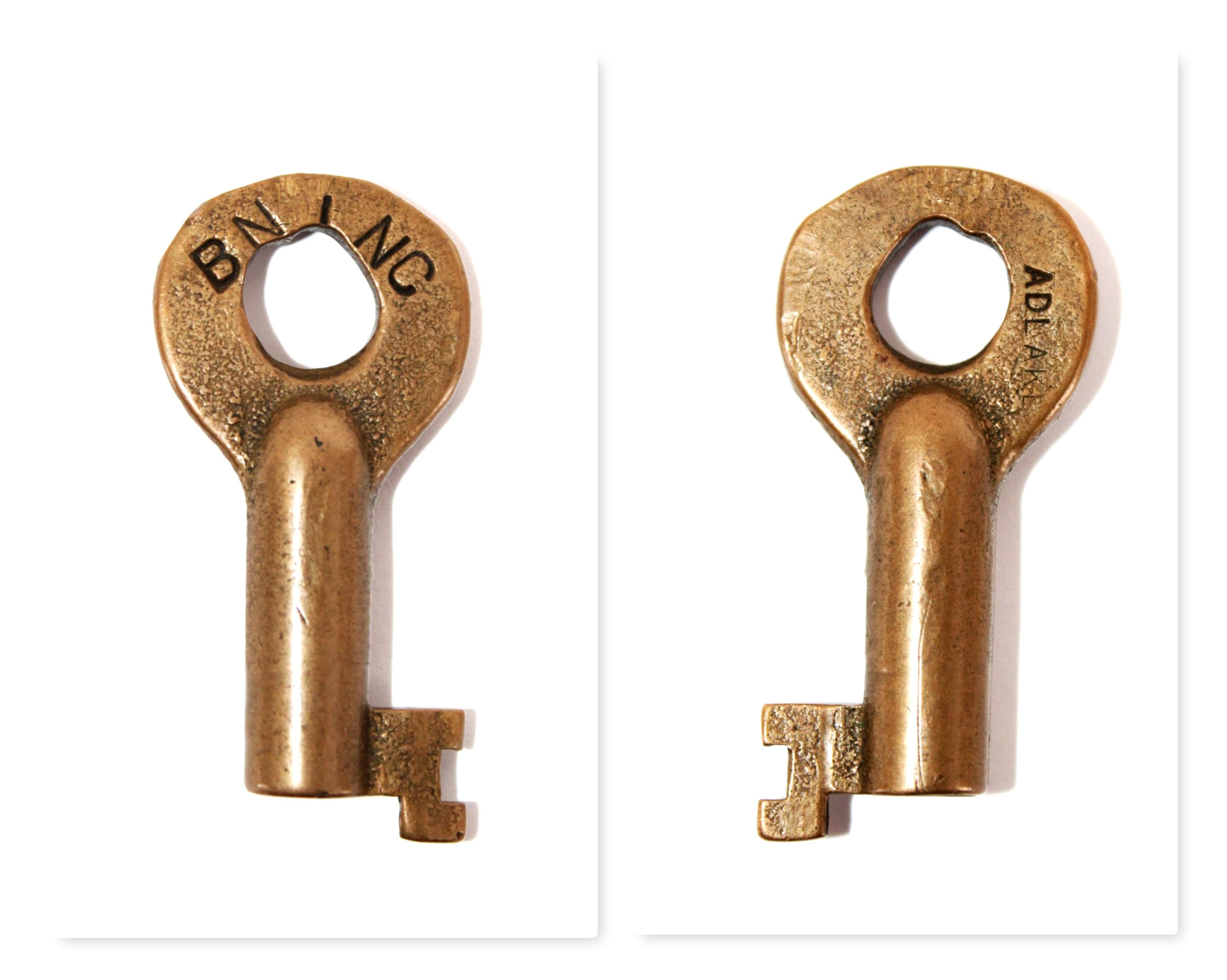 Authentic Burlington Northern Railroad switch lock key. Front of key reads BN INC back reads Adlake.