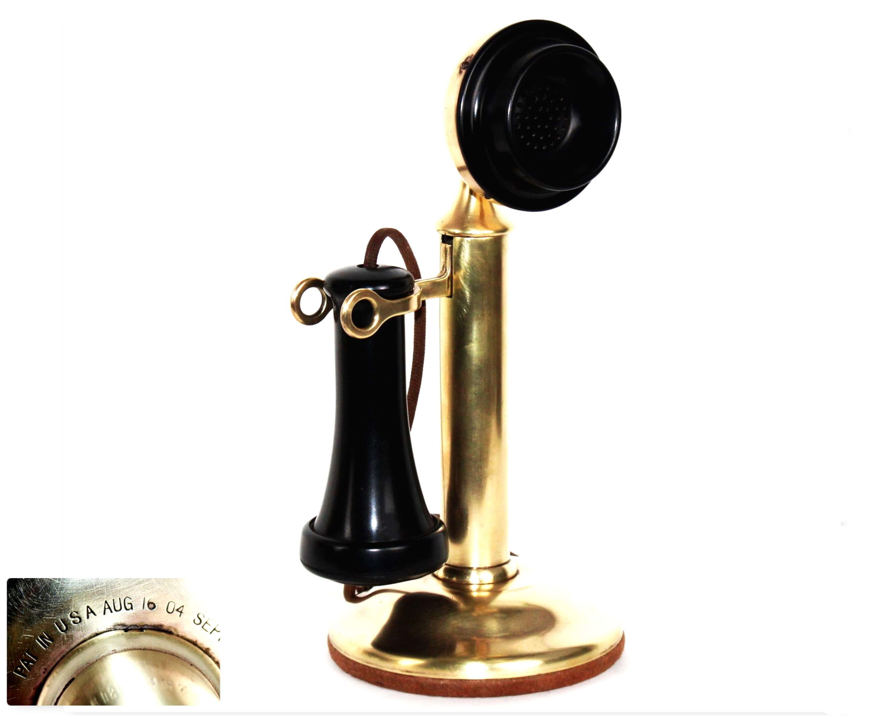 Beautiful Candlestick Phone made by the Western Electric Telephone Company. The phone is marked with the patent dates August 16,1904 and September 13, 1904.