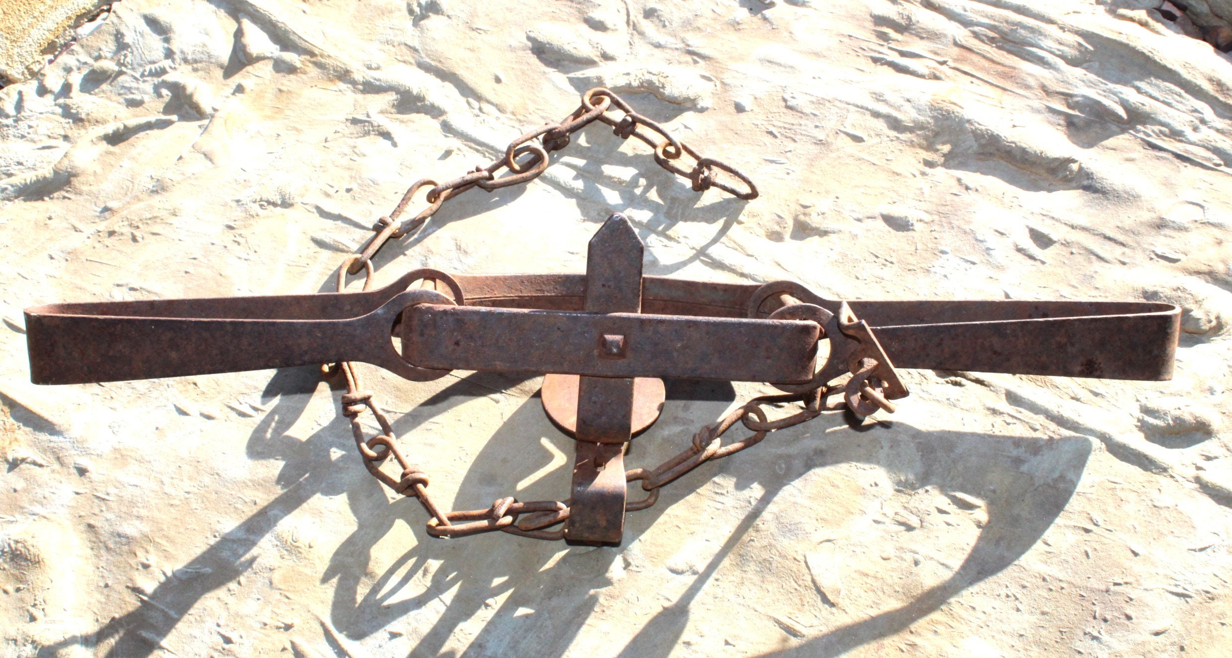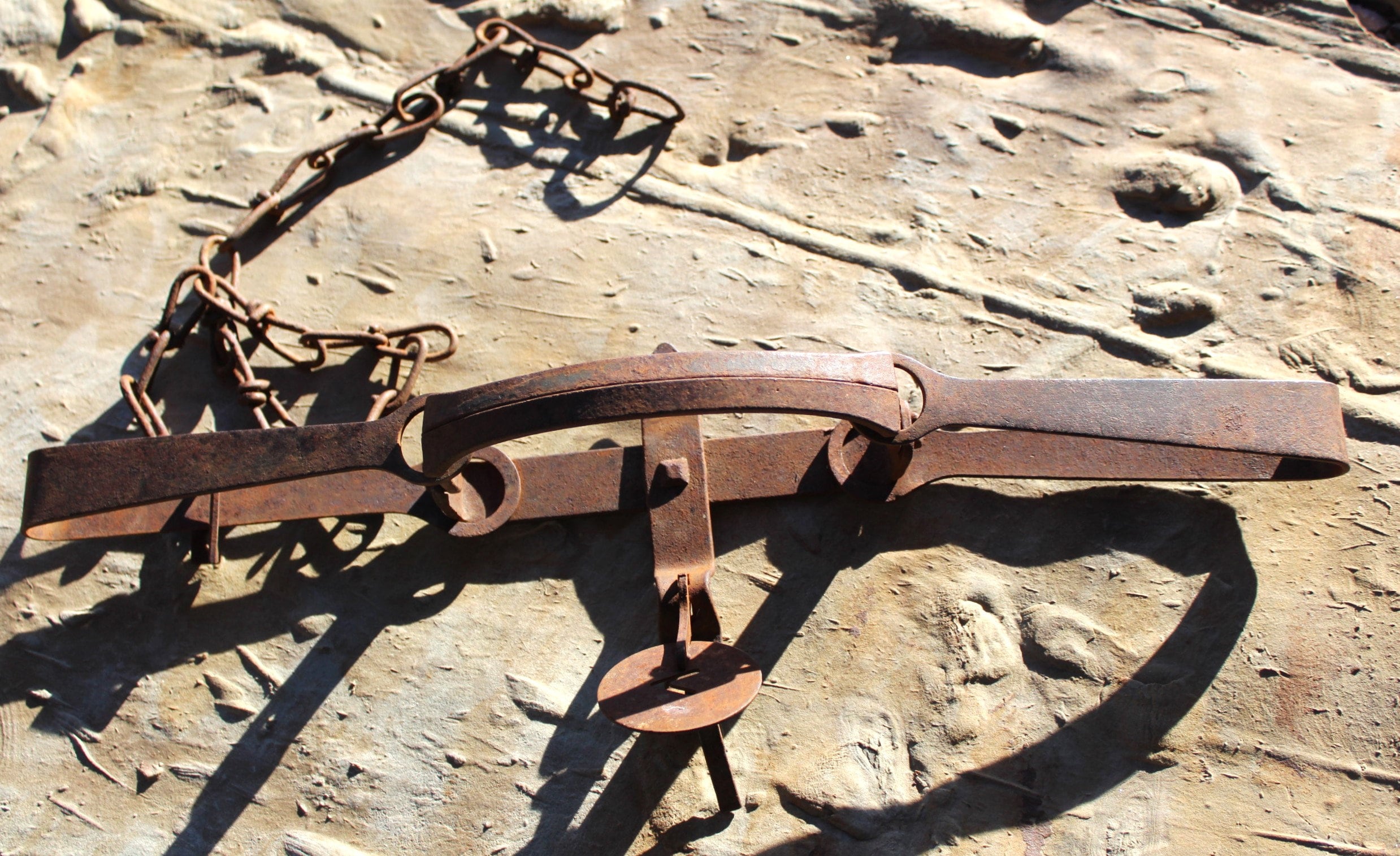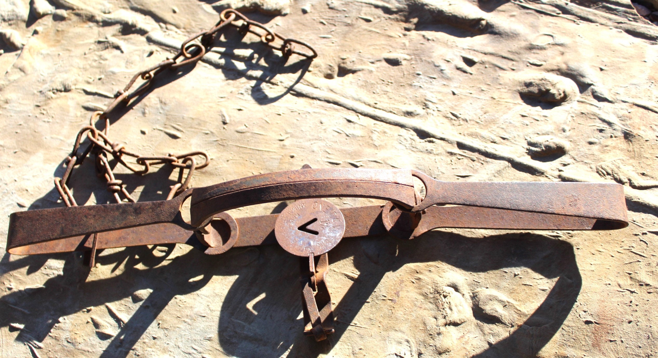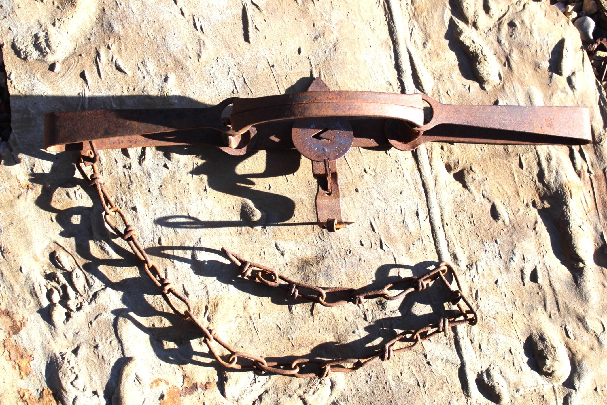 Early 1900s double long spring trap made by Victor Oneida. This size tarp would be for larger animals such as Coyote, Beaver, Bobcat. The trap is in good condition with strong springs, the trap is 19-inches long.