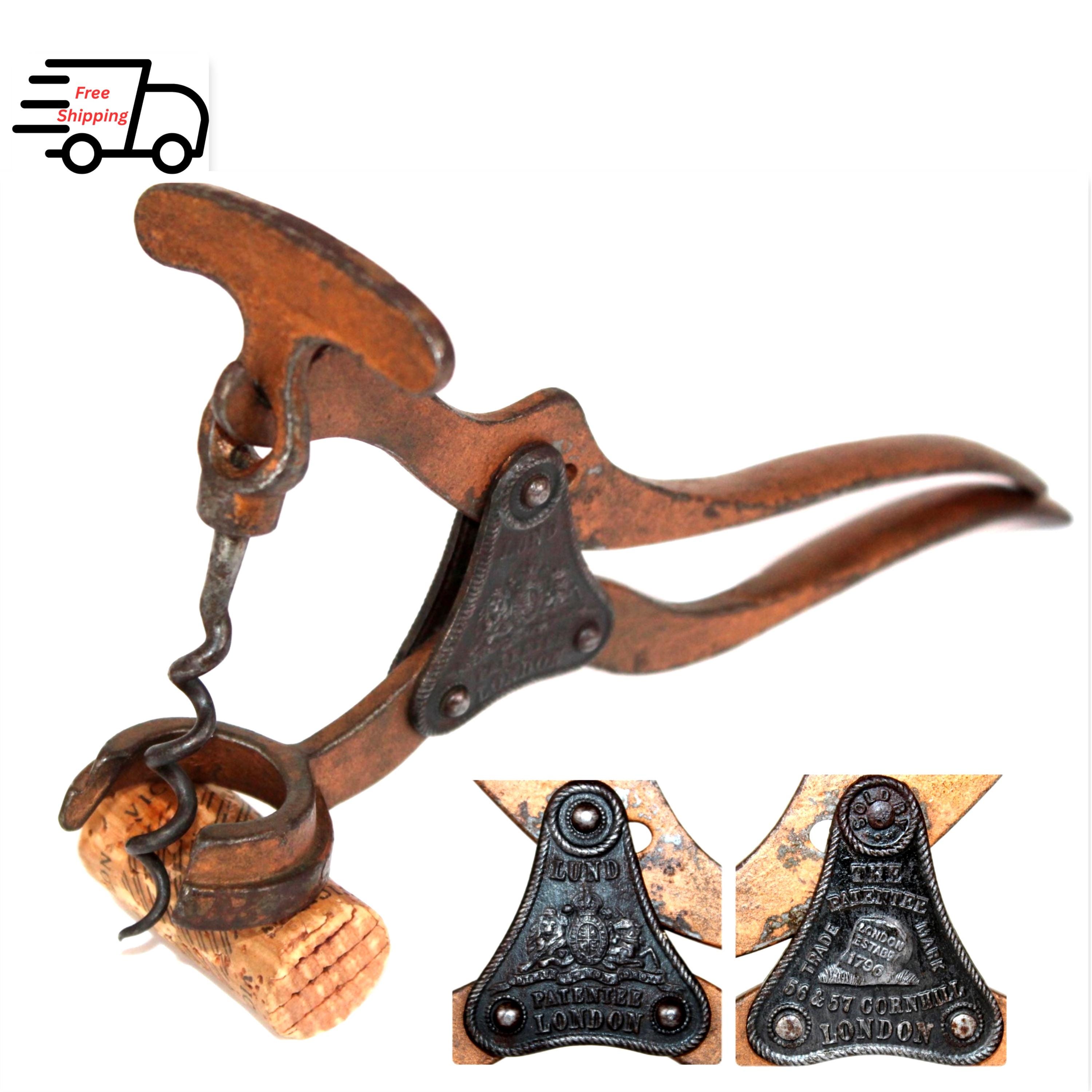 Antique 1855 LONDON LEVER Corkscrew, LUND Single Lever Corkscrew, Wine Bottle Opener