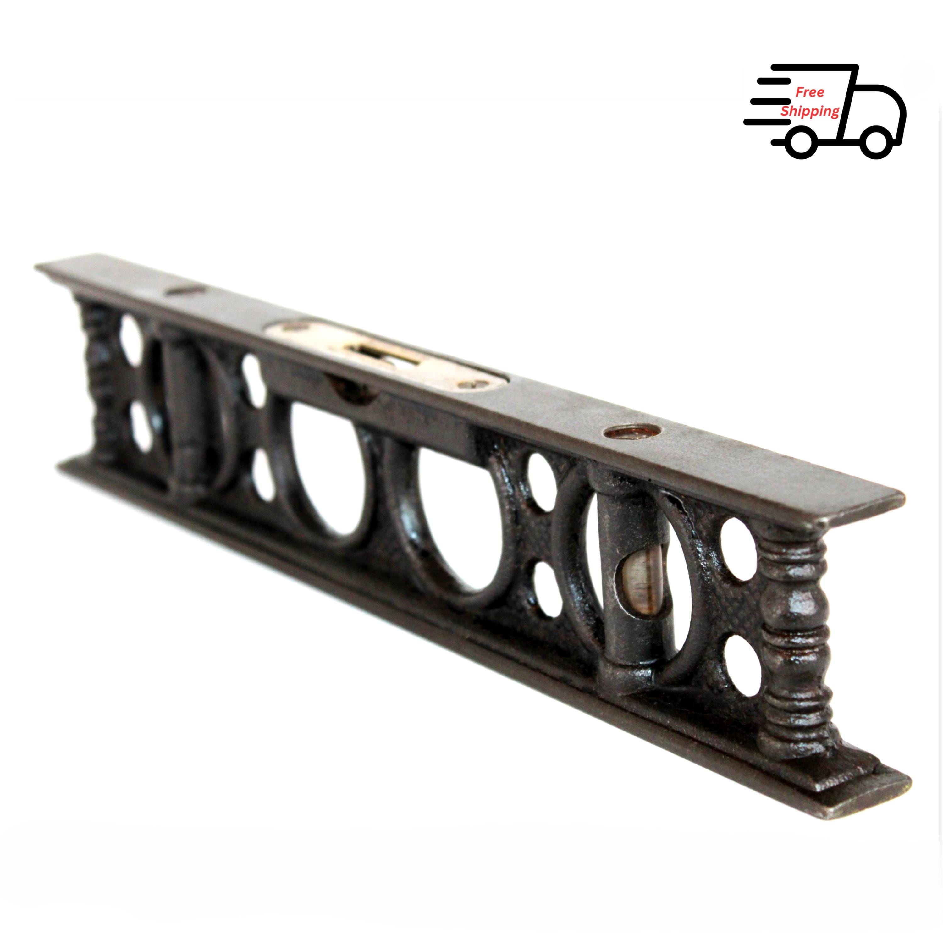 This is a cast iron level manufactured in the late 1800s, it is a 12” long level with three bubble vial viewers. It can check level vertically and horizontally.