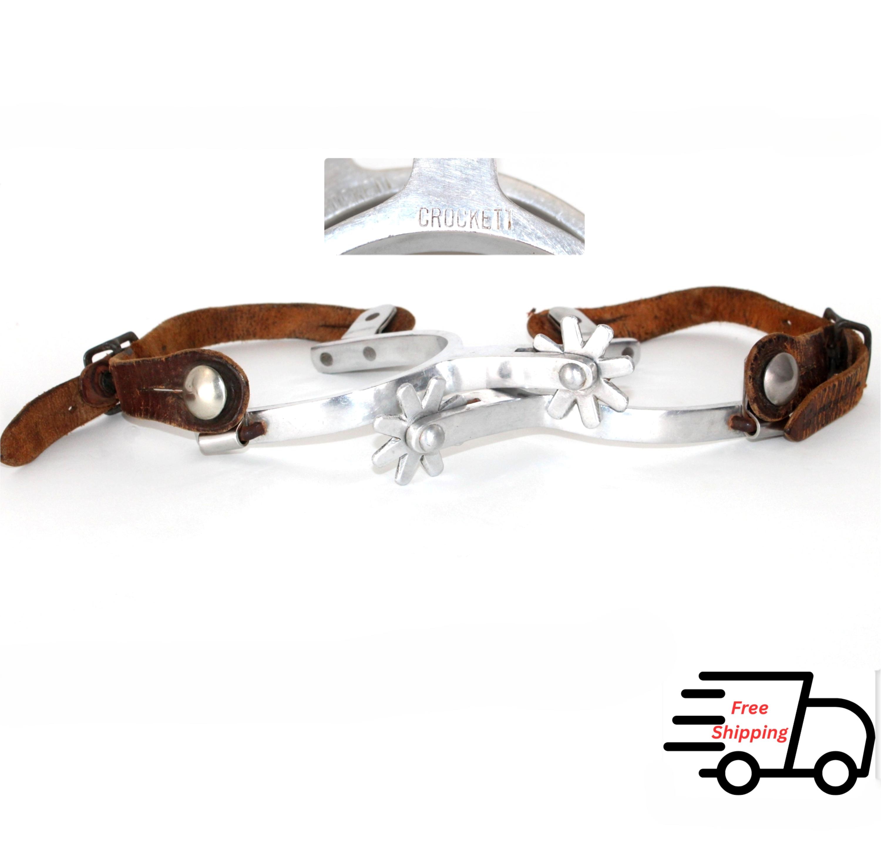 Wonderful Oscar Crockett Western Spurs. These are aluminum spurs with silver-capped strap buttons.