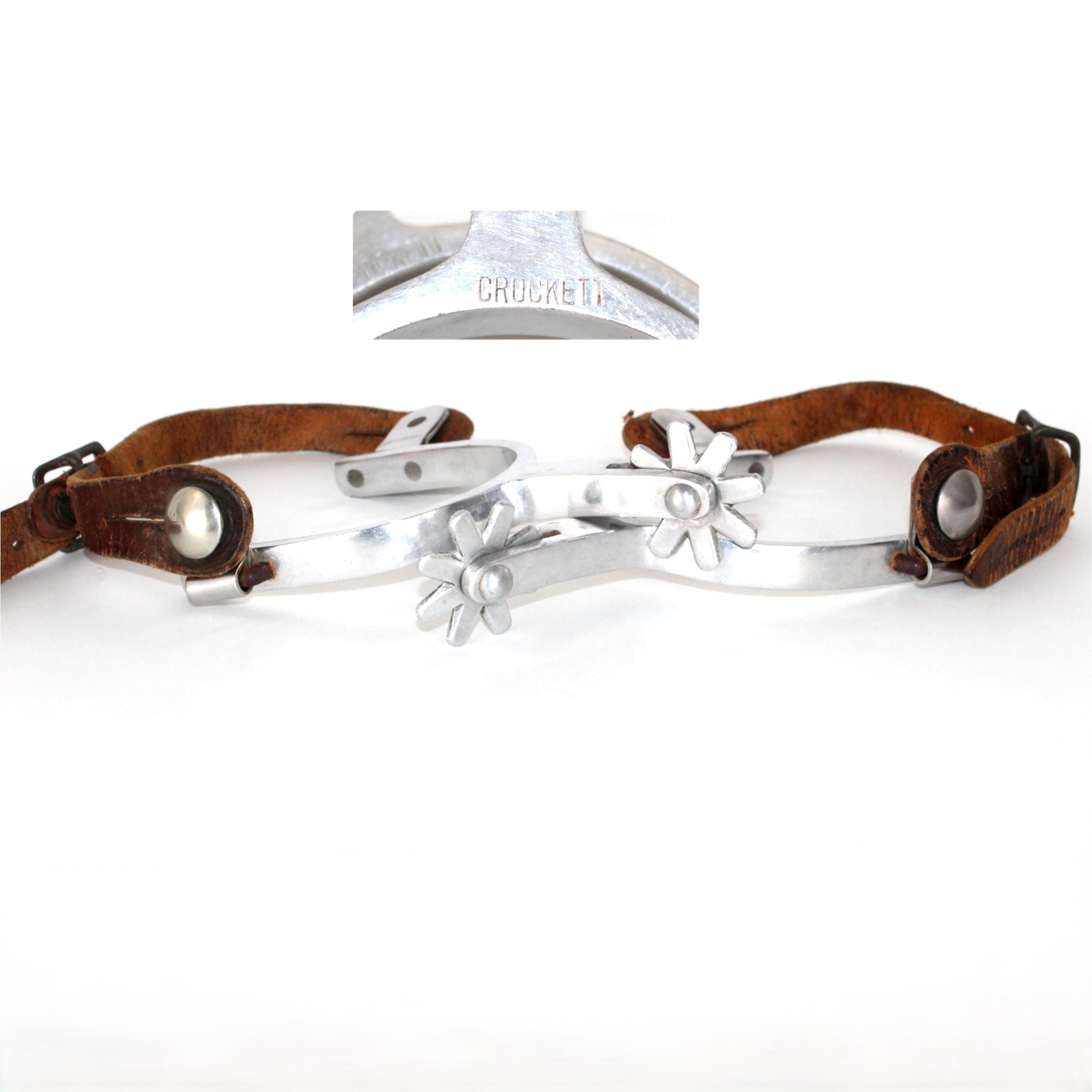 Wonderful Oscar Crockett Western Spurs. These are aluminum spurs with silver-capped strap buttons.