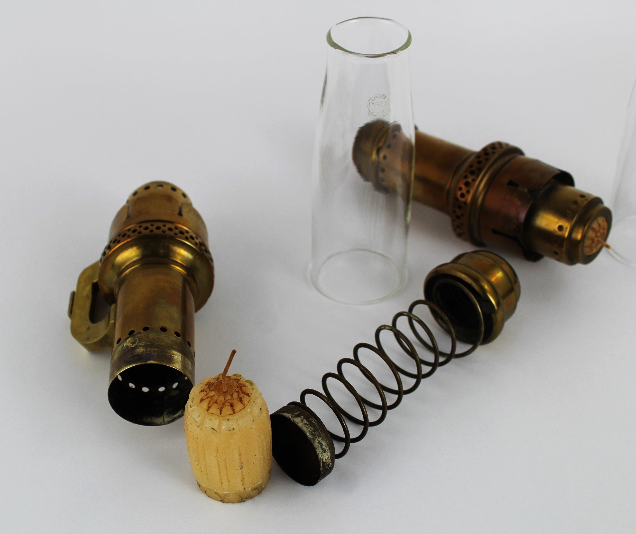 The RPO Candle Lamps were originally patented in 1907 by the Post Office, The Safety Co. of New York made this pair.