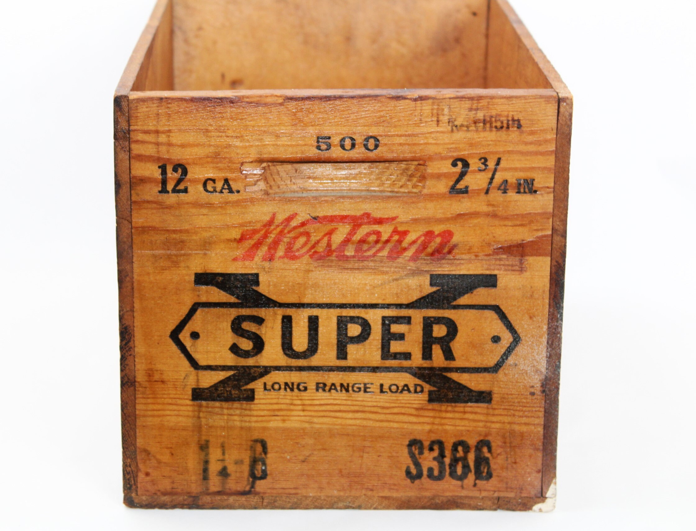 The end panels are stamped Western Super X, All the lettering on the crate is embossed into the wood, very clear and legible.