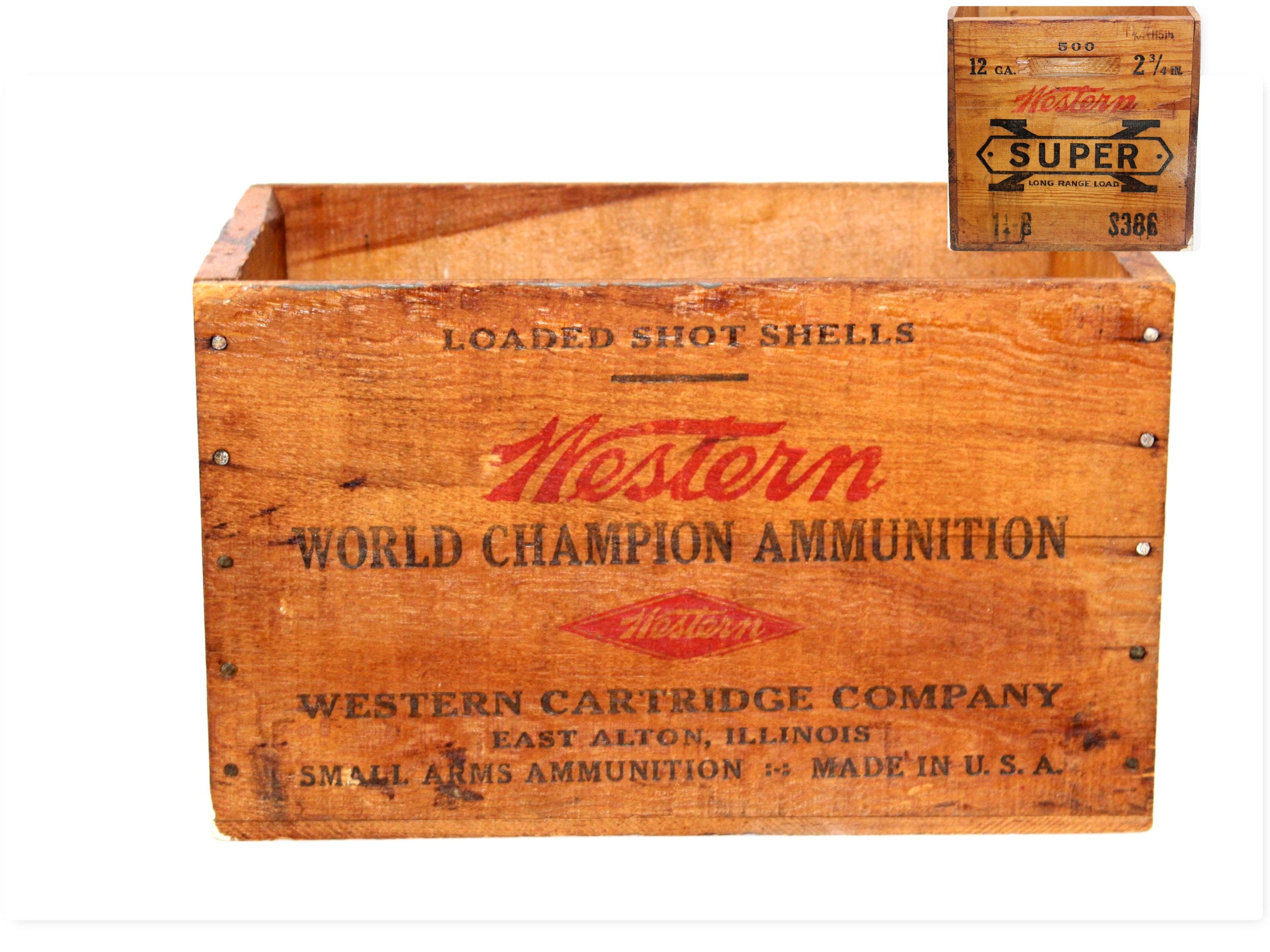 Wonderful Rustic Wooden Shipping Crate. This original Western Cartridge Company, crate held 500, 12 gauge shot shells.