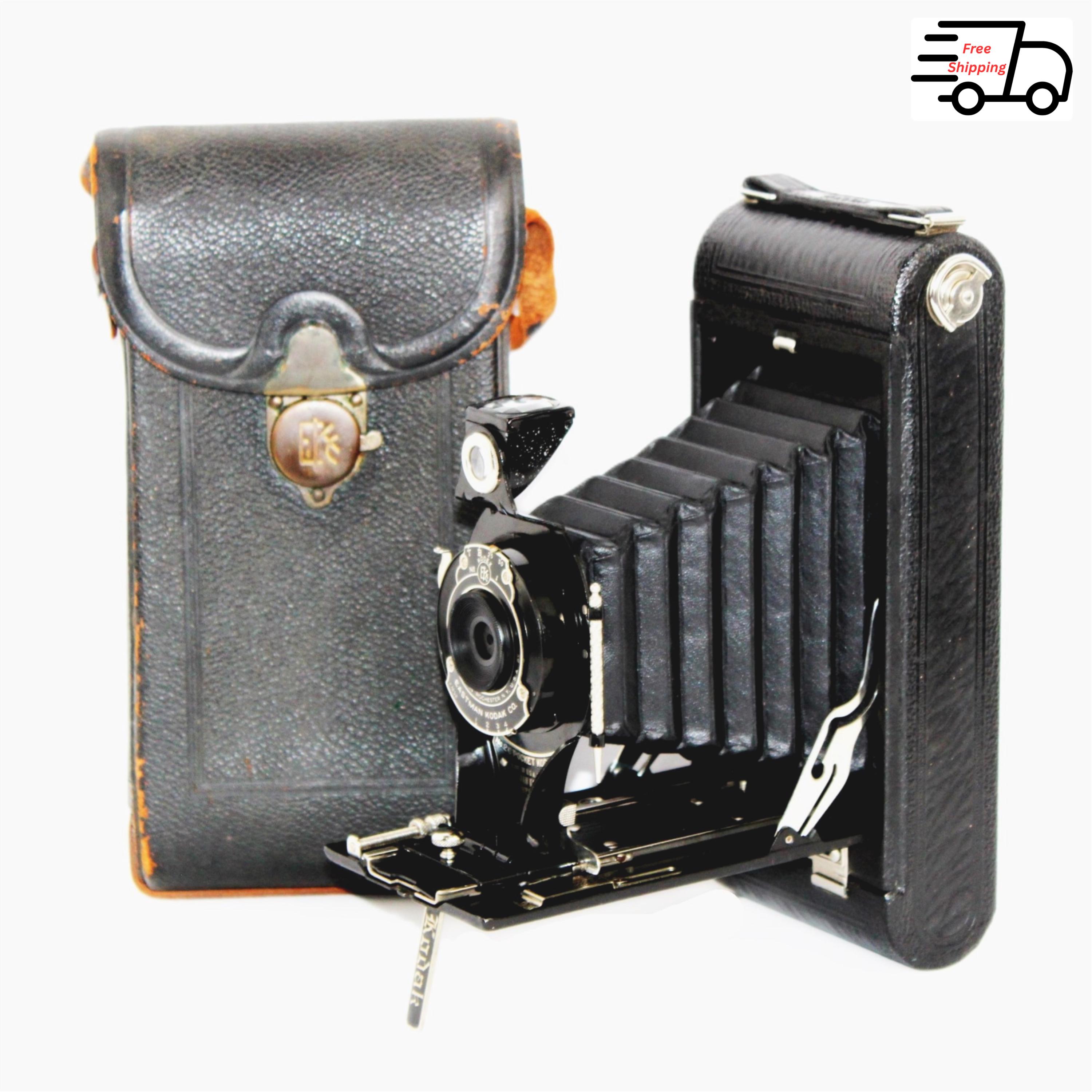 Antique 1920s Kodak Camera, No. 2C Pocket Folding Camera with Carry Case.