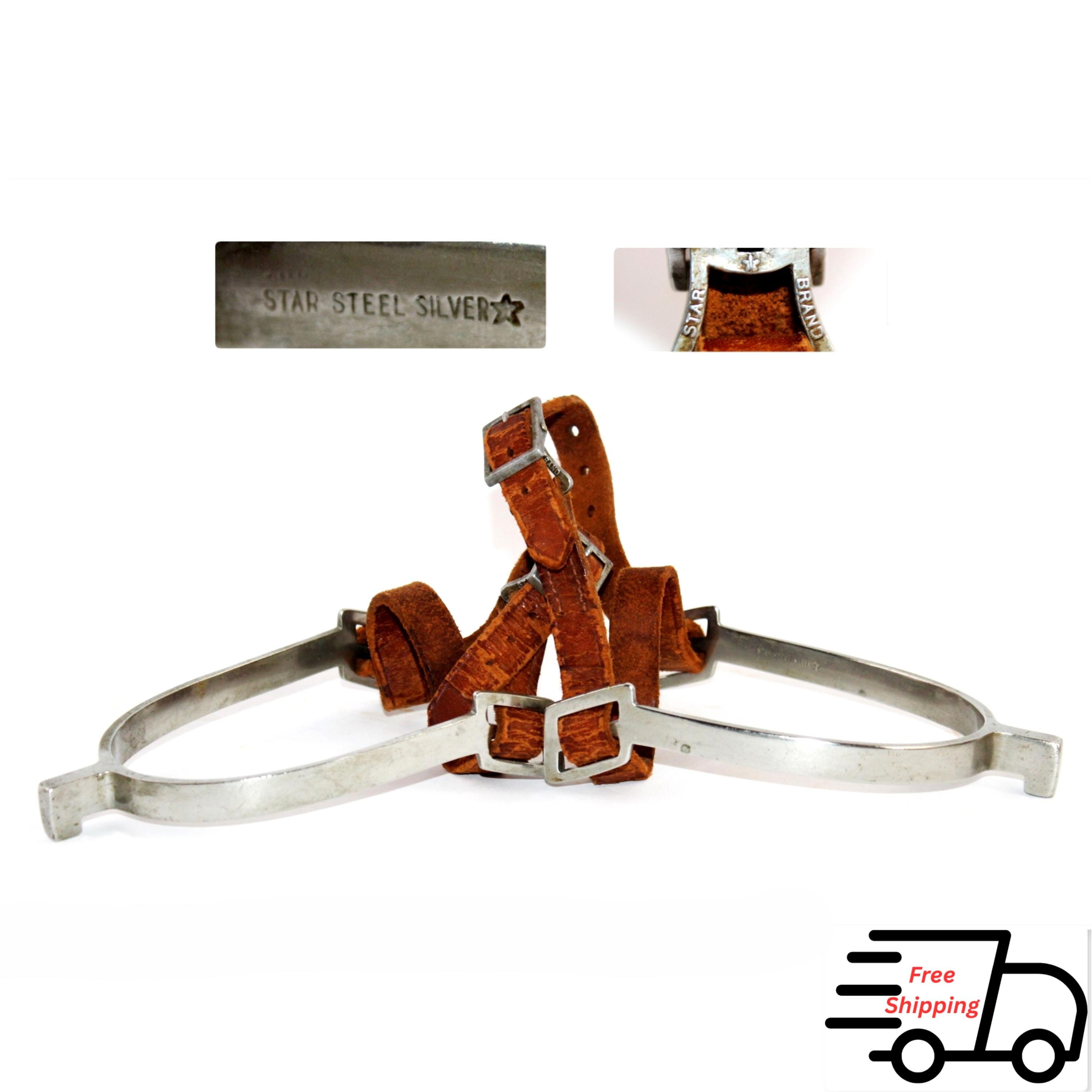 The spurs are marked (Star Steel Silver with the Star logo) on the inside of the heel-band. The straps are marked on the buckles Star Brand with the Star Logo.
