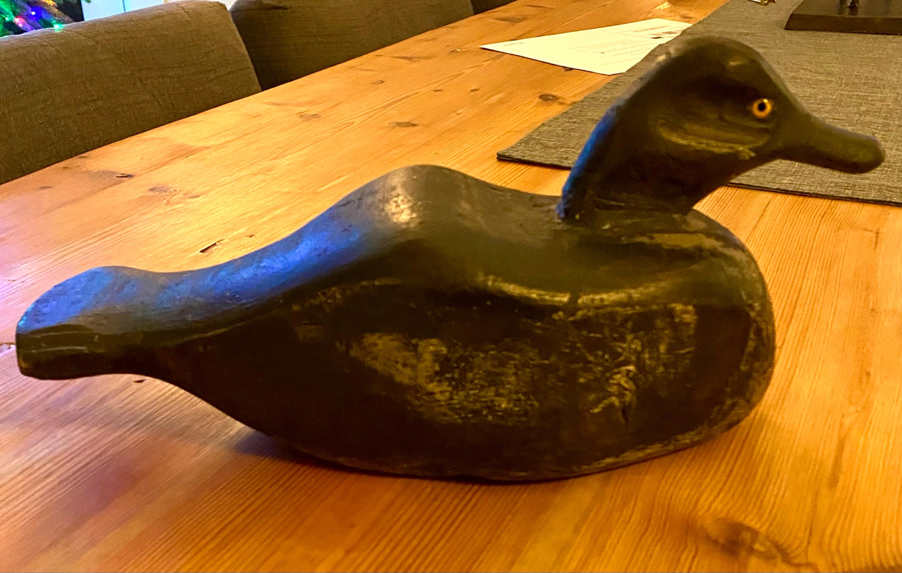 Wonderful hand carved decoy with glass eyes, the decoy is all original and the finish has faded in areas.