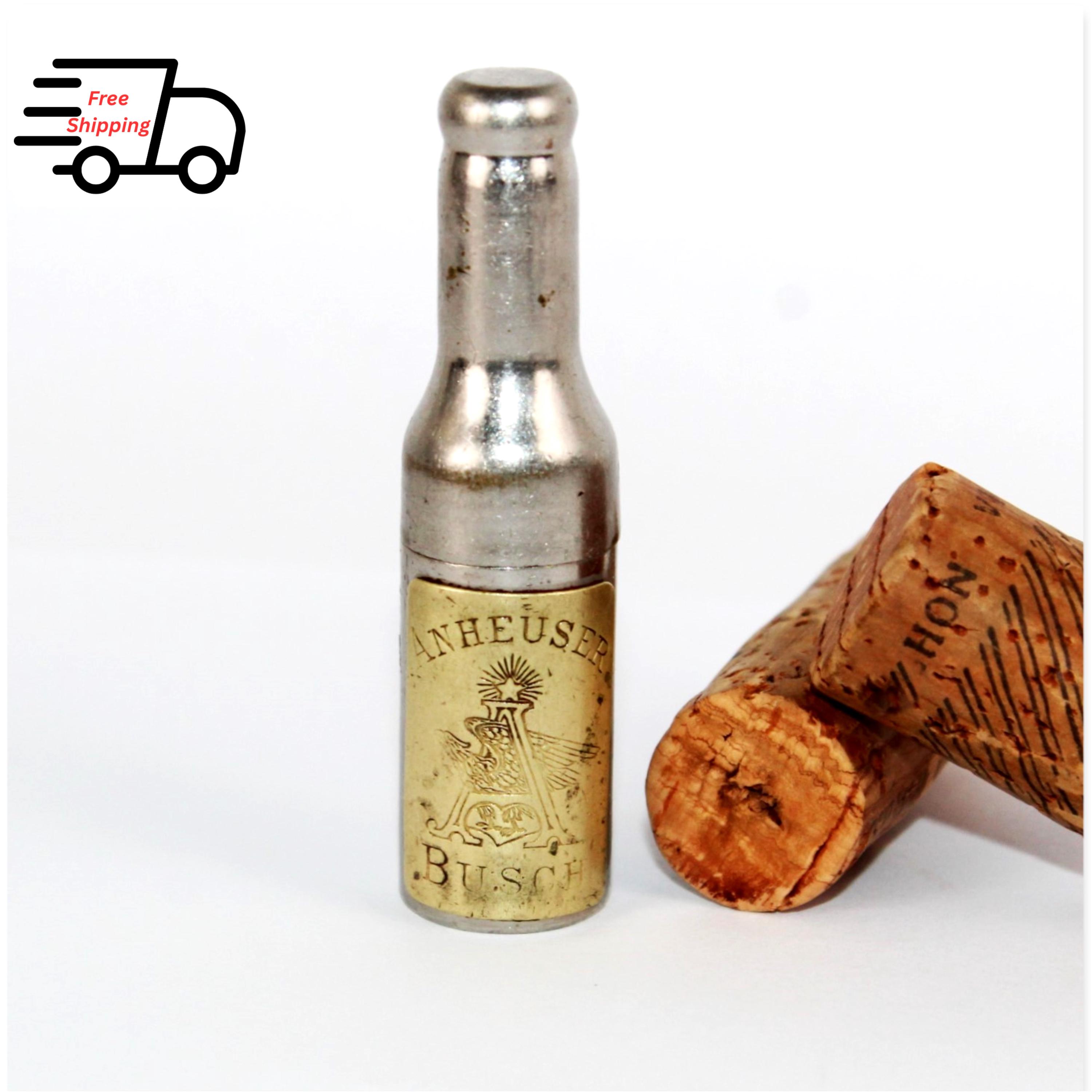 Antique 1890s, Beer Advertising Bottle for Anheuser Busch with Hidden Corkscrew, Breweriana