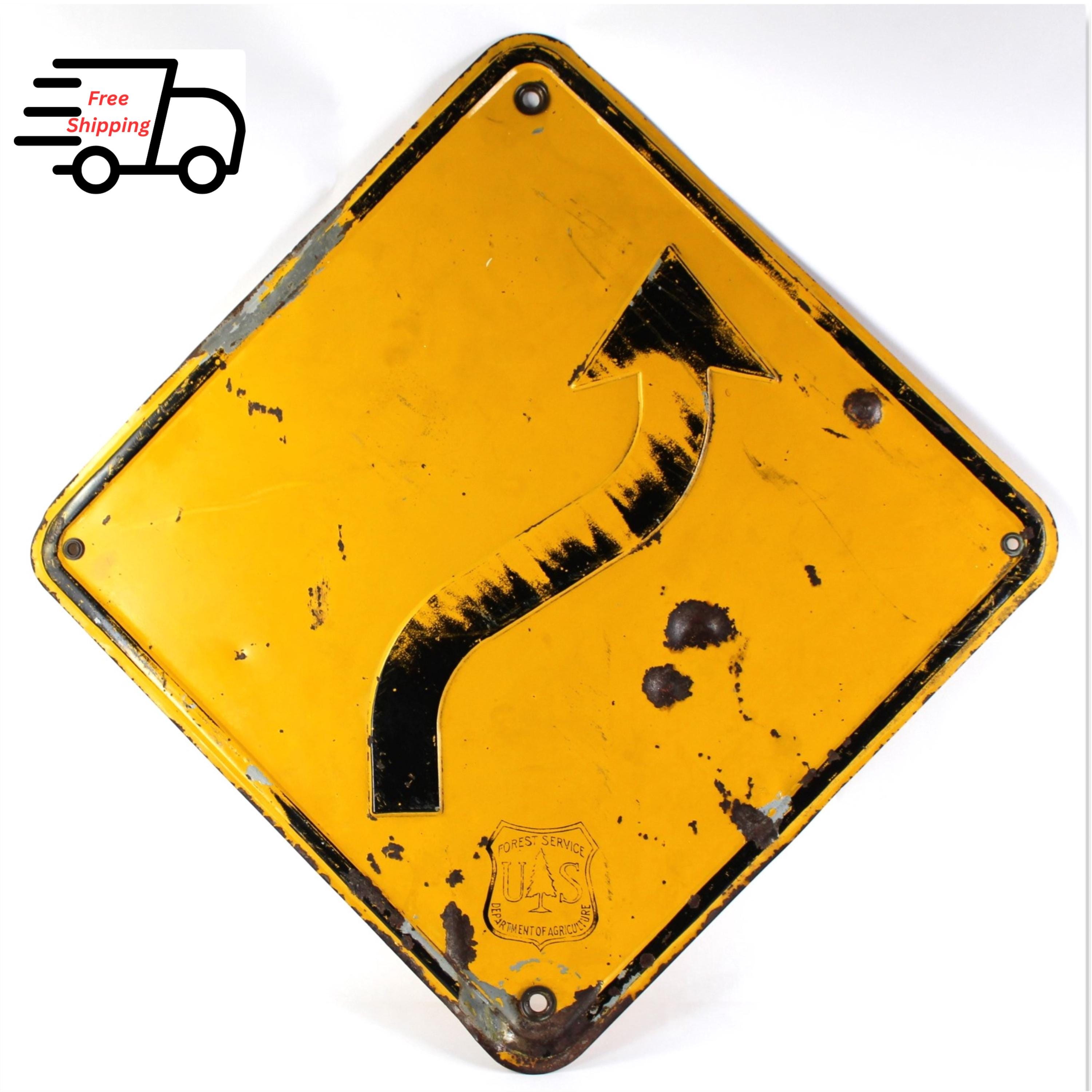 This is a retired US Forest Service Road Sign from the Black Hills of South Dakota. The sign is a curvy road warning sign with the US Forest Service Department of Agriculture LOGO at the bottom.