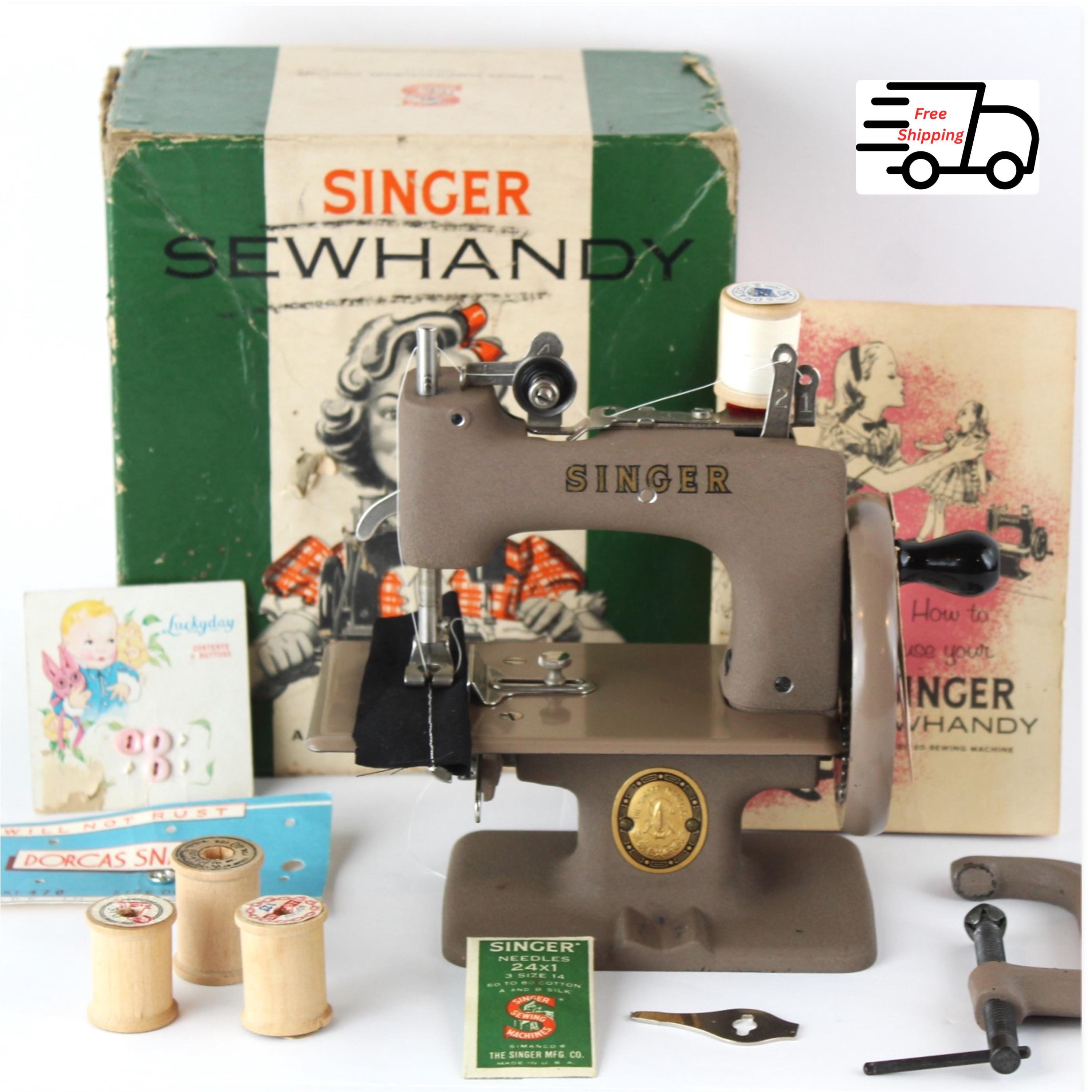 This is a beautiful little sewing machine made by Singer. This is a fully Functional Hand Crank Sewing Machine in toy size.