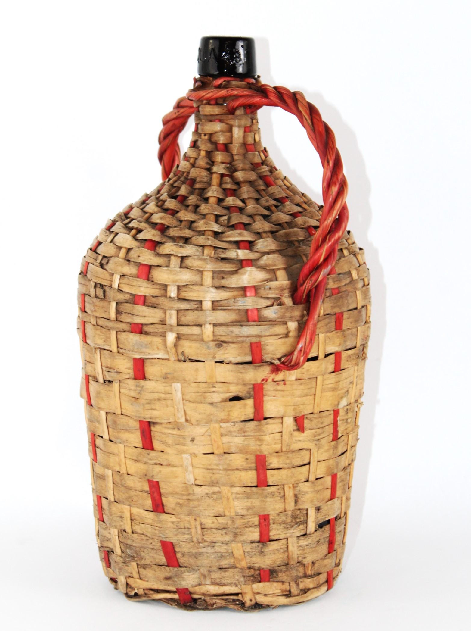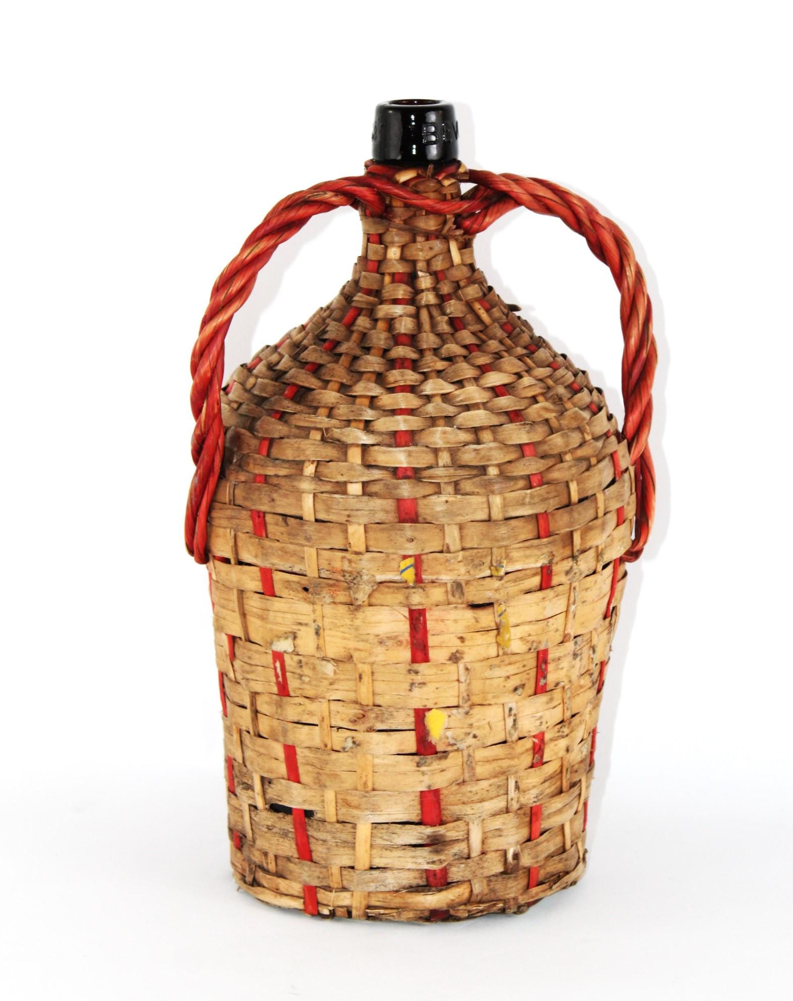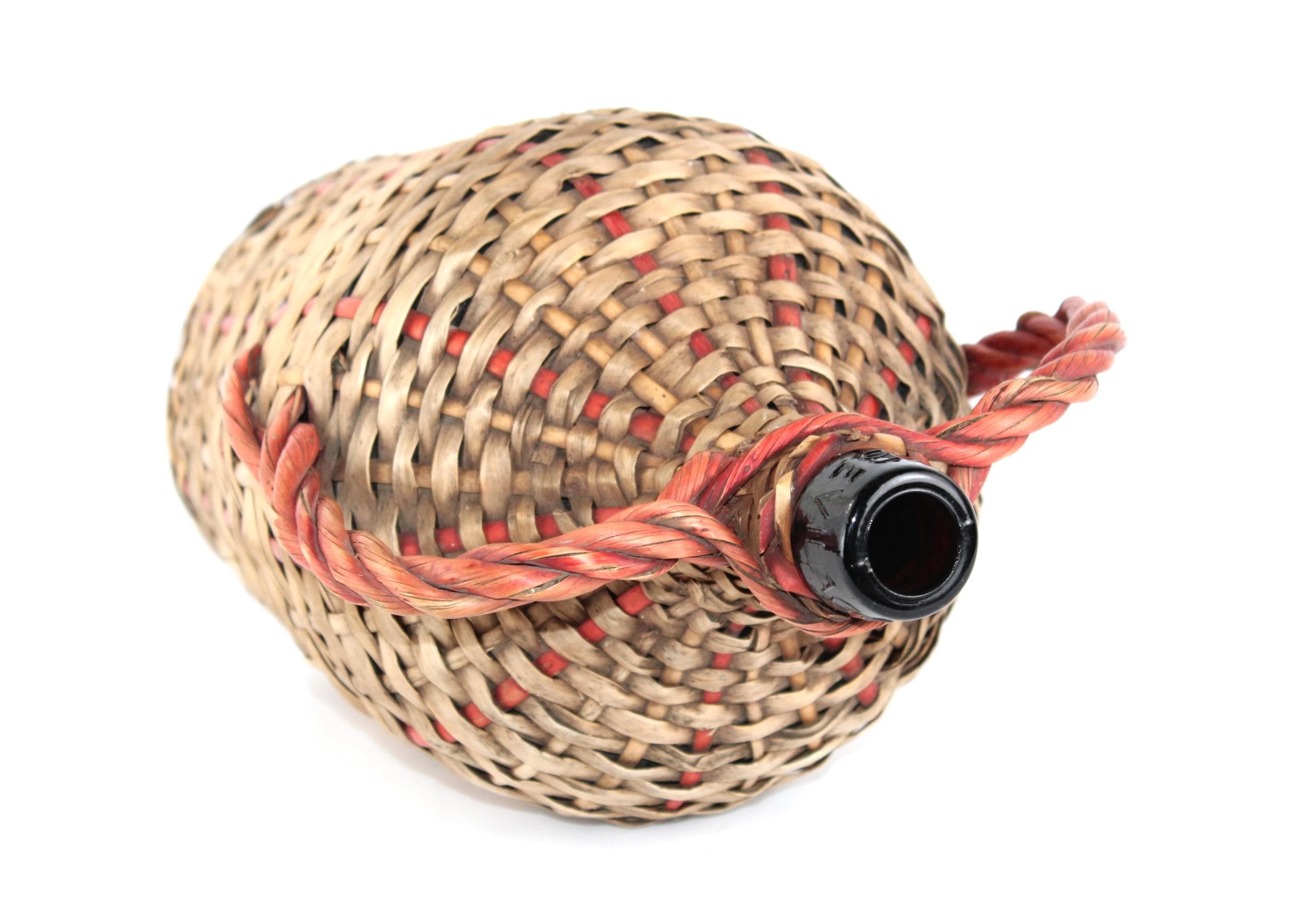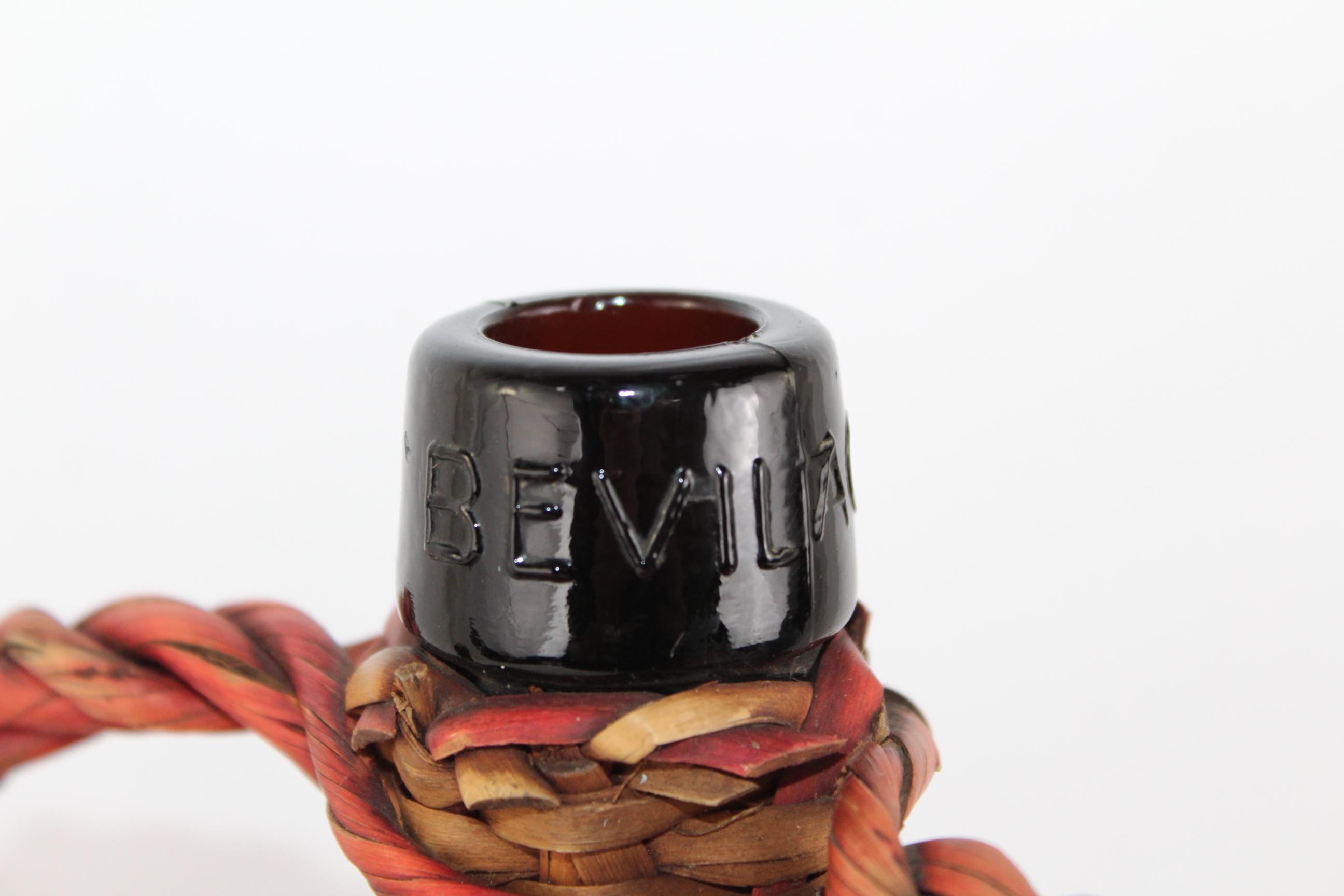 Lovely wicker covered red glass Demijohn, marked on the glass Bevilacqua 48. Bevilacqua is Italian for drink water, which is funny considering this would have been filled with wine.