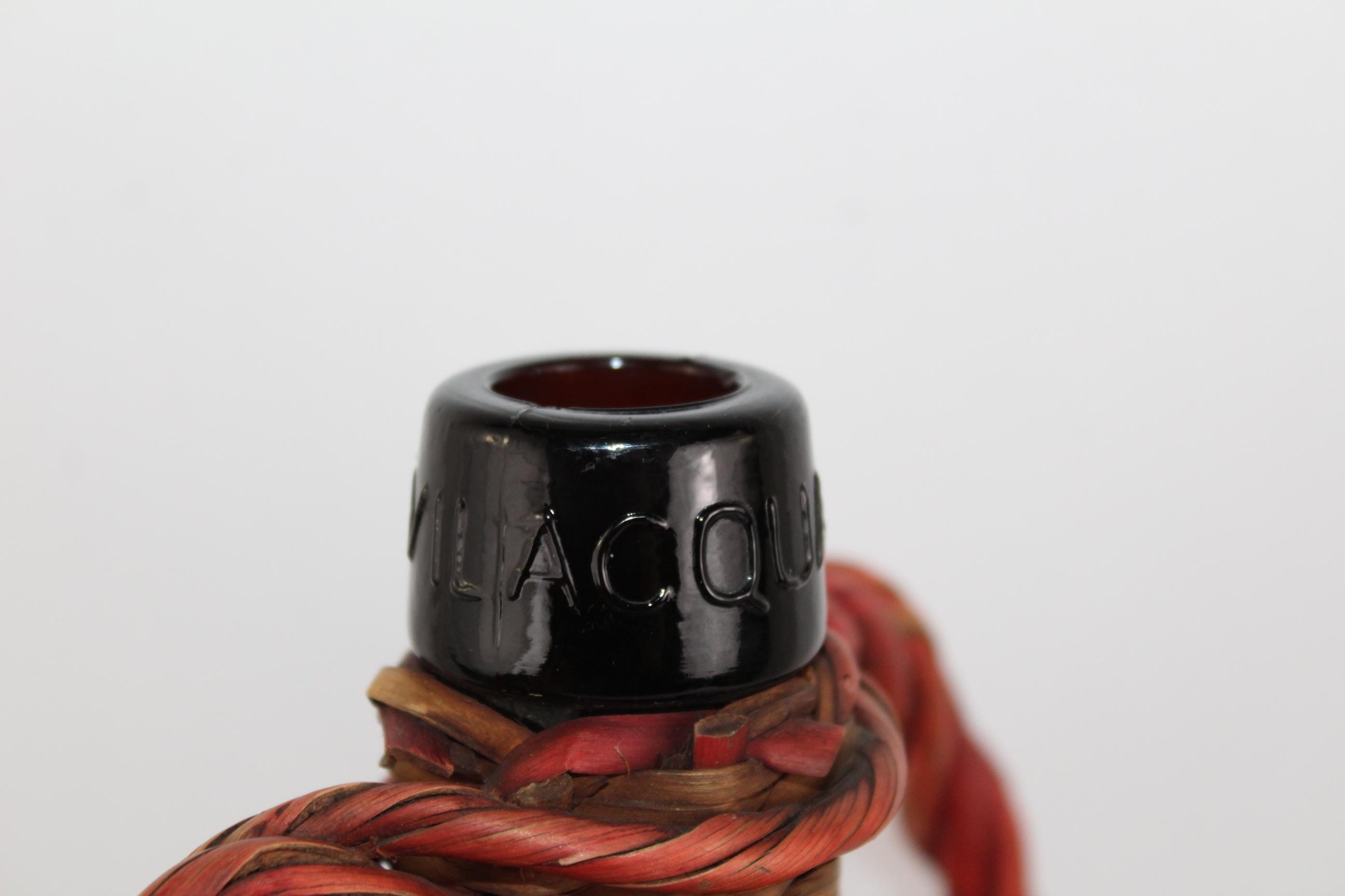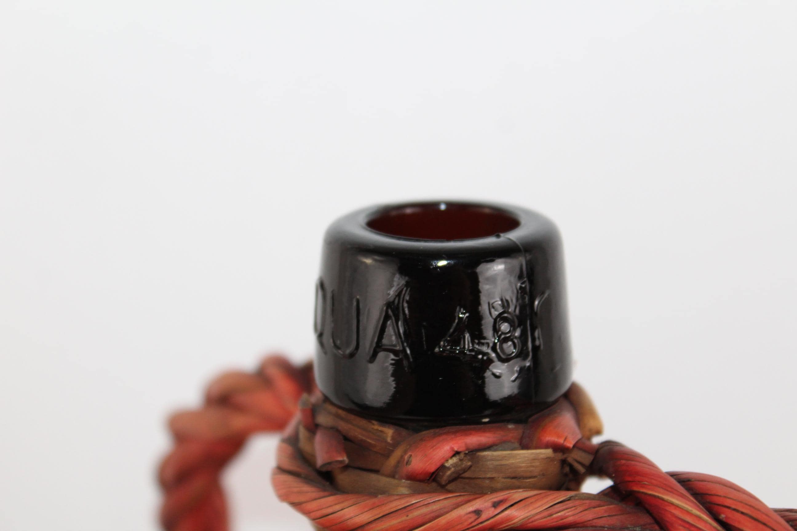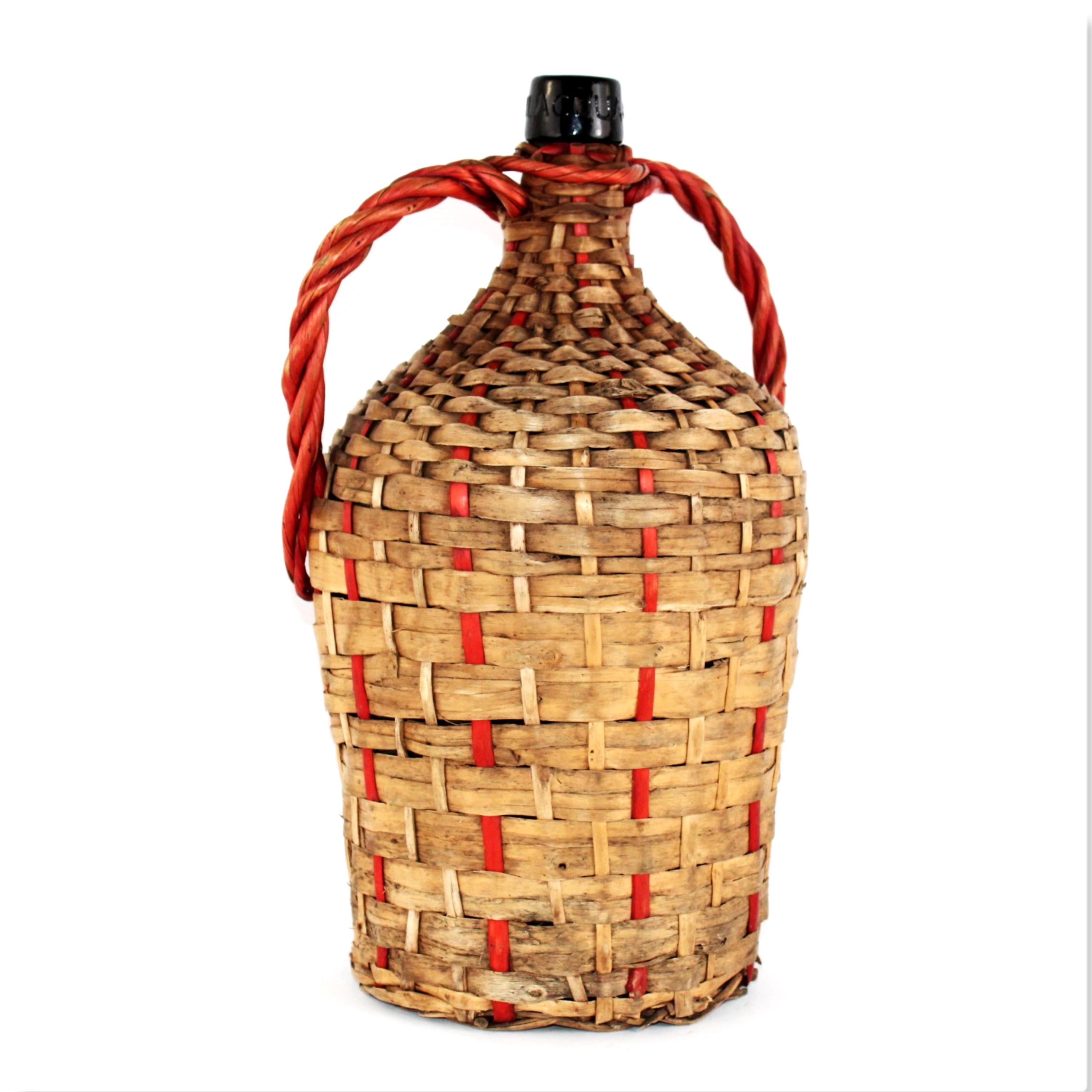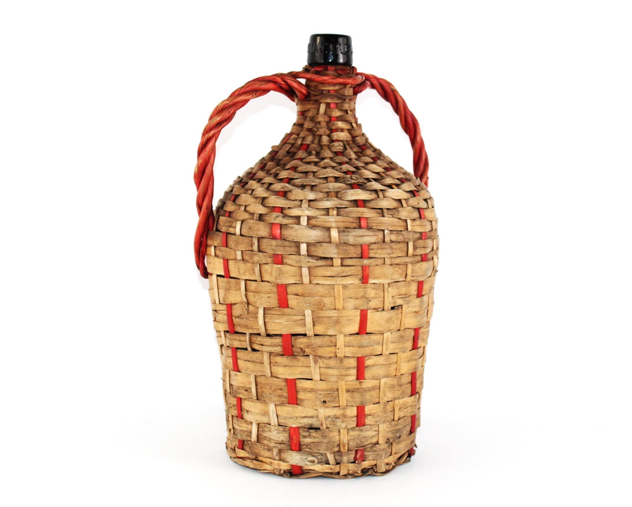 Lovely wicker covered red glass Demijohn, marked on the glass Bevilacqua 48. Bevilacqua is Italian for drink water, which is funny considering this would have been filled with wine.