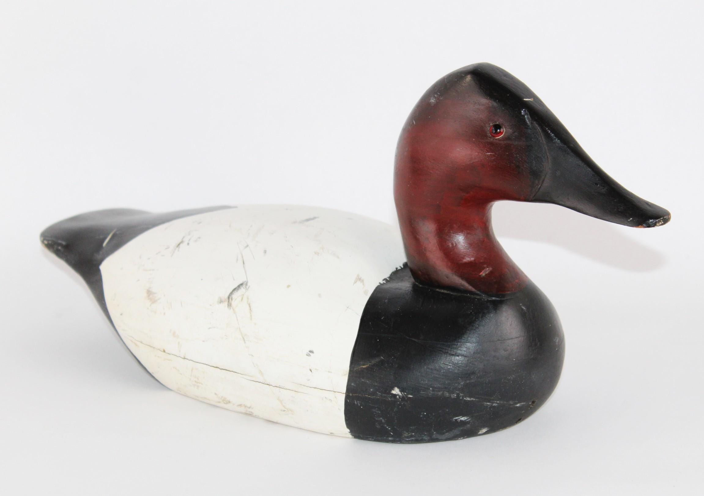 Hand Carved Wooden Duck Decoy, Canvas Back Drake Duck Decoy