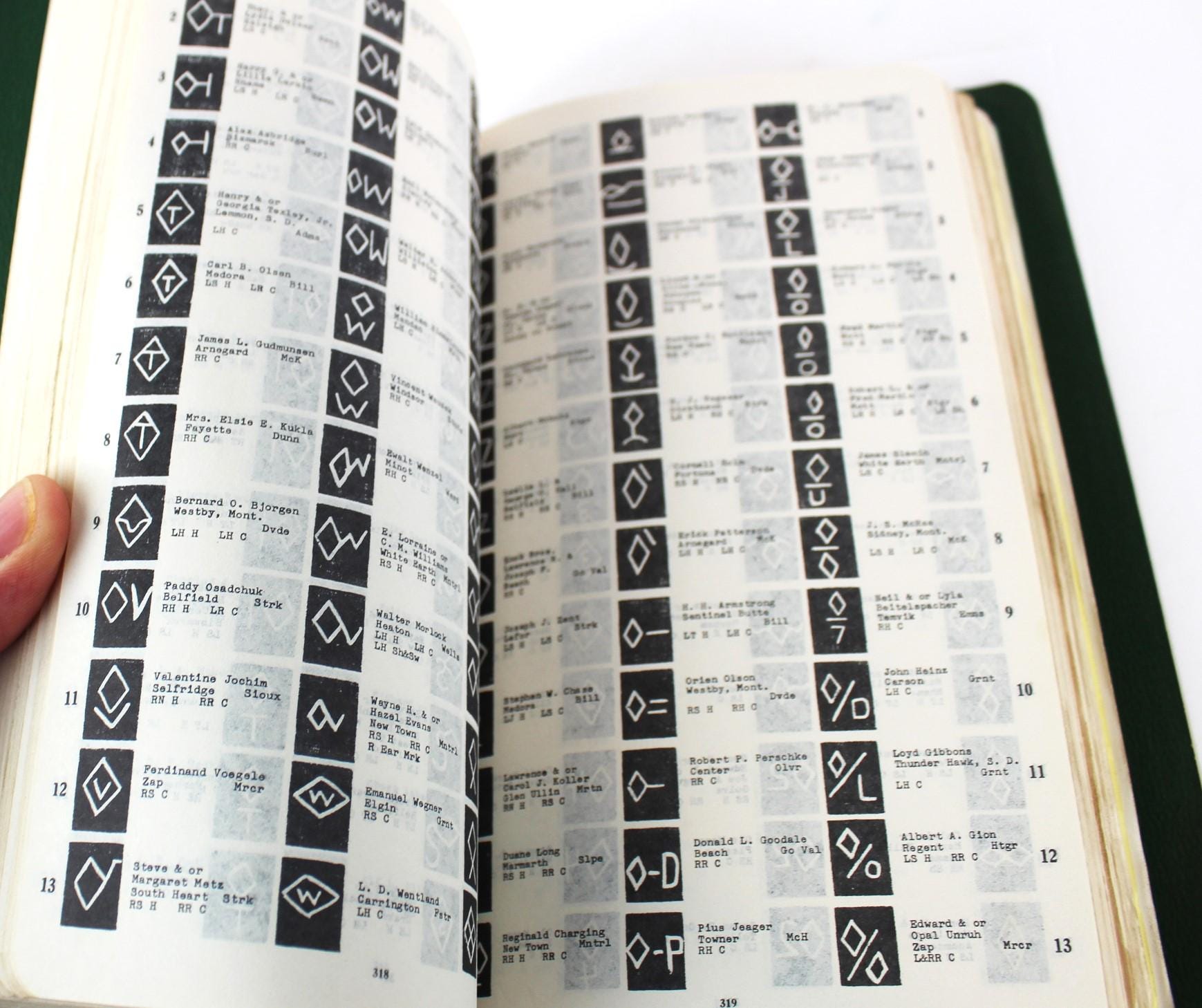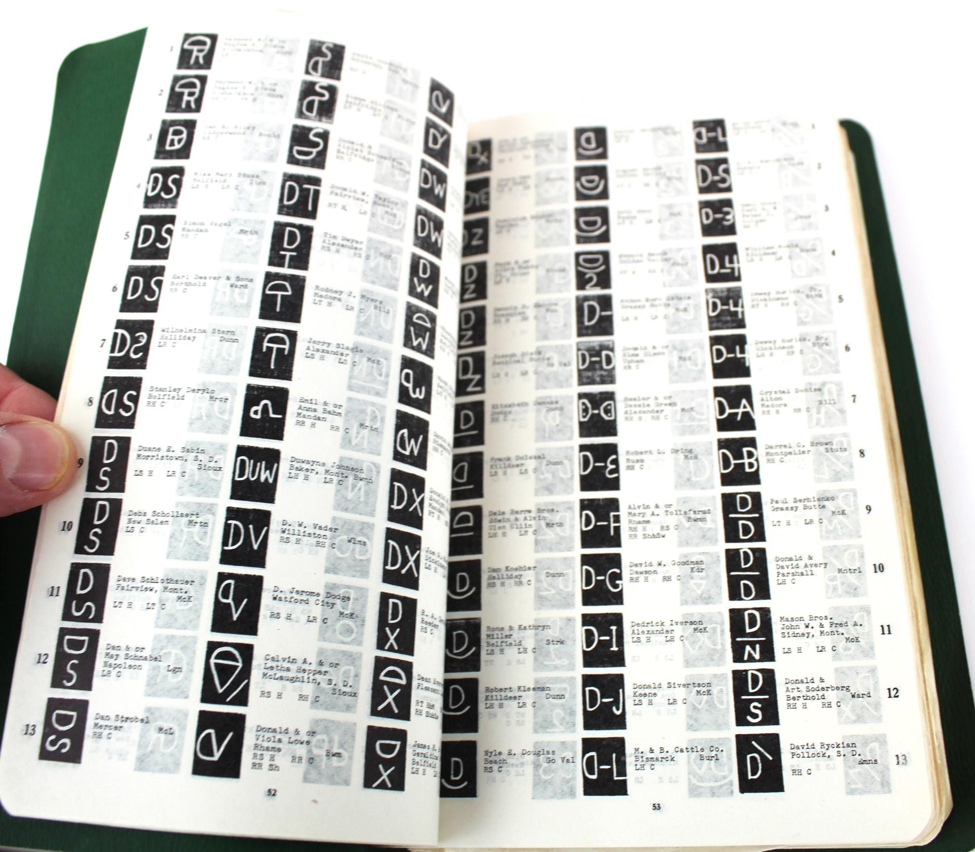 Wonderful and rare find, this 1956 North Dakota Brand Record Book, Livestock Brand Registry, with all Supplement: The 1956 book would have a total of 8 supplements added.