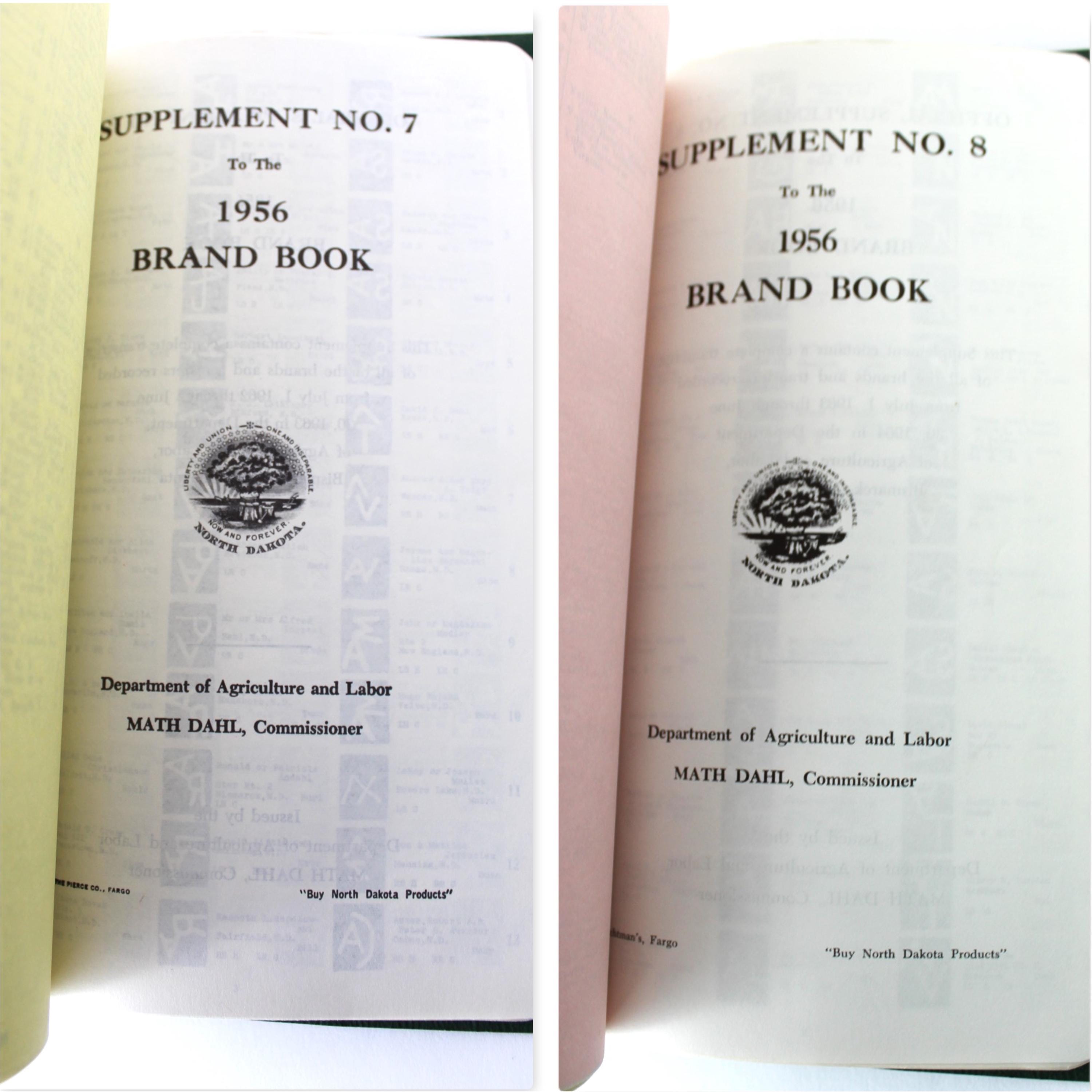 1956 North Dakota Brand Record Book and Supplements