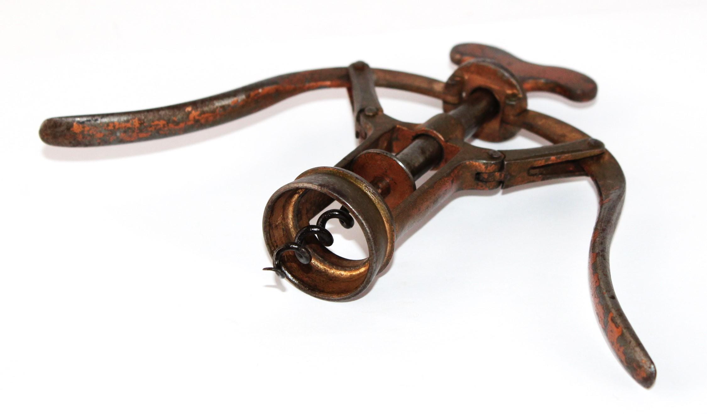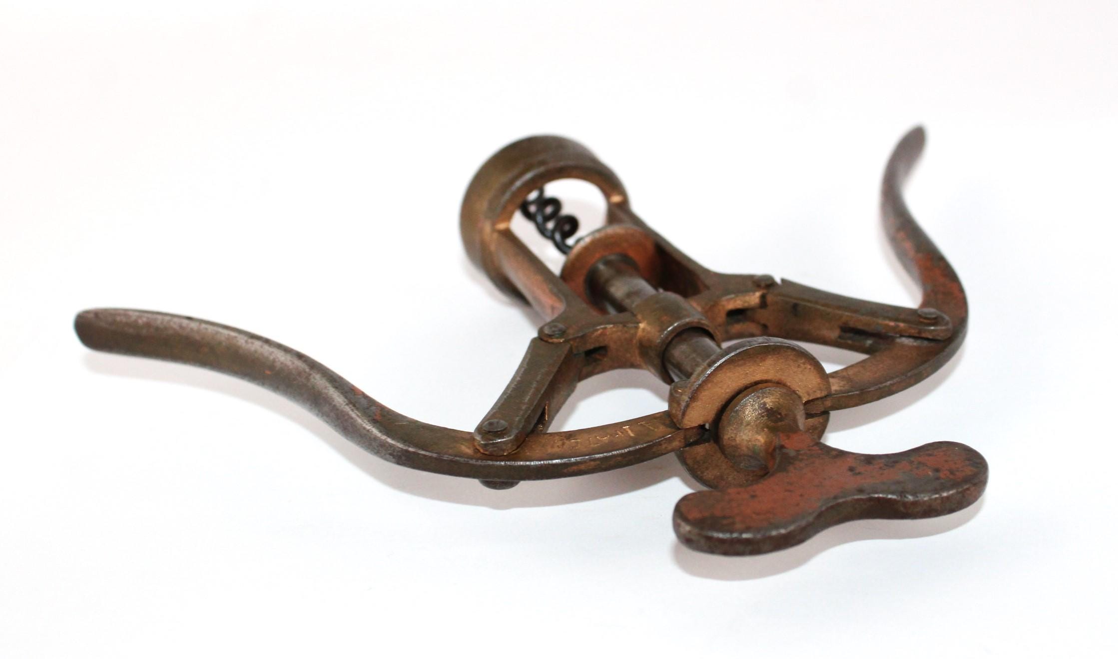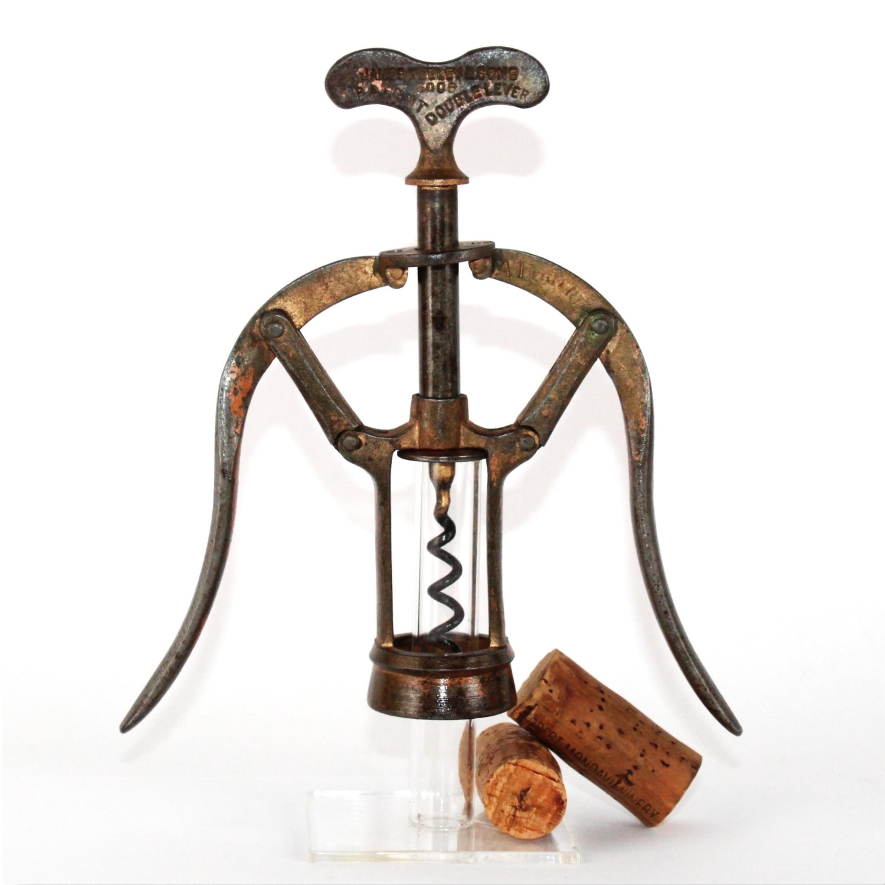 This will make the most amazing conversation piece at your wine bar as you explain it is nearly 130 years old and made in England. It is one of the first designs of a double lever (two handle design) corkscrew and is in full working condition.