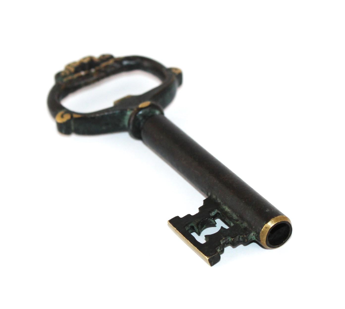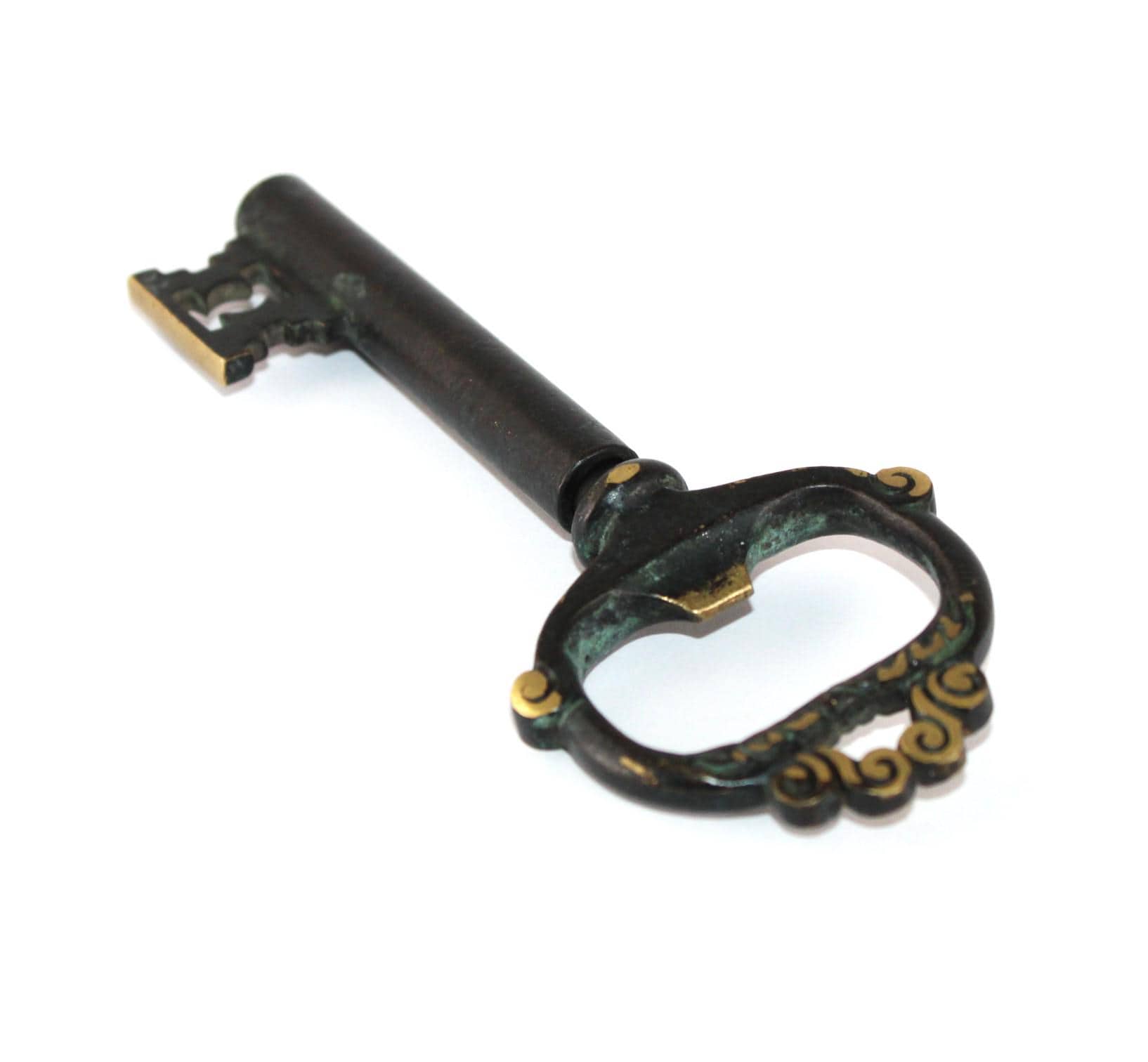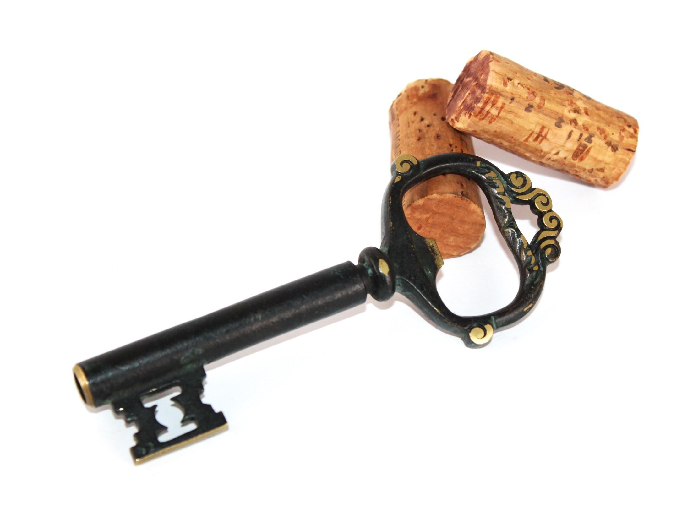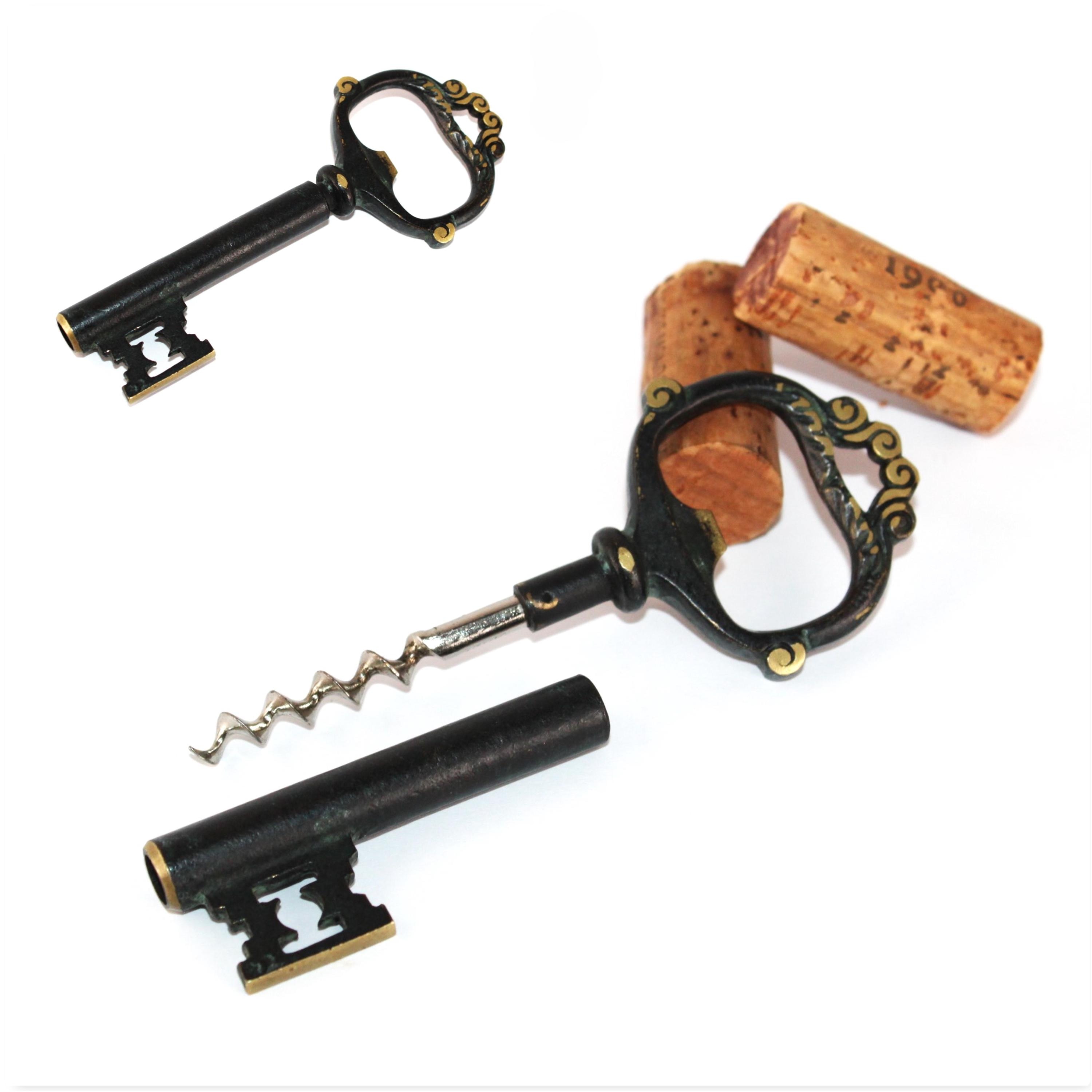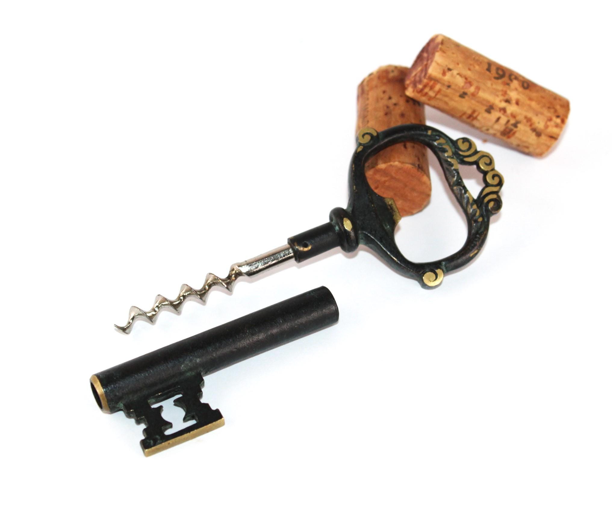 Wonderful corkscrew made in Italy. The key pulls apart to reveal a hidden corkscrew; the handle of the key is a bottle opener.