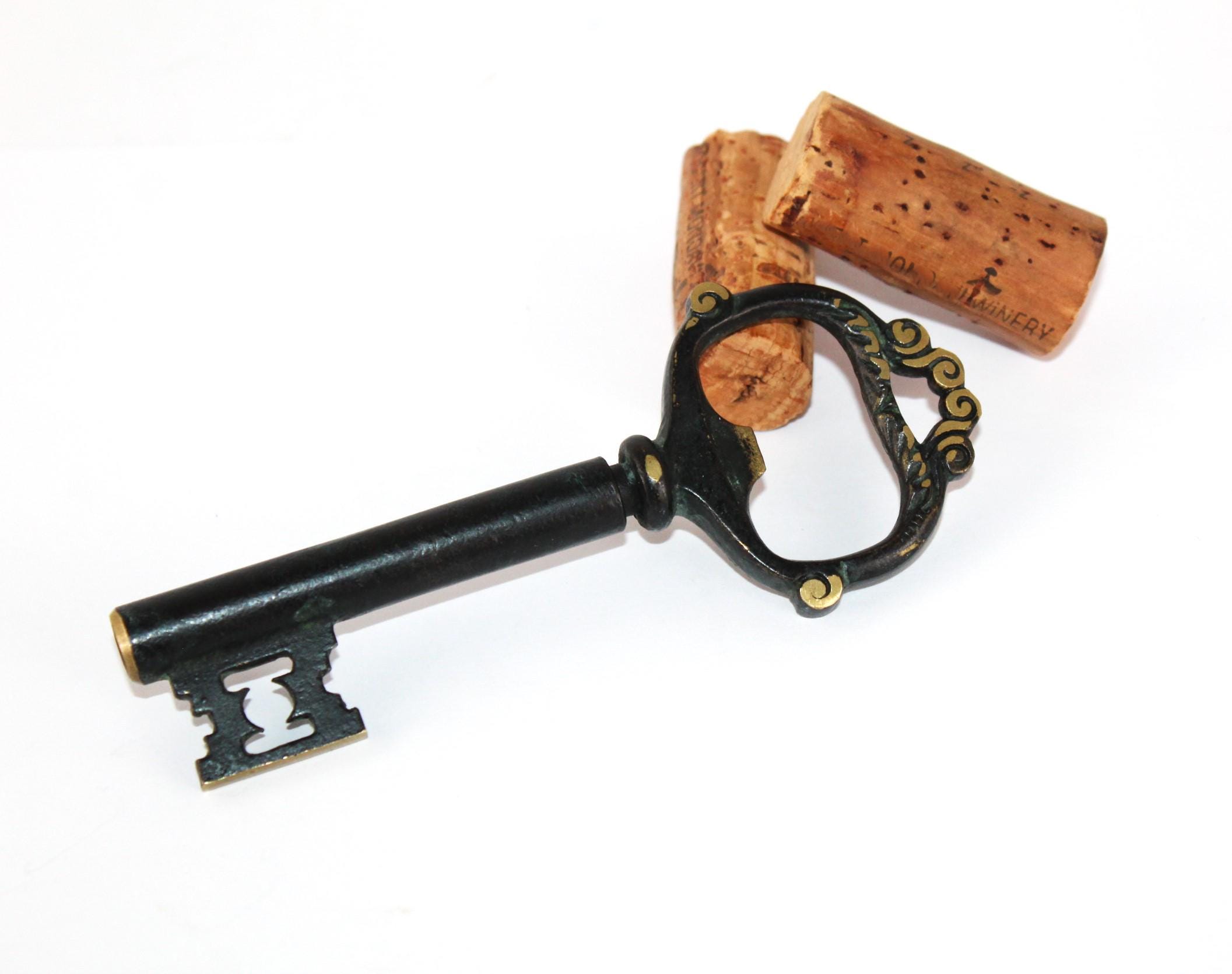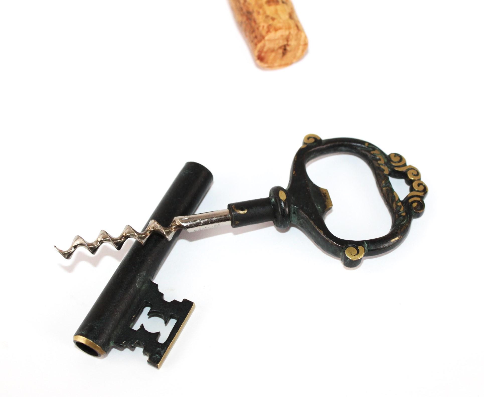 Vintage Italian Brass Key Corkscrew, Wine Bottle Opener