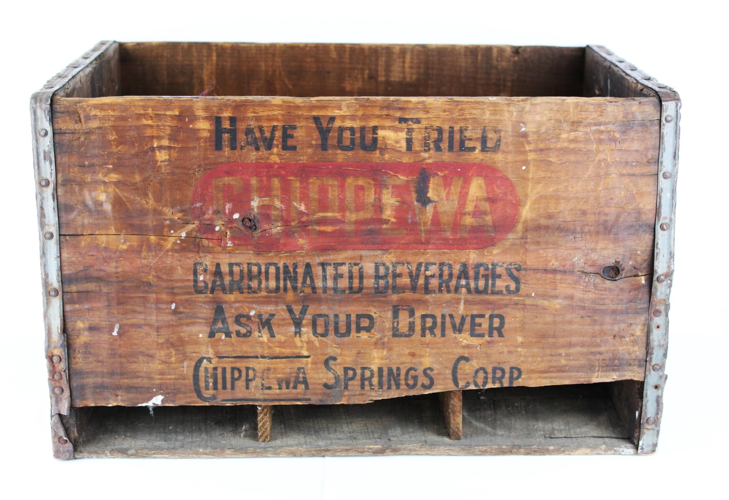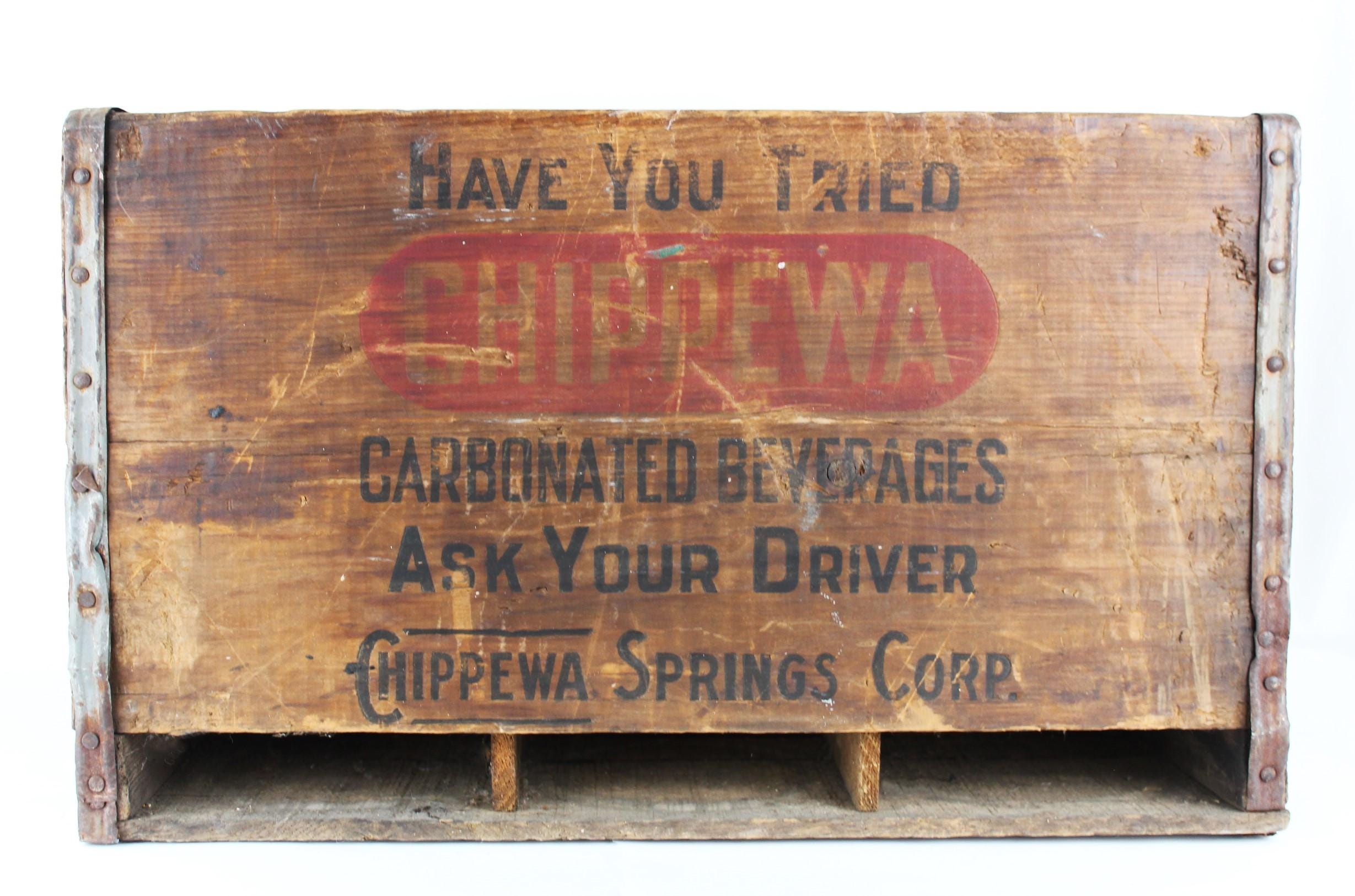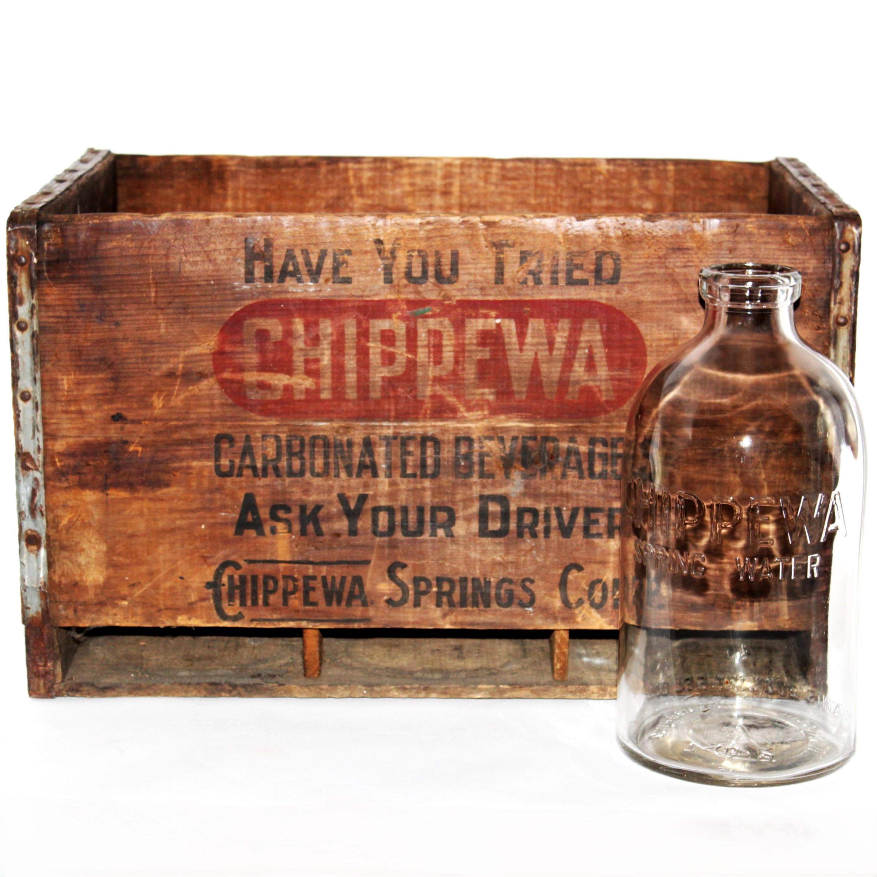 Chippewa Springs Water, Wooden Shipping Crate with Bottle.