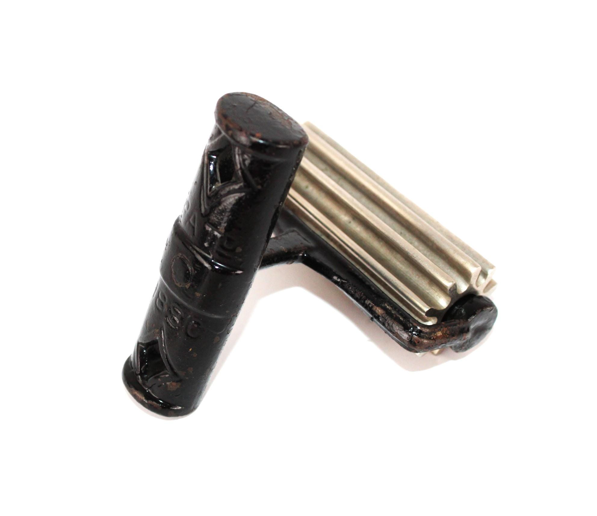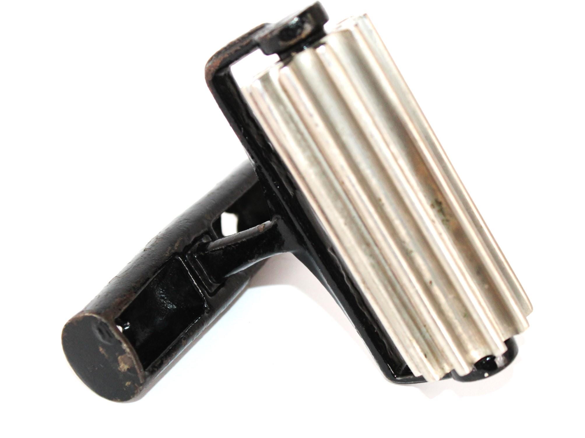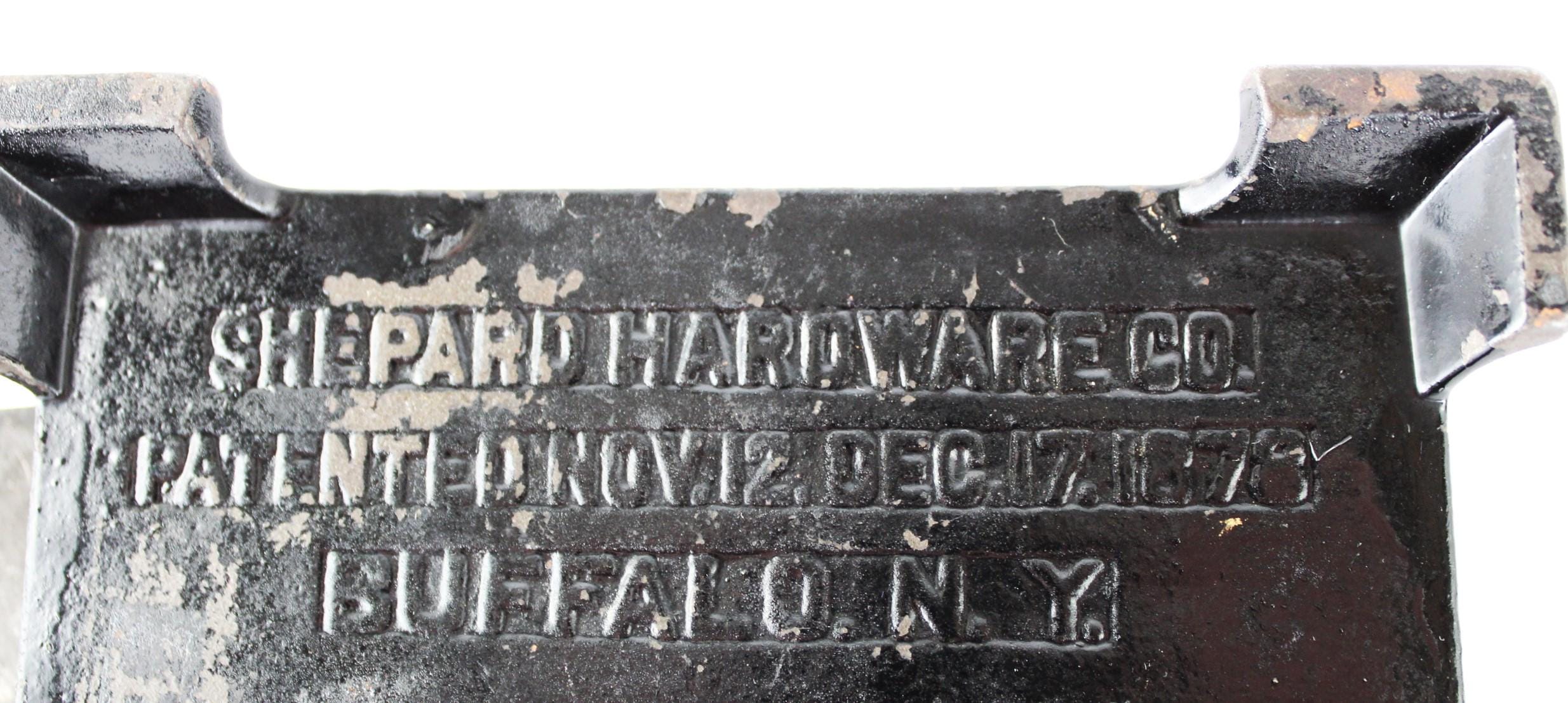 Wonderful cast iron Fluting Iron made by Shepard Hardware of Buffalo NY. Marked on the bottom of the base (Pat’D Nov 12, Dec 17, 1879, and the handle on roller is marked (PatD1880).