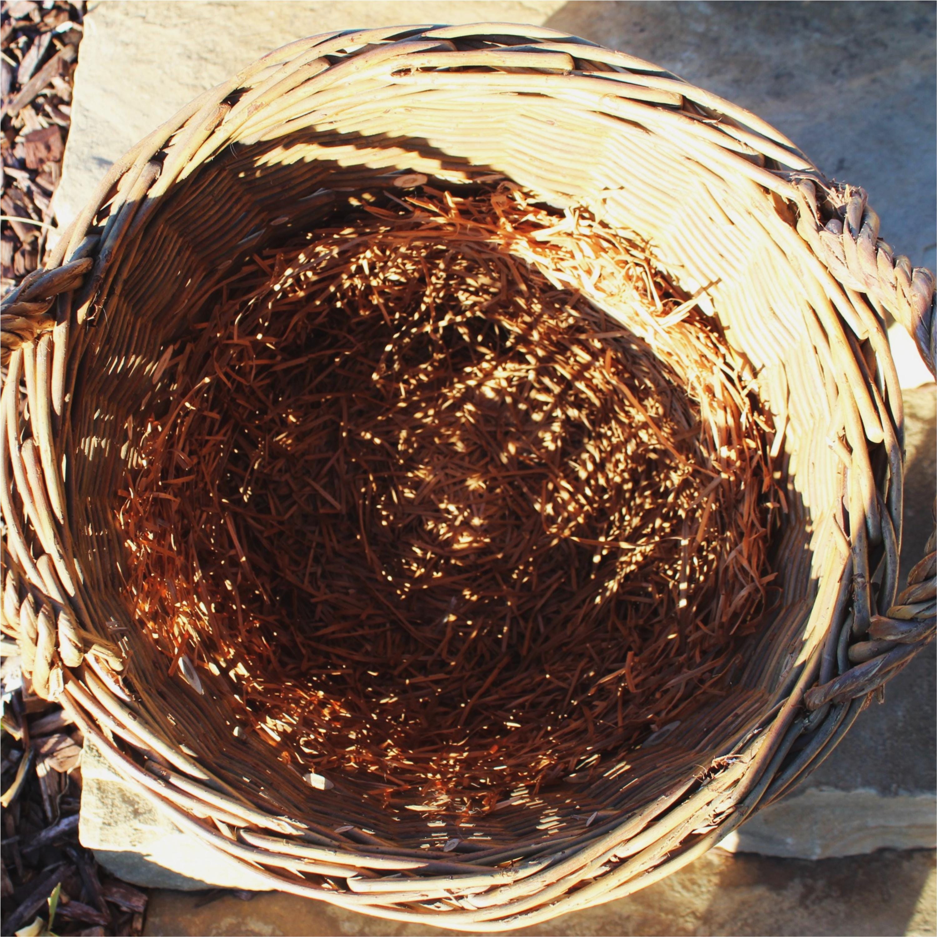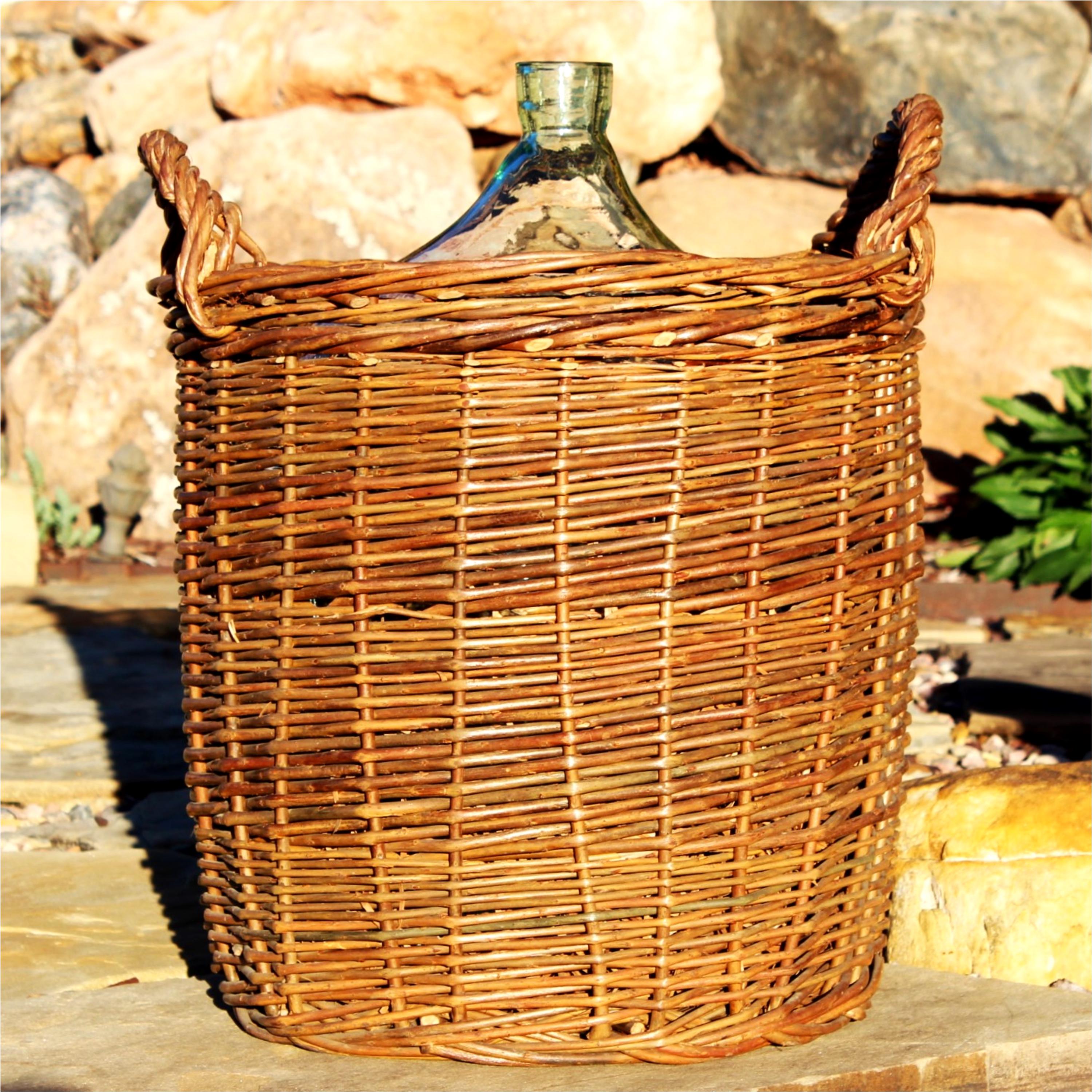 Measures: basket 19” tall to top of handles 17” diameter. Bottle 19” tall 14” diameter.