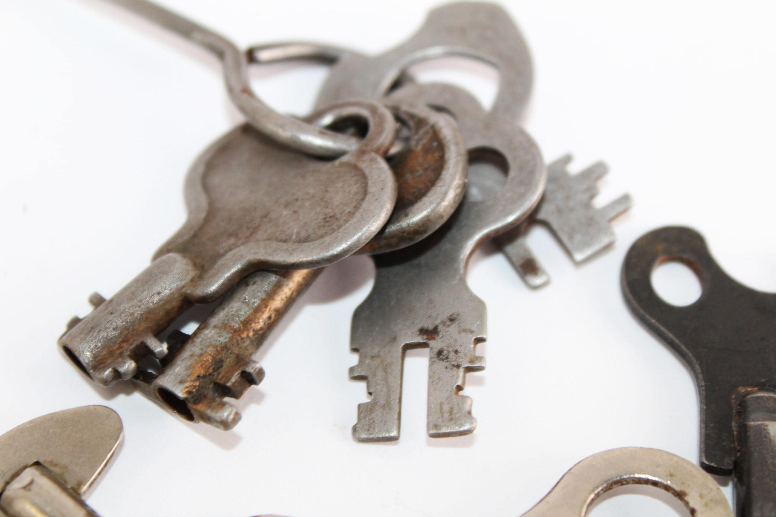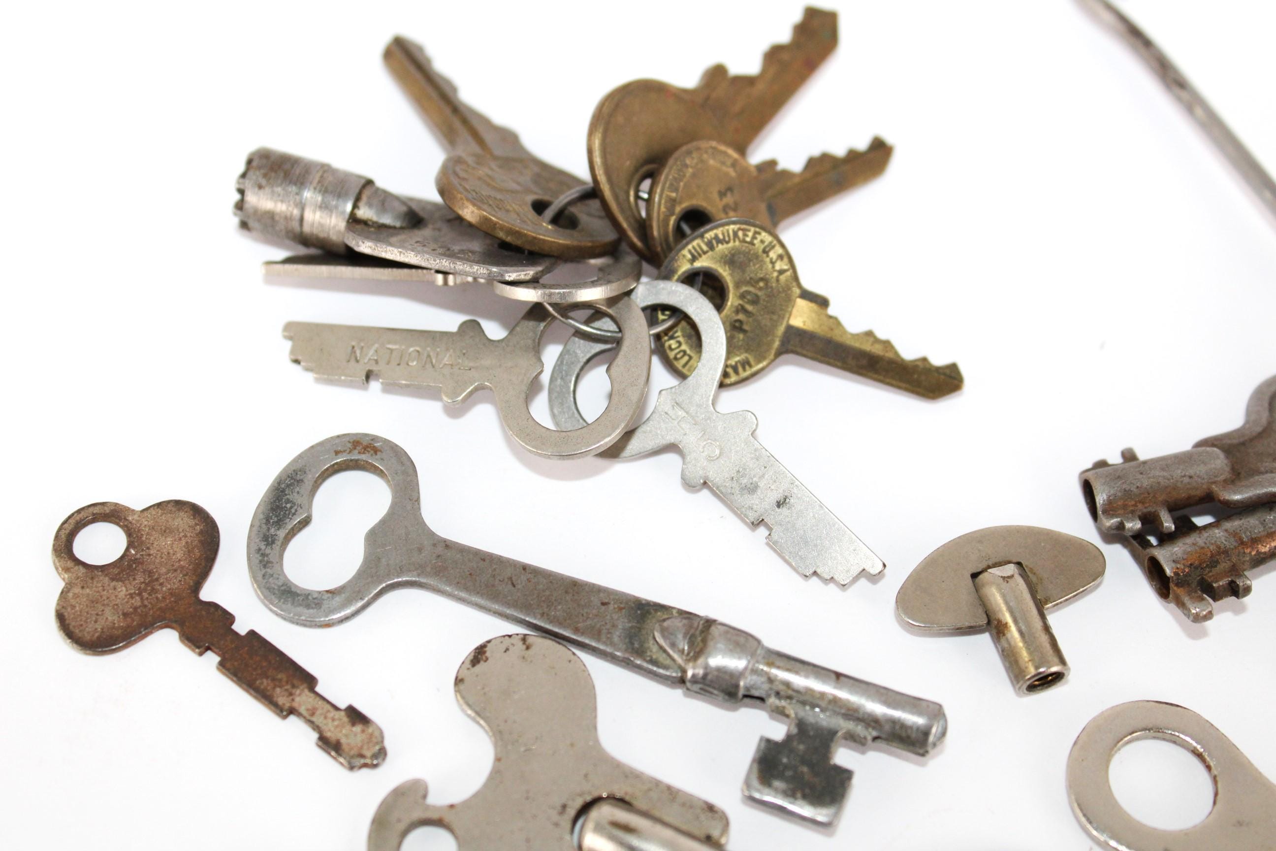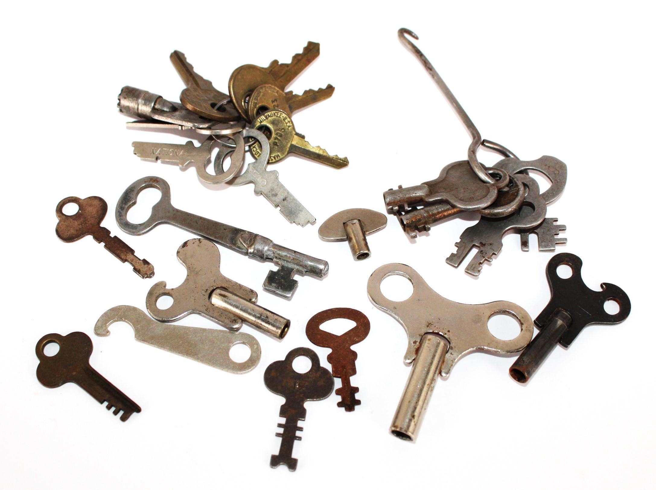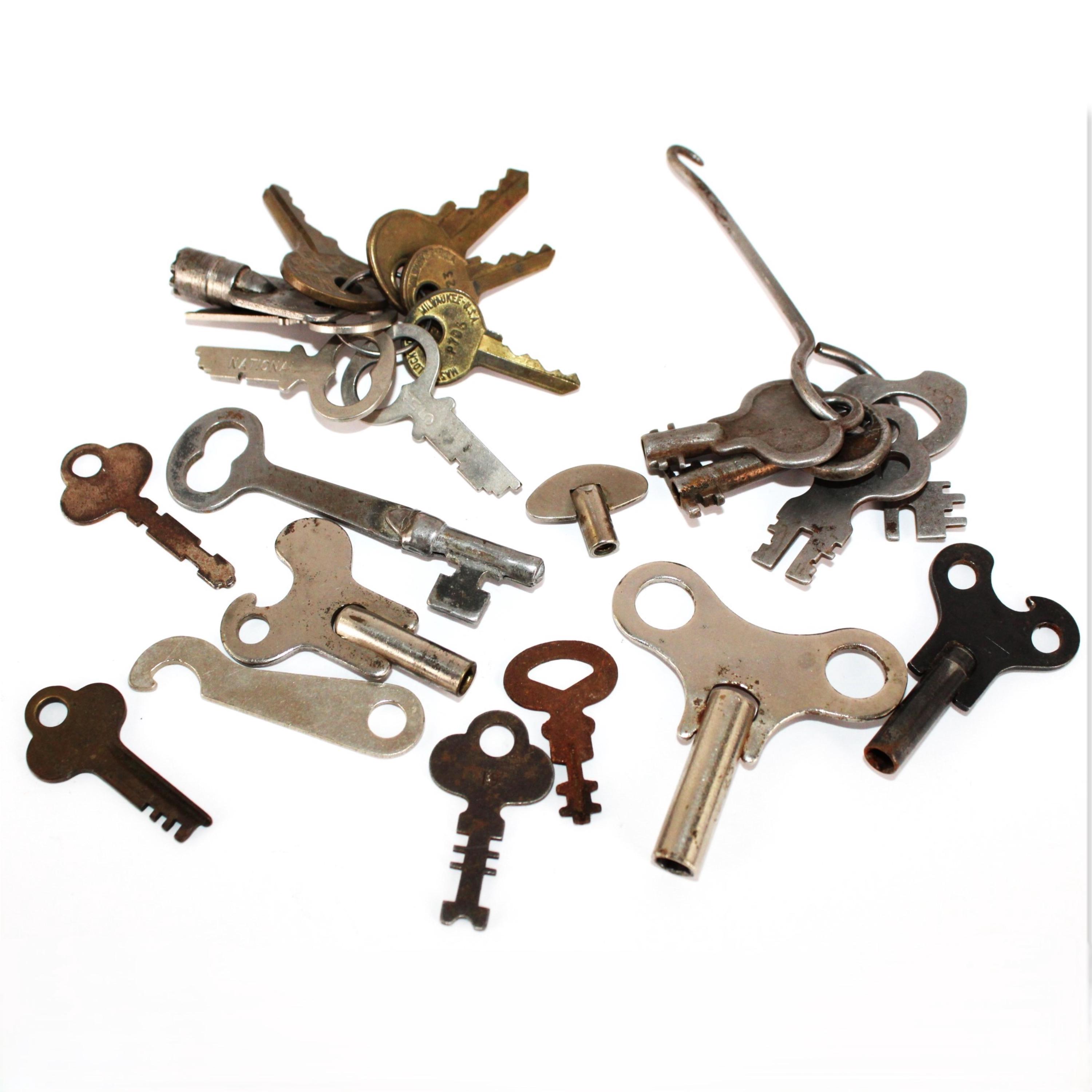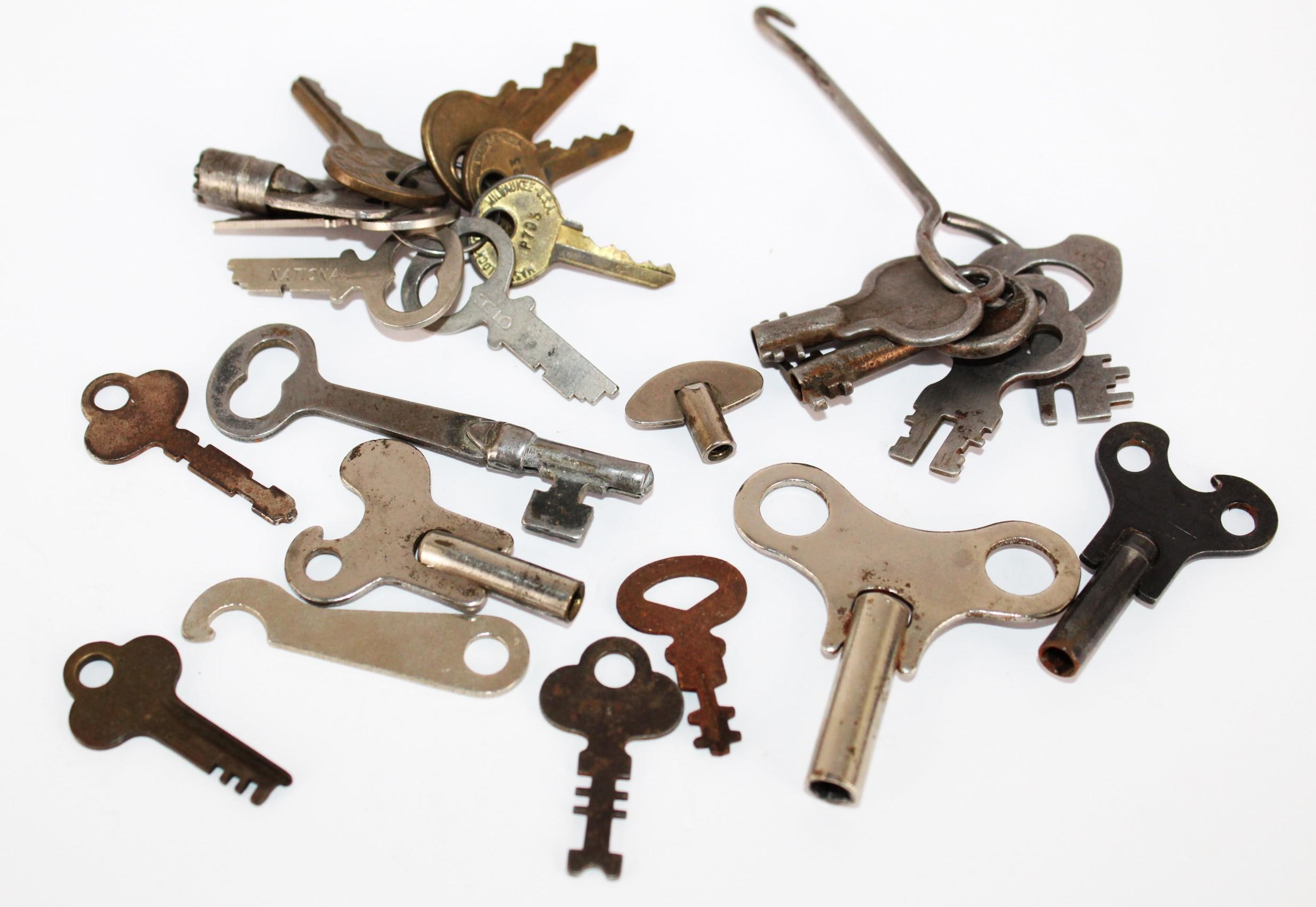 The keys are from doors, cabinets, padlocks, and clocks, some are marked with names please zoom into pictures to see all the names.