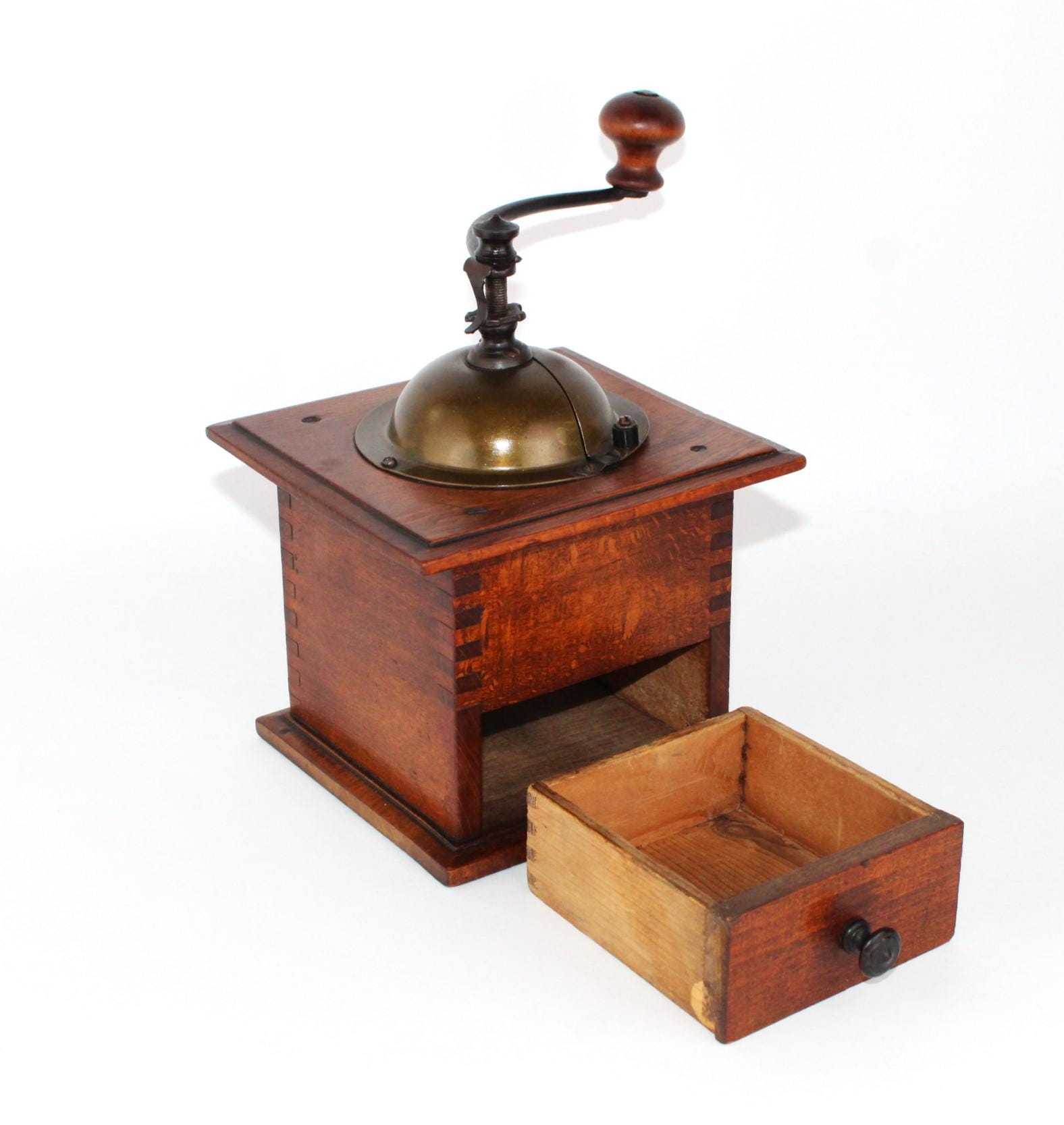 Antique 1850s Wooden Box Style Coffee Grinder, Coffee Bean Grinder