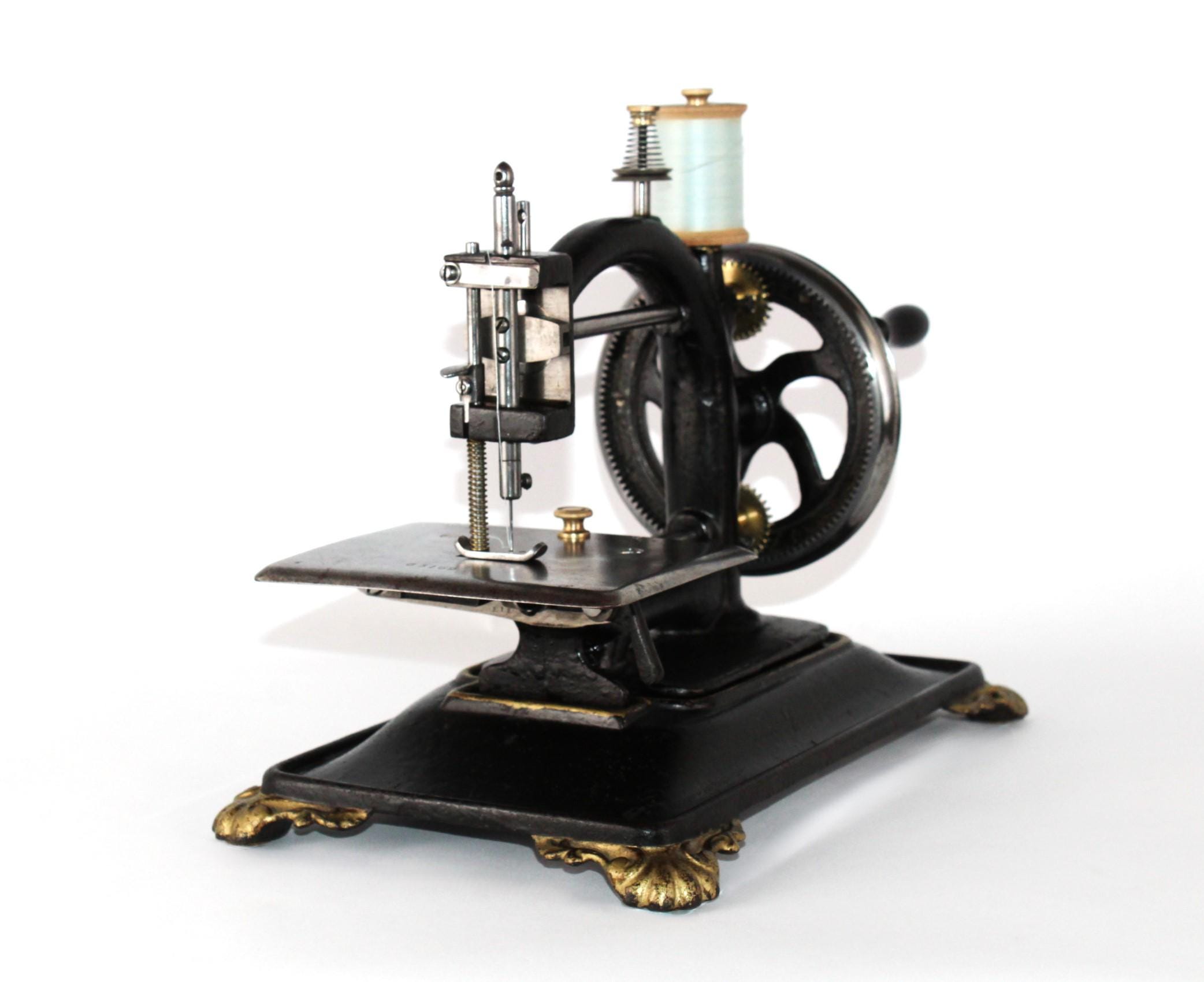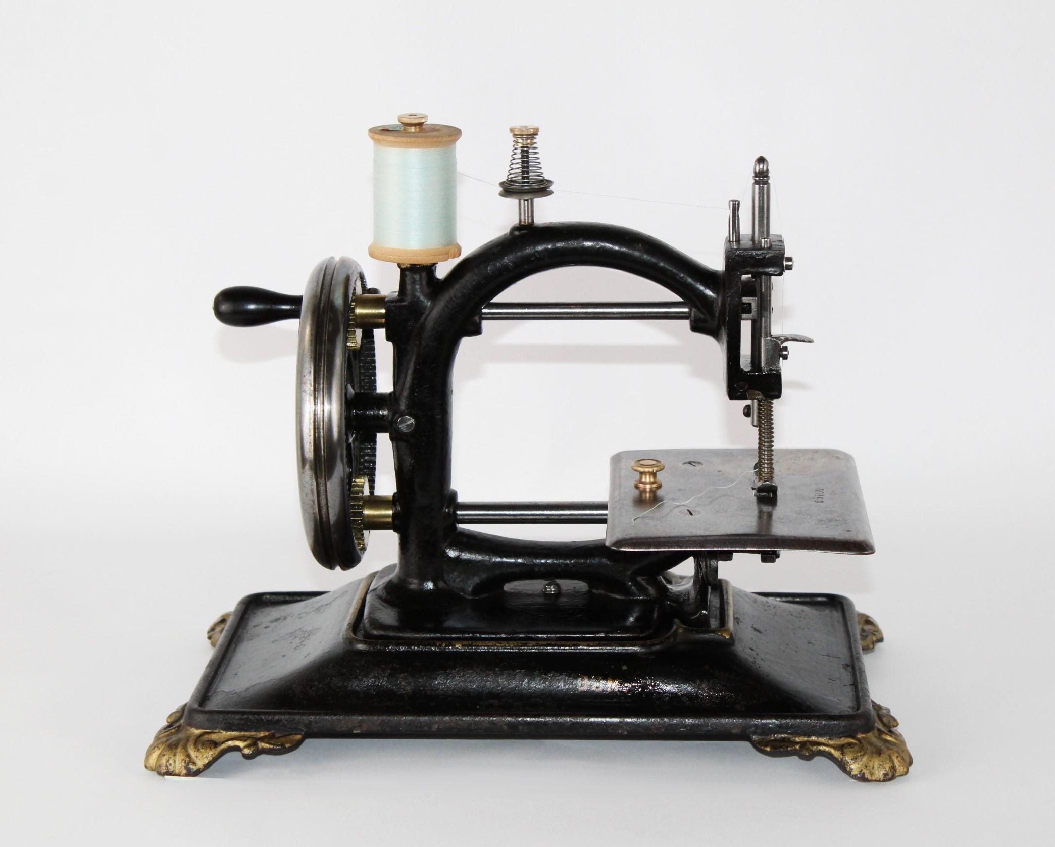 Amazing and rare find, this antique Solomon–Davis Sewing Machine, made in London. This is an 1860s C-shaped machine, these were produced between 1860s-1870s. They were hand crank machines or treadle machines using a single thread which creates a chain stitch pattern.