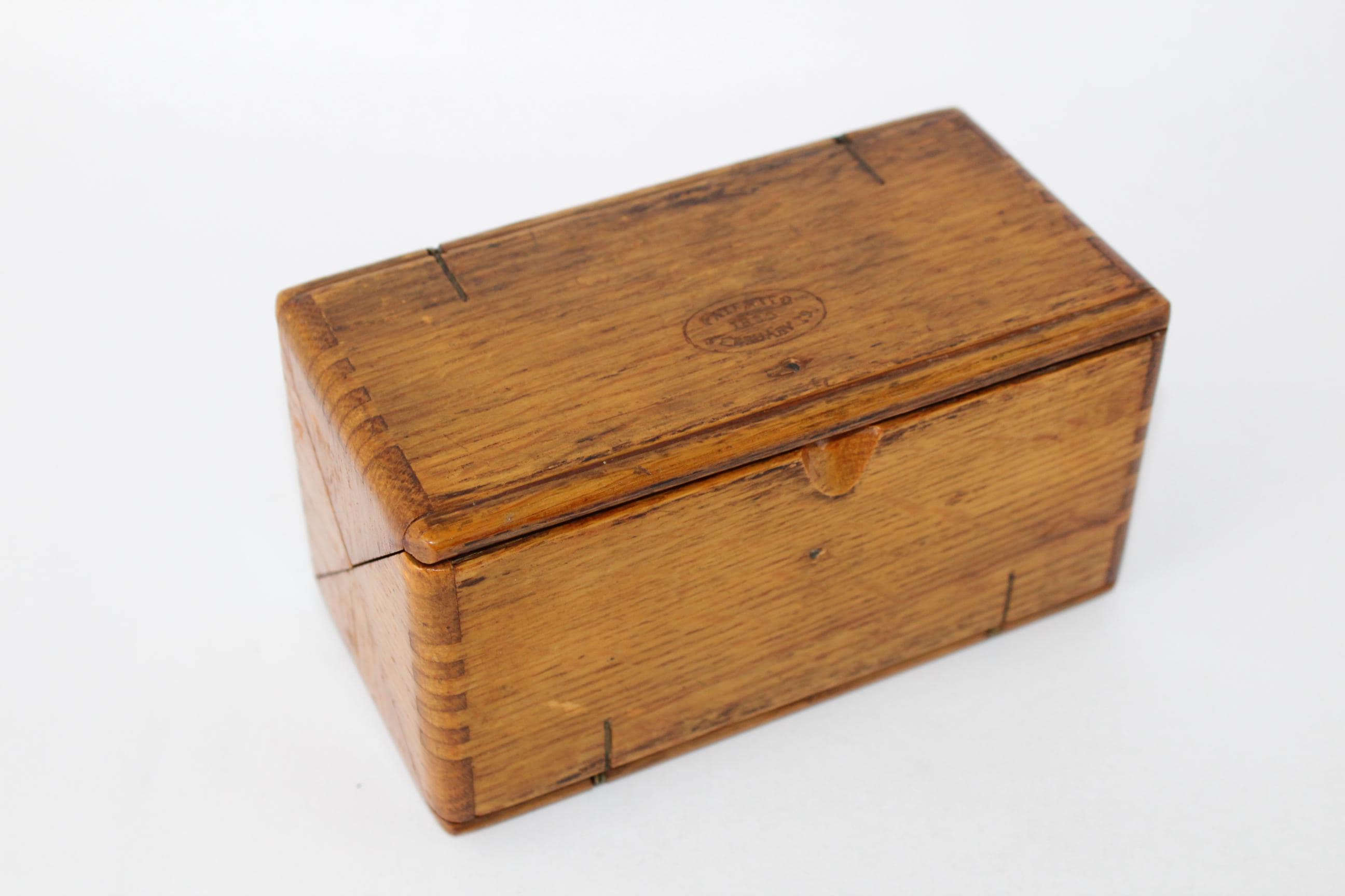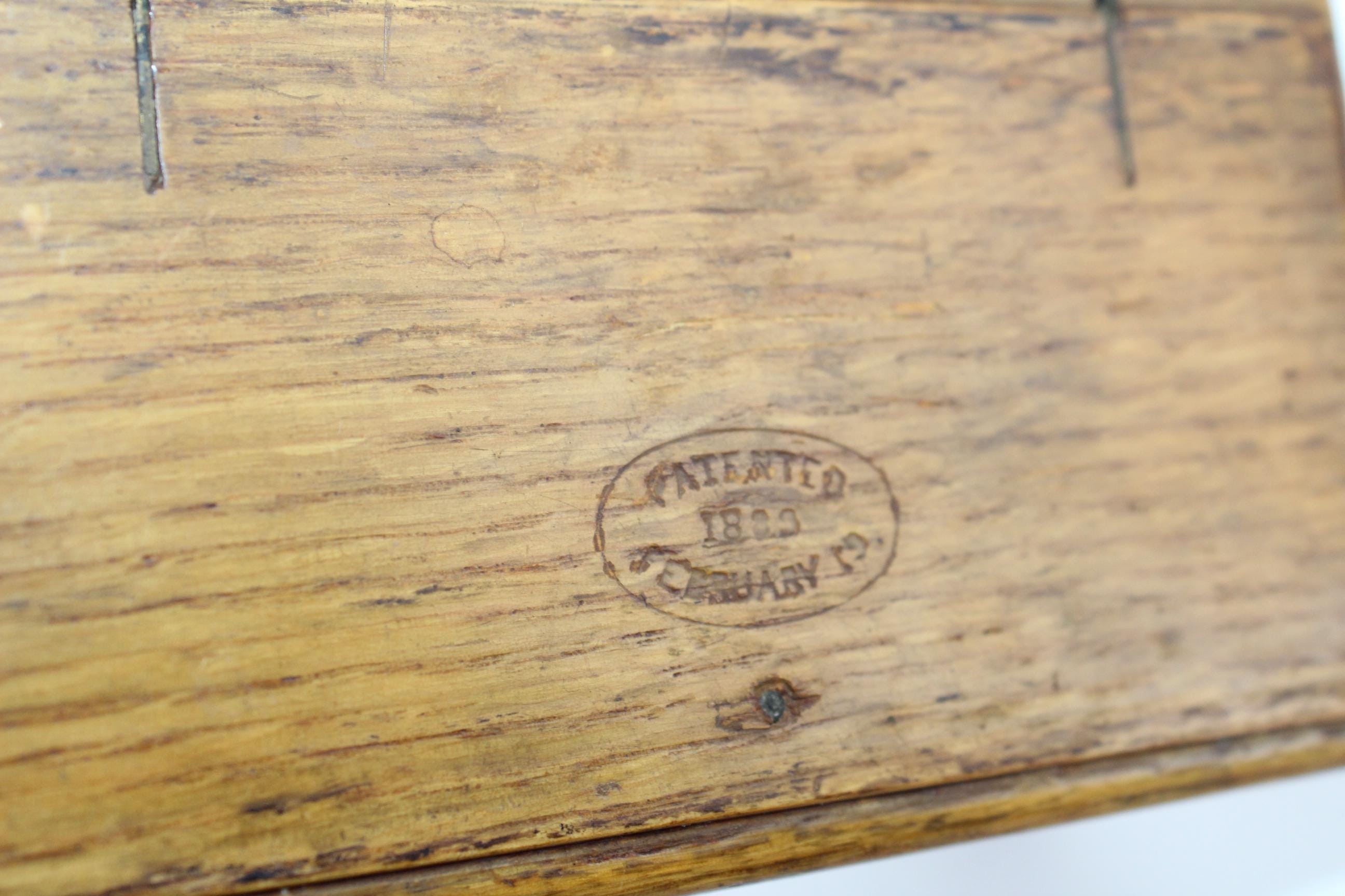 The patent was applied for in 1888 by John M Griest (he spelled his name that way before he began the Greist Manufacturing Company). The patent for a ‘folding box’ was issued in 1889 to the Singer Manufacturing Co.