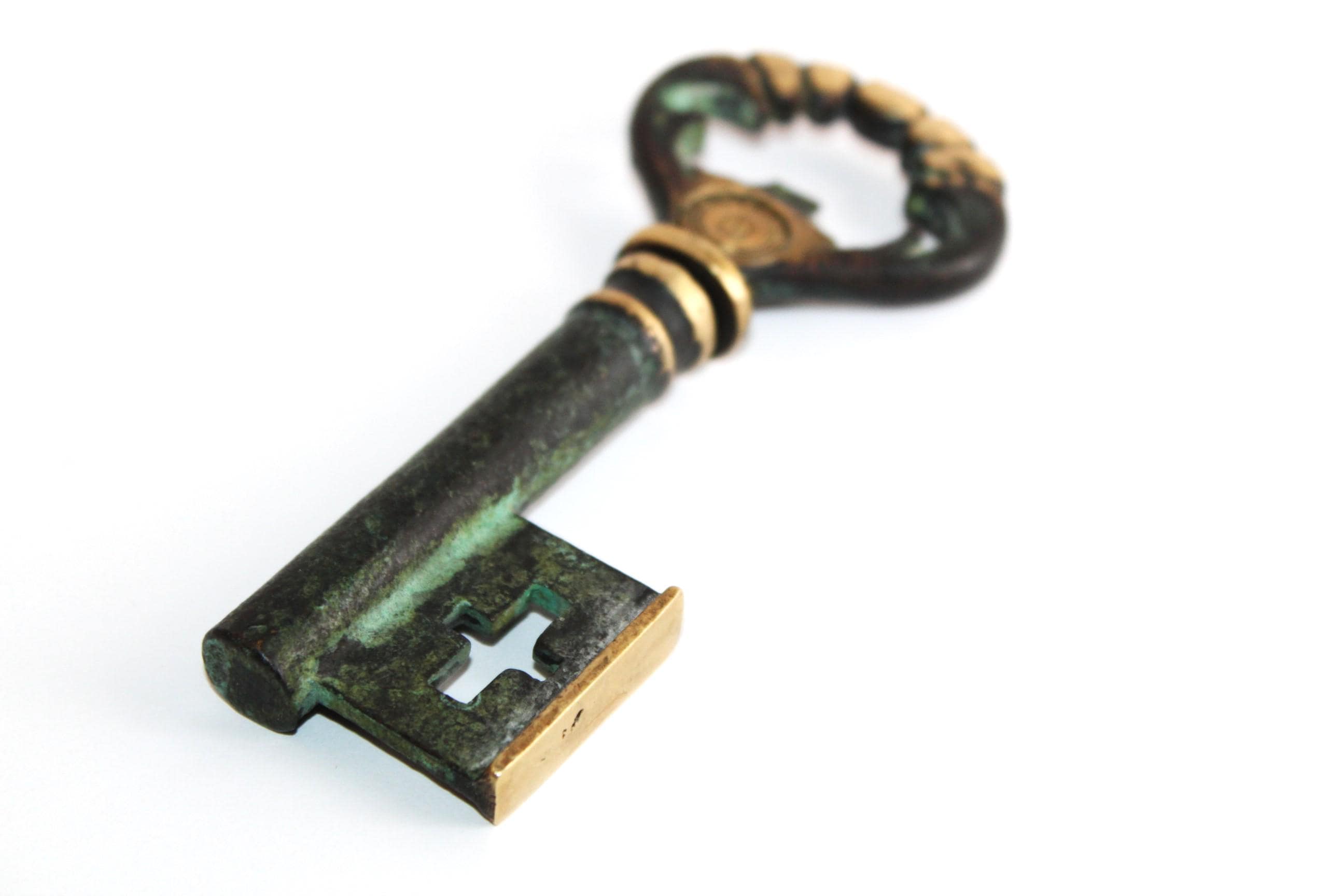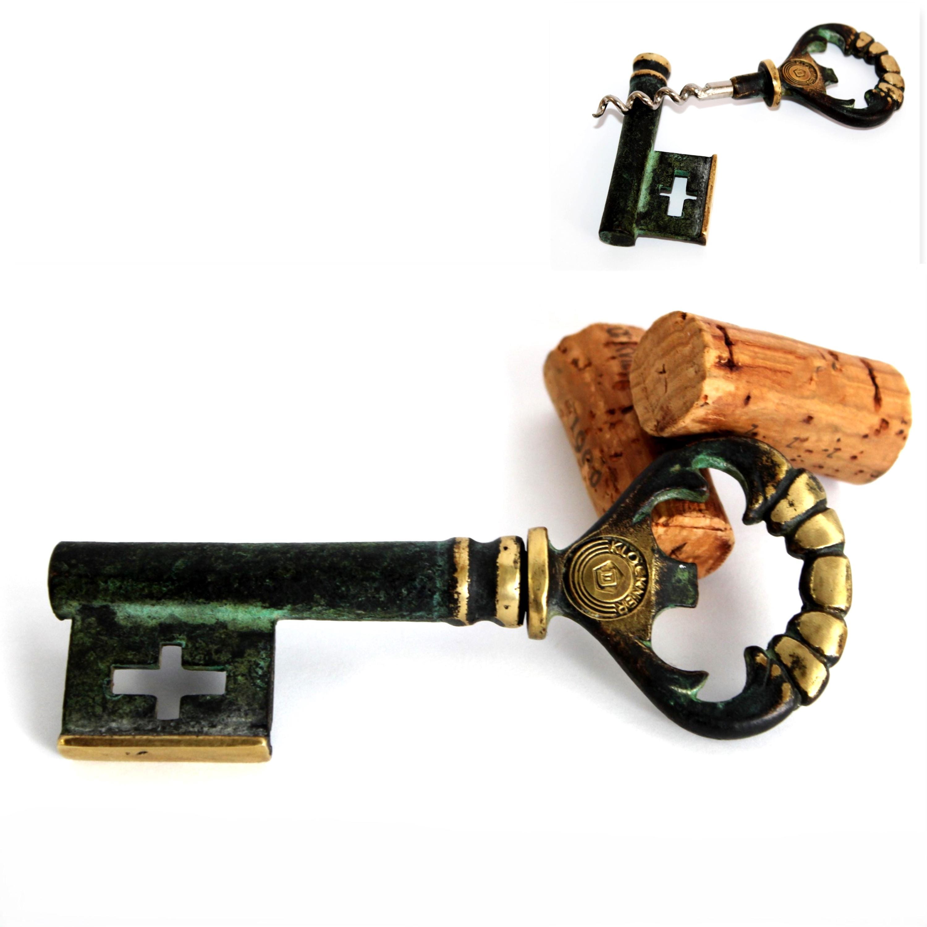 Vintage German Brass Key Corkscrew, Wine Bottle Opener