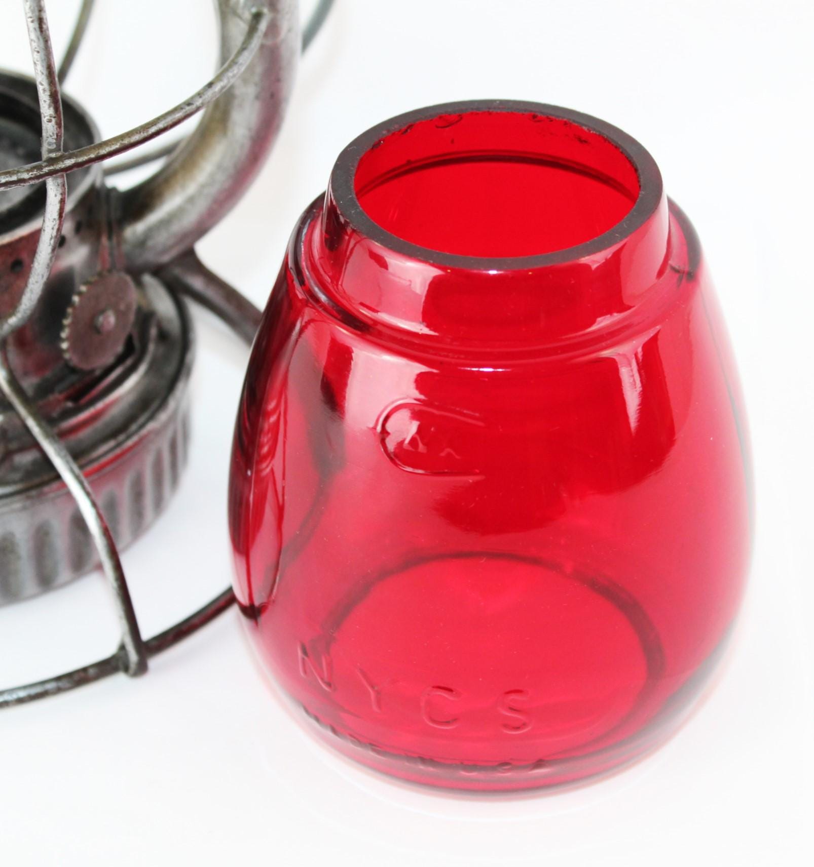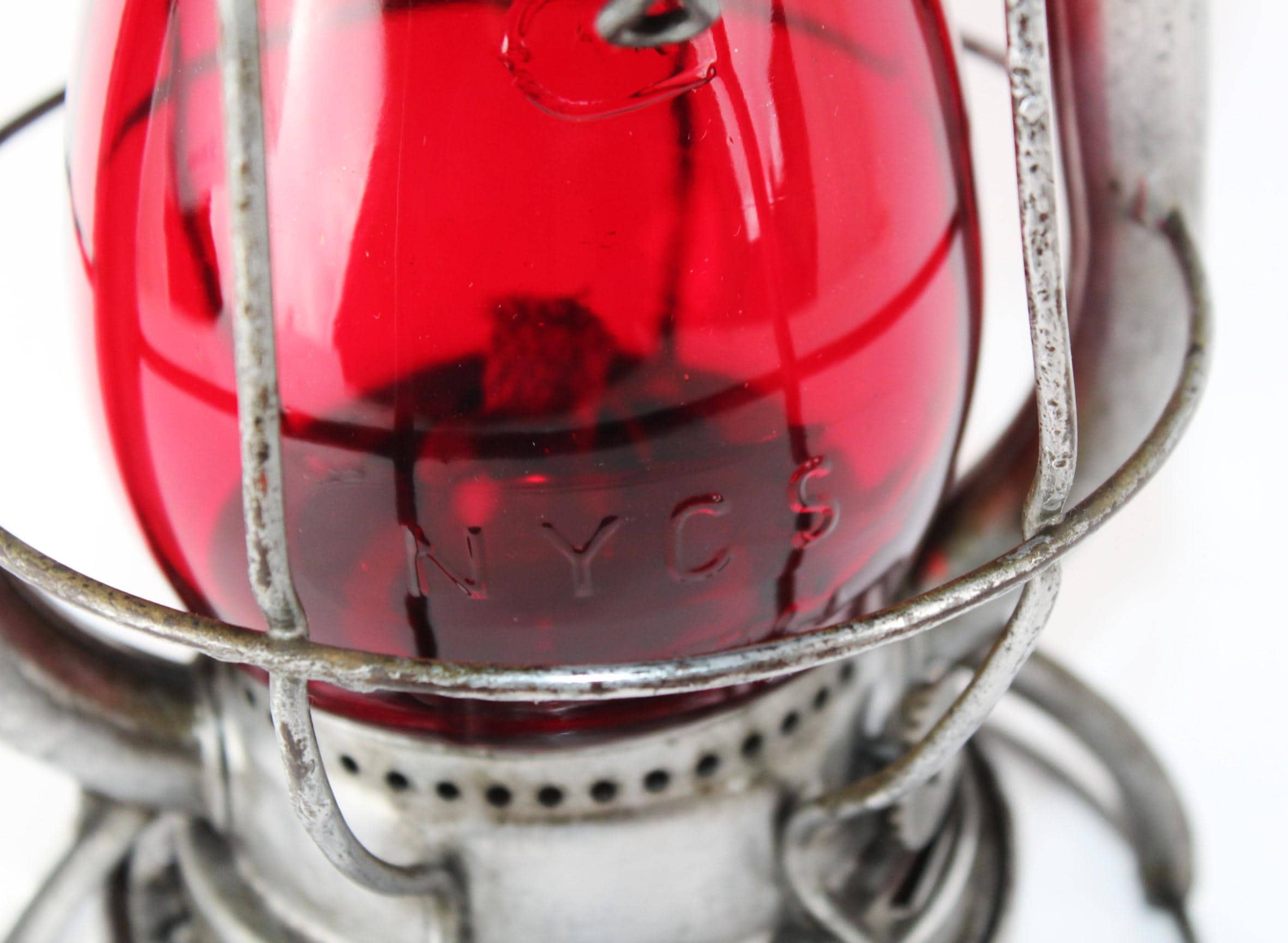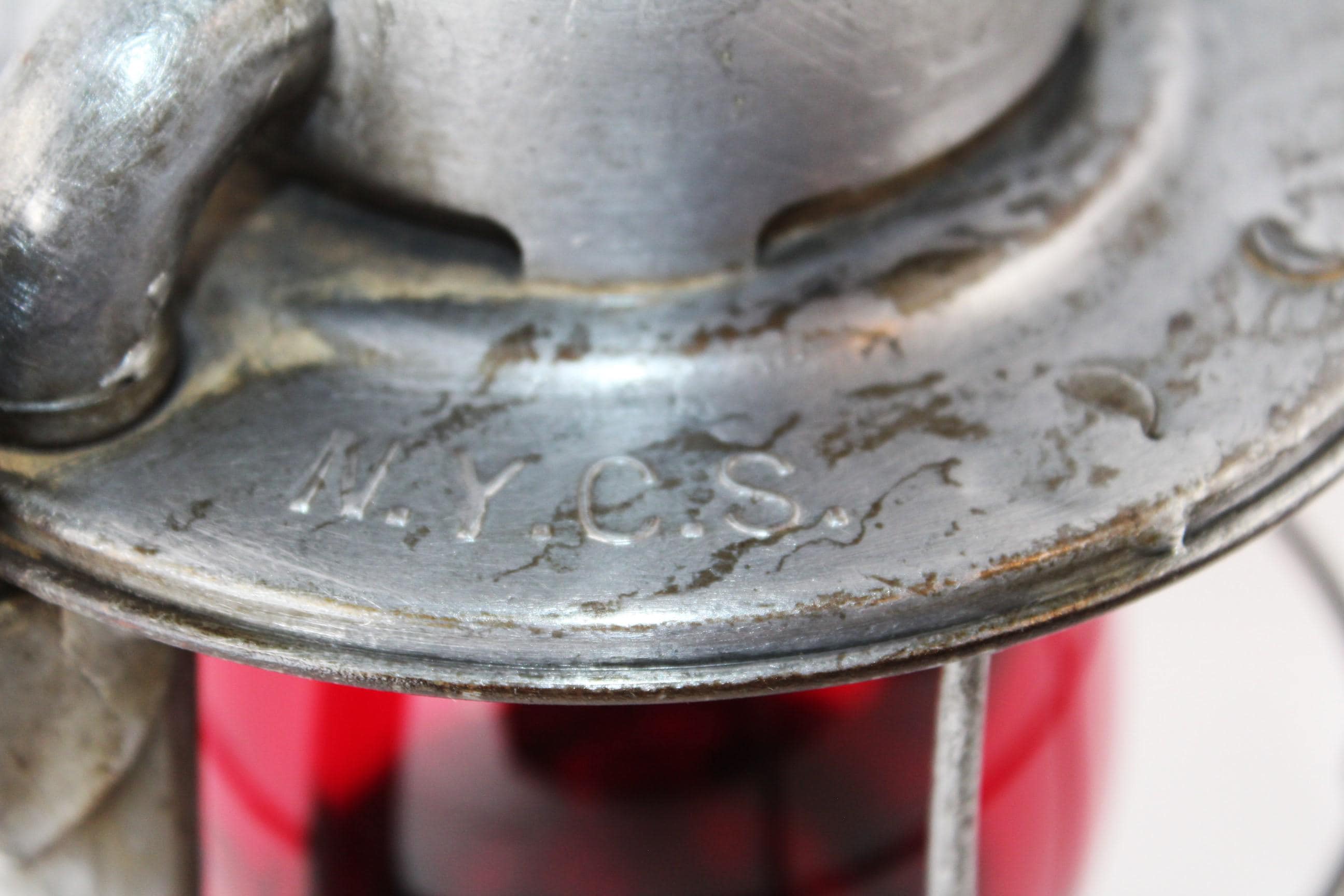 It is marked in raised lettering N.Y.C.S. on the rim of the hood and on the red glass globe.