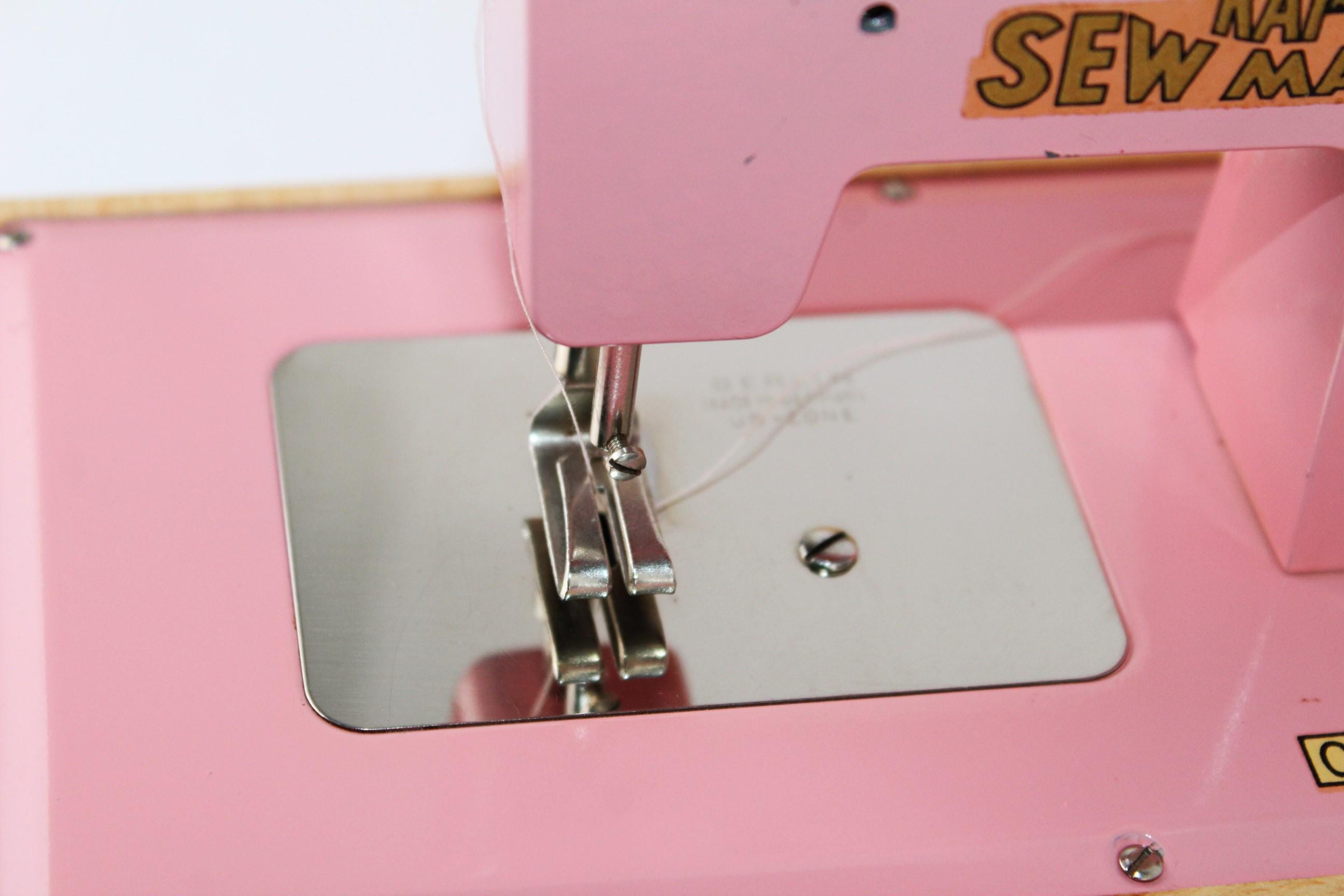 The machine can be hand-operated or battery-operated, a manual machine that uses a single thread creating a chain stitch. This machine was not a toy, as they were designed for children to learn how to sew - perfect size for making doll clothes.